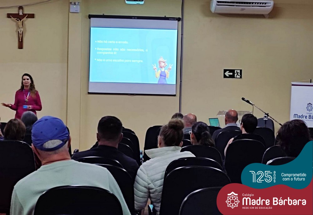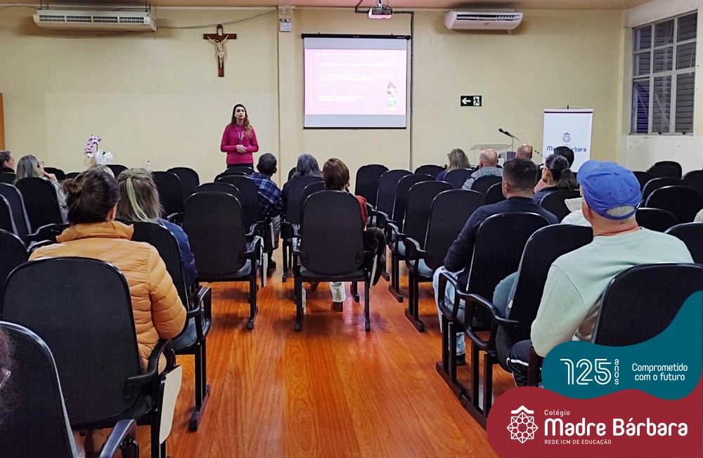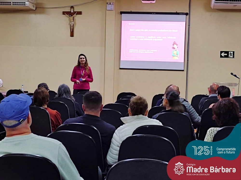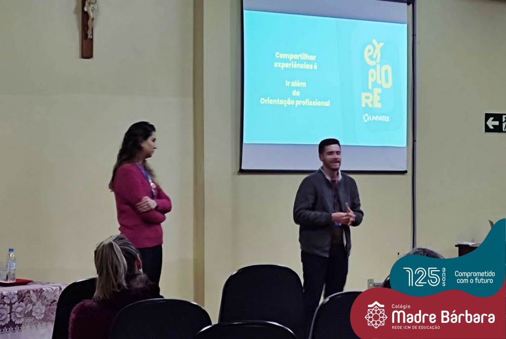 Na noite de segunda-feira, 27.06, a orientadora educacional Anice Maria Nunes e a psicóloga escolar Solange Marostega, em parceria com a Univates realizaram um encontro com pais dos 1º anos do Ensino Médio, dialogando sobre “O papel dos pais na escolha profissional…como encontrar o equilíbrio”. A psicóloga Betina Espindula interagiu com as famílias, refletindo sobre as relações significativas de seus filhos, onde possam ter experiências valorizadas, exercitem estas escolhas e possam sentir-se mais seguros neste processo. Também enfatizou a importância do autoconhecimento e a análise da realidade. Na oportunidade os pais trouxeram relatos de suas experiências, dúvidas e expectativas durante a caminhada do ensino médio e projeções futuras dos filhos.