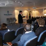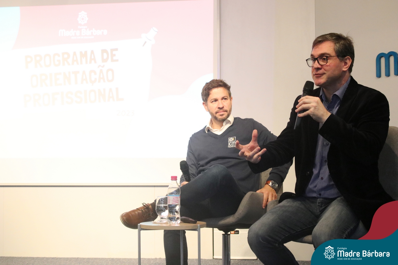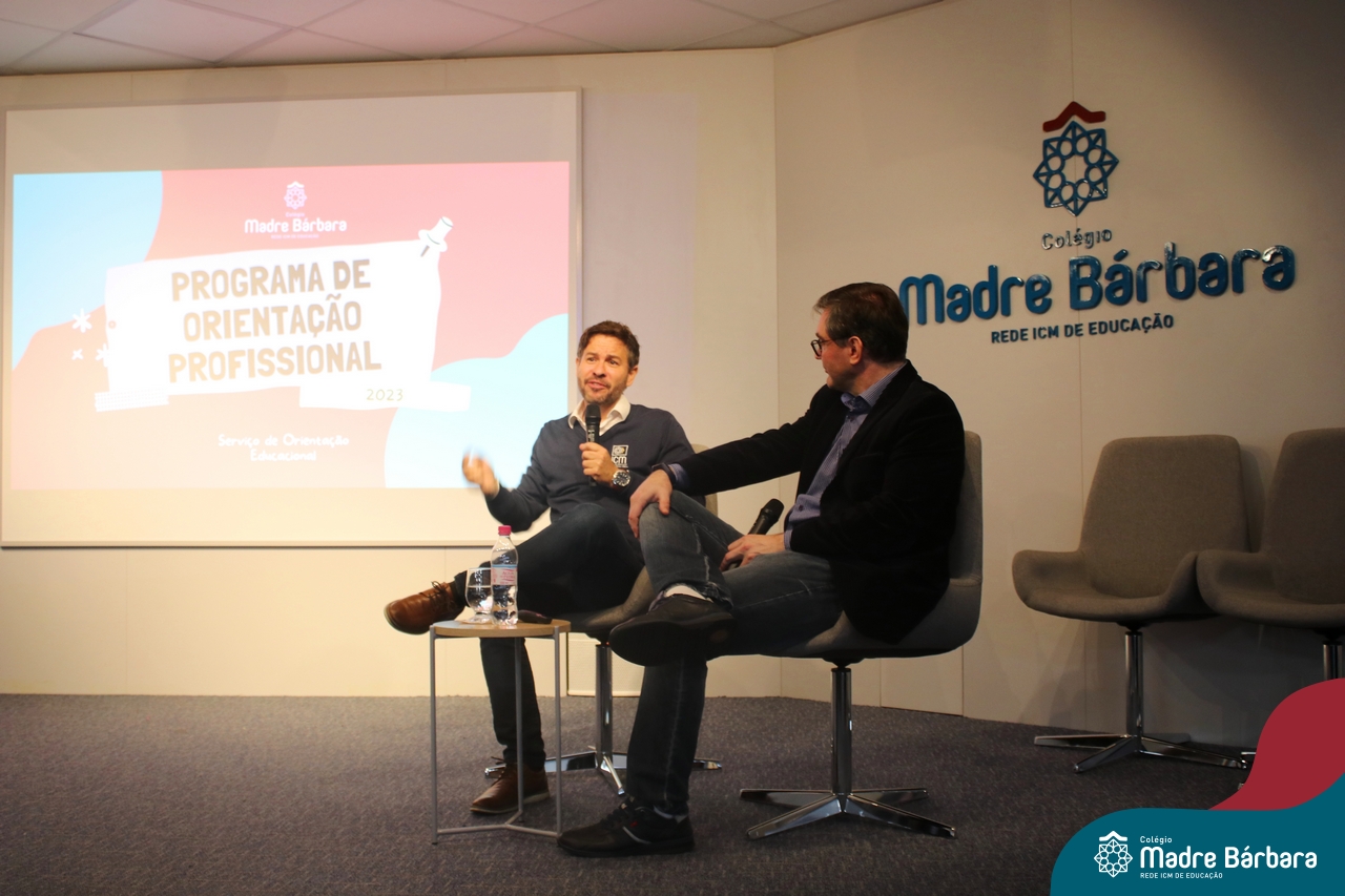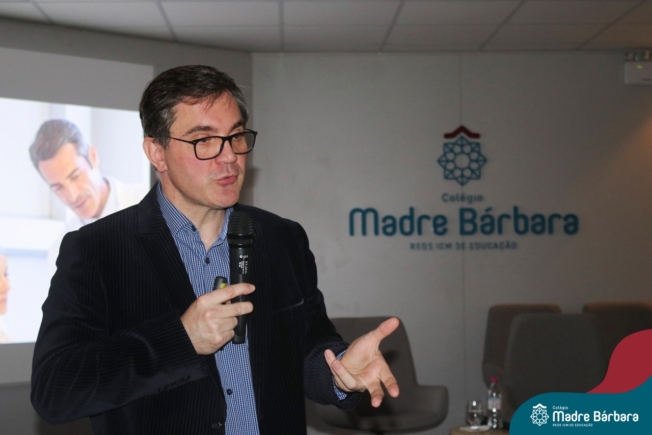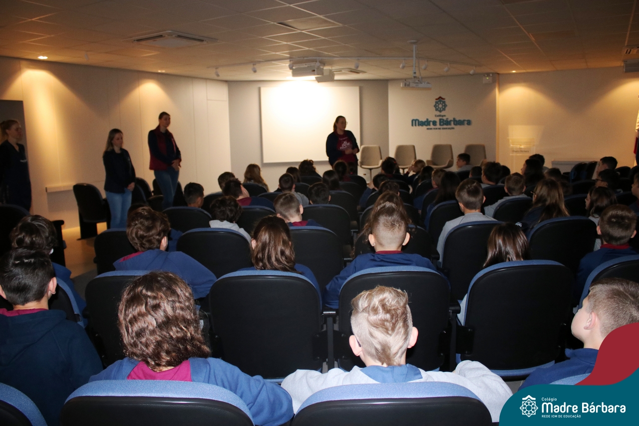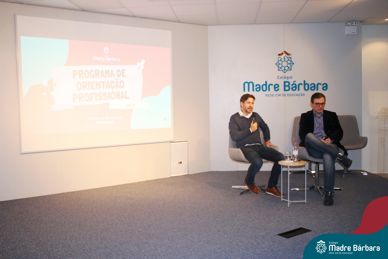 Na manhã desta segunda-feira (22.05), o Serviço de Orientação Educacional (SOE) do Colégio Madre Bárbara – Rede ICM, iniciou o Programa de Orientação Profissional, com todas as turmas do Ensino Médio. O Programa contempla um conjunto de atividades que visam auxiliar os estudantes a tomarem decisões sobre suas escolhas profissionais. No entendimento de que é um processo, a escola oportuniza, com parceria de instituições e especialistas, diversas ações voltadas para subsidiar escolhas seguras. A abertura deste ano, contou com a presença do Dr. Leandro Brust, médico Oncologista Clínico, doutor em Biotecnologia pela UCS, Head de Farmacogenomica da DASA Genomica – LATAM, Pós-graduado em Economia da Saúde – UFG, Consultor e Auditor para a Saúde em Oncologia, Hematologia e Testes Moleculares e Professor do curso de Medicina da Univates. Na oportunidade, Leandro refletiu com os estudantes, trazendo a sua experiência, narrando sobre os desafios e oportunidades nesta caminhada, enfatizando o quanto a determinação, fé, paixão e resiliência fazem a diferença em suas escolhas e busca de sonhos ou metas.