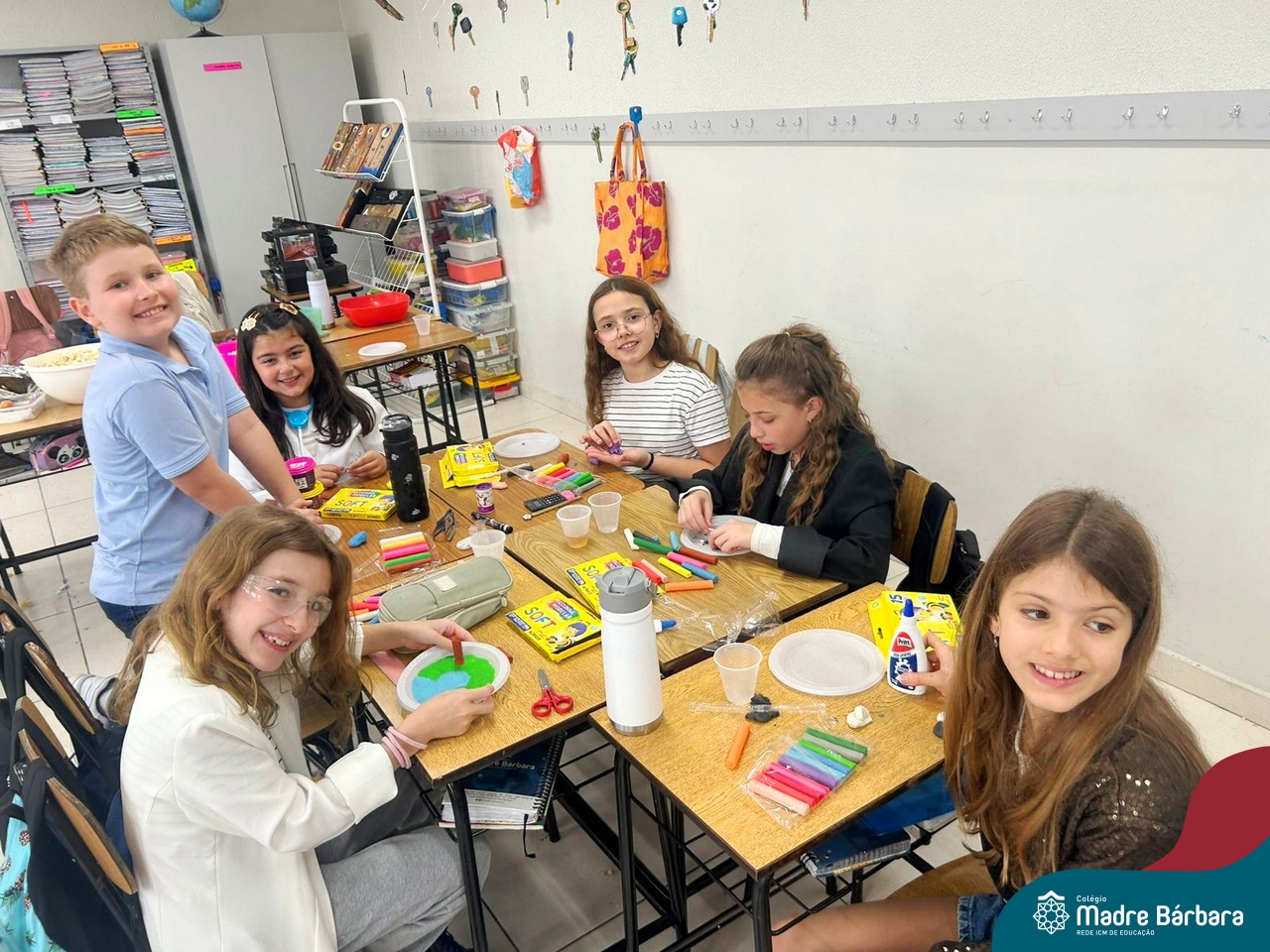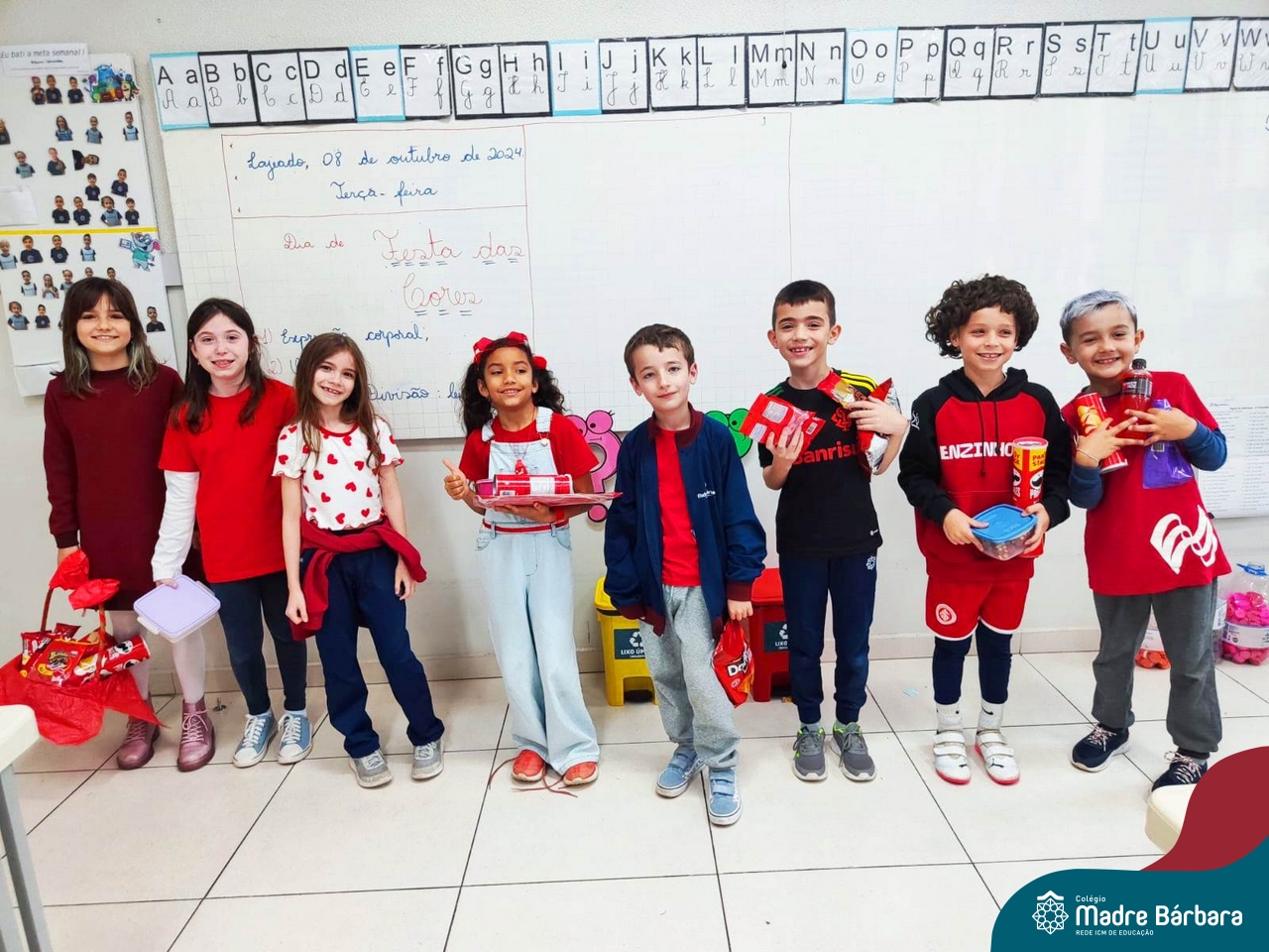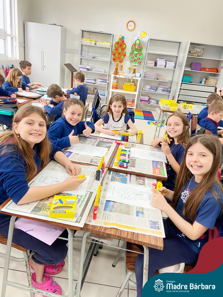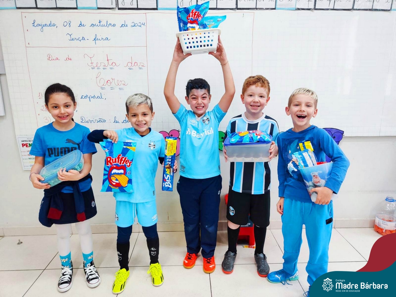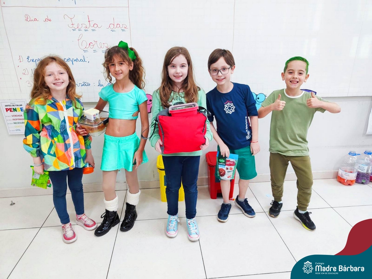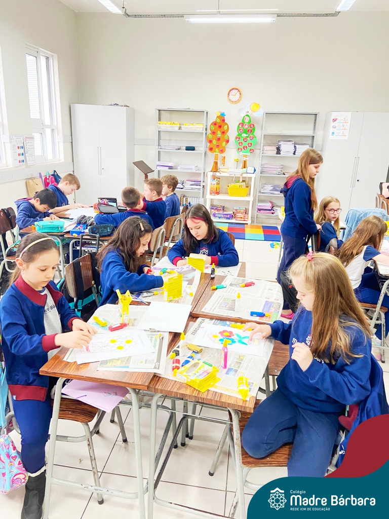 Diversas foram as atividades que marcaram a terça-feira (08.10) nas turmas dos Anos Iniciais. Cada ano realizou uma atividade para curtir com a criançada. Os 1ºs anos fizeram o Dia do Penteado ou Chapéu Maluco com brincadeiras e jogos interativos. Os 2ºs anos realizaram a Festa das Cores, onde iam vestidos de roupas coloridas e levavam alimentos e lanches nas cores escolhidas. Os 3ºs anos fizeram o “Arte em Movimento” com rodízio de atividades artísticas: releitura de obra de arte com tinta guache, pintura com cola colorida, desenhos simétricos em folha quadriculada, dobradura e confecção de chaveiros com EVA. Nos 4ºs anos foi Dia da Profissão dos Sonhos, lanche coletivo e esculturas com massinha de modelar. E os 5ºs anos tiveram uma aula descontraída com pipoca e guloseimas. Foi um dia super especial! Valeu Anos Iniciais!