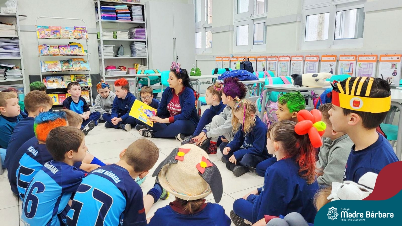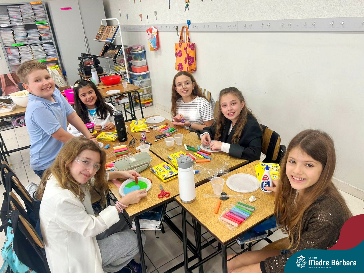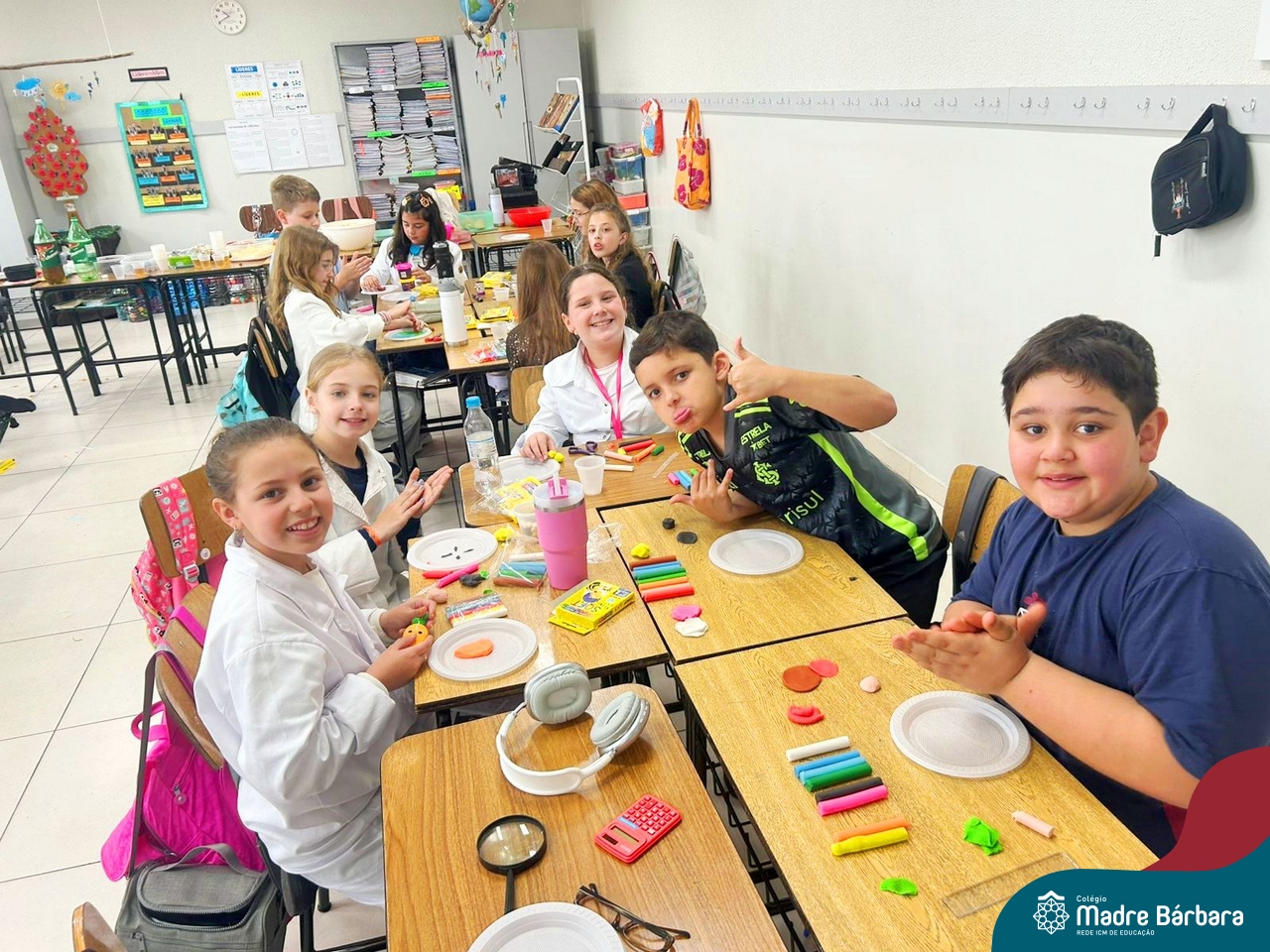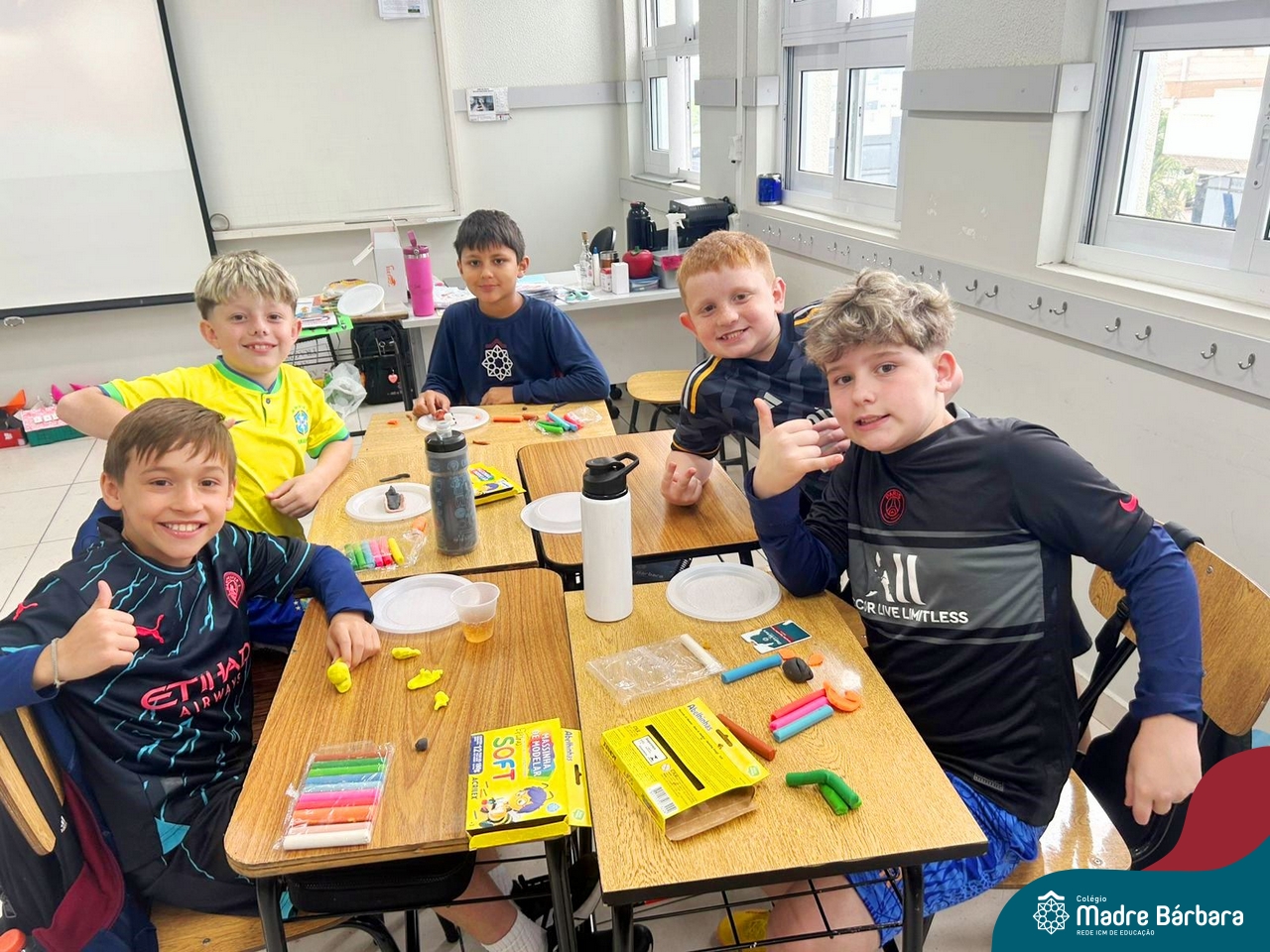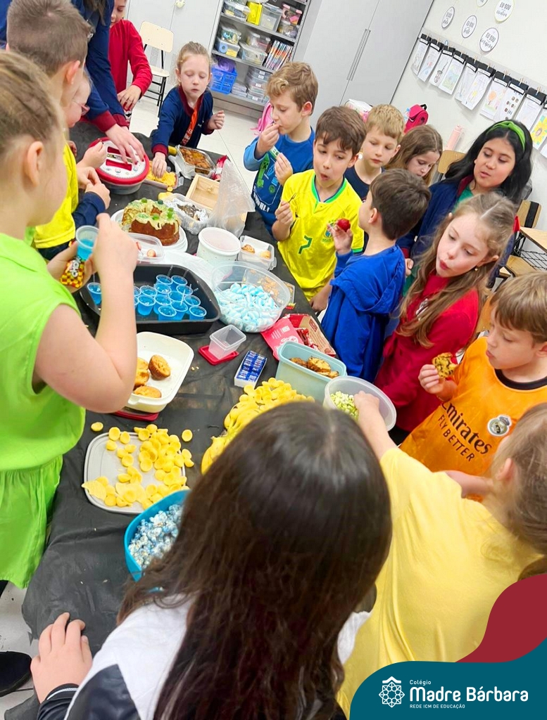 Diversas foram as atividades que marcaram a terça-feira (08.10) nas turmas dos Anos Iniciais. Cada ano realizou uma atividade para curtir com a criançada. Os 1ºs anos fizeram o Dia do Penteado ou Chapéu Maluco com brincadeiras e jogos interativos. Os 2ºs anos realizaram a Festa das Cores, onde iam vestidos de roupas coloridas e levavam alimentos e lanches nas cores escolhidas. Os 3ºs anos fizeram o “Arte em Movimento” com rodízio de atividades artísticas: releitura de obra de arte com tinta guache, pintura com cola colorida, desenhos simétricos em folha quadriculada, dobradura e confecção de chaveiros com EVA. Nos 4ºs anos foi Dia da Profissão dos Sonhos, lanche coletivo e esculturas com massinha de modelar. E os 5ºs anos tiveram uma aula descontraída com pipoca e guloseimas. Foi um dia super especial! Valeu Anos Iniciais!