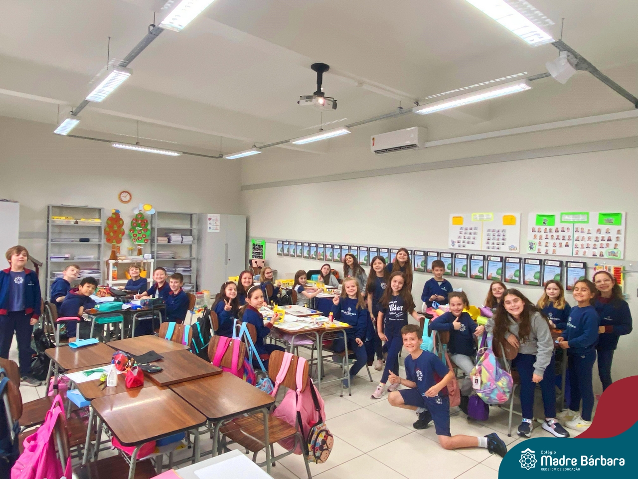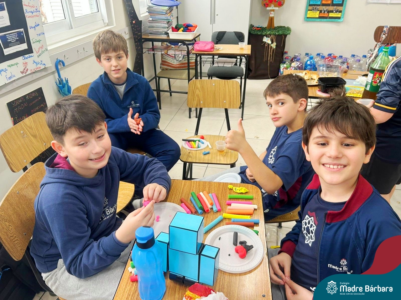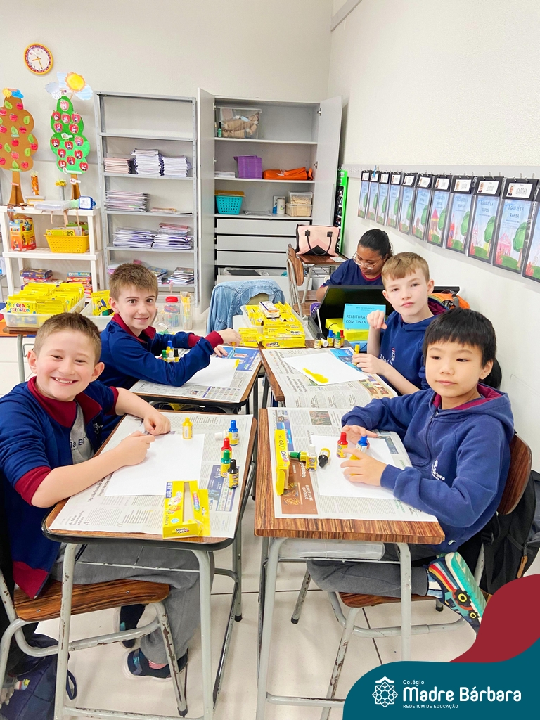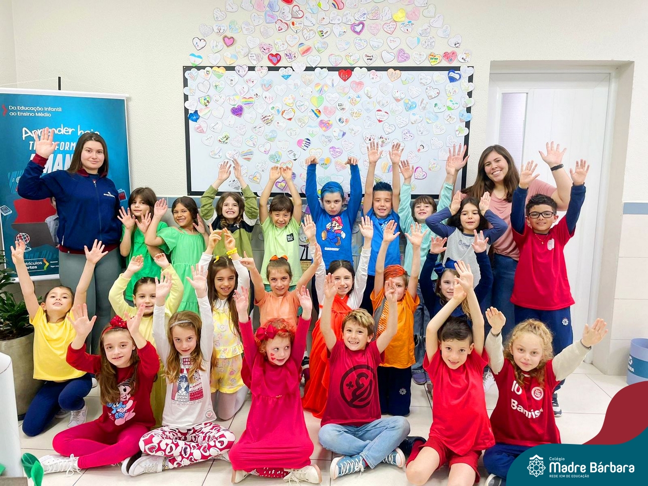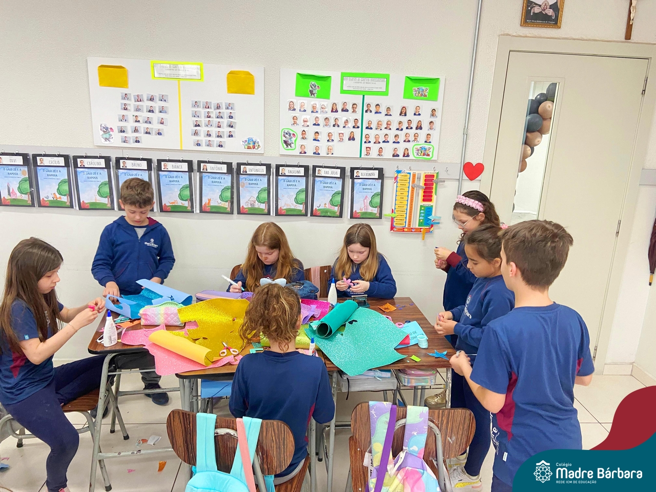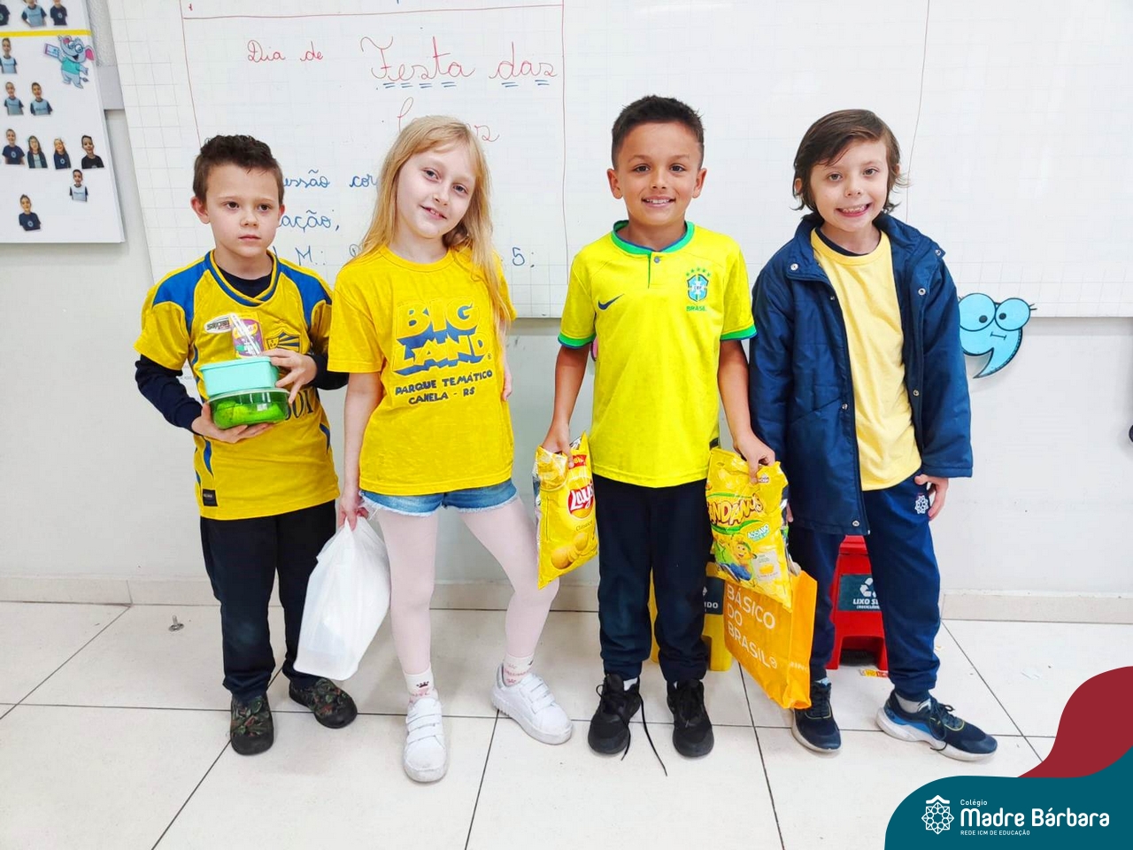 Diversas foram as atividades que marcaram a terça-feira (08.10) nas turmas dos Anos Iniciais. Cada ano realizou uma atividade para curtir com a criançada. Os 1ºs anos fizeram o Dia do Penteado ou Chapéu Maluco com brincadeiras e jogos interativos. Os 2ºs anos realizaram a Festa das Cores, onde iam vestidos de roupas coloridas e levavam alimentos e lanches nas cores escolhidas. Os 3ºs anos fizeram o “Arte em Movimento” com rodízio de atividades artísticas: releitura de obra de arte com tinta guache, pintura com cola colorida, desenhos simétricos em folha quadriculada, dobradura e confecção de chaveiros com EVA. Nos 4ºs anos foi Dia da Profissão dos Sonhos, lanche coletivo e esculturas com massinha de modelar. E os 5ºs anos tiveram uma aula descontraída com pipoca e guloseimas. Foi um dia super especial! Valeu Anos Iniciais!
