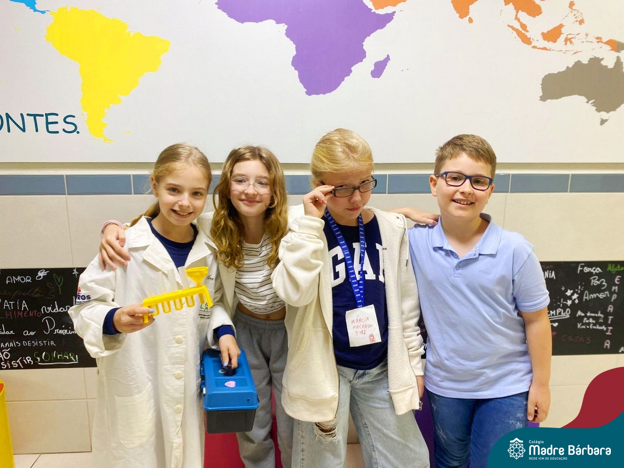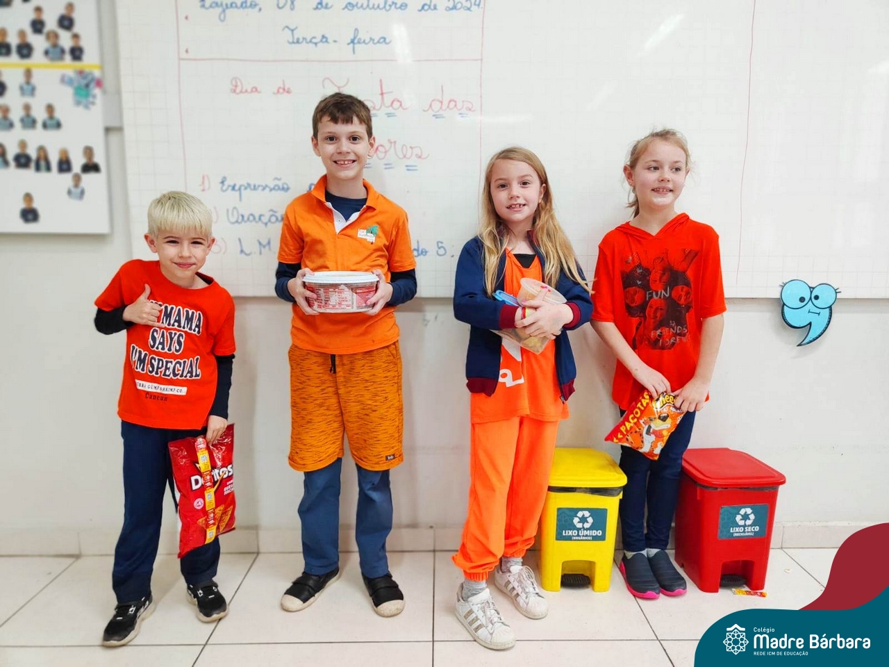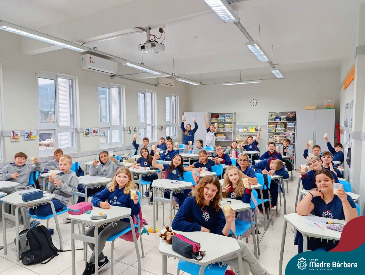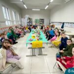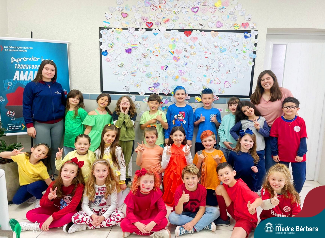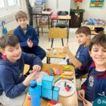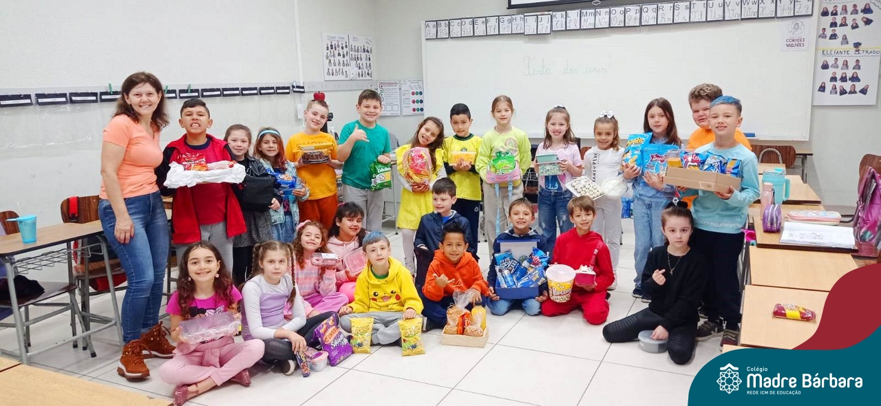 Diversas foram as atividades que marcaram a terça-feira (08.10) nas turmas dos Anos Iniciais. Cada ano realizou uma atividade para curtir com a criançada. Os 1ºs anos fizeram o Dia do Penteado ou Chapéu Maluco com brincadeiras e jogos interativos. Os 2ºs anos realizaram a Festa das Cores, onde iam vestidos de roupas coloridas e levavam alimentos e lanches nas cores escolhidas. Os 3ºs anos fizeram o “Arte em Movimento” com rodízio de atividades artísticas: releitura de obra de arte com tinta guache, pintura com cola colorida, desenhos simétricos em folha quadriculada, dobradura e confecção de chaveiros com EVA. Nos 4ºs anos foi Dia da Profissão dos Sonhos, lanche coletivo e esculturas com massinha de modelar. E os 5ºs anos tiveram uma aula descontraída com pipoca e guloseimas. Foi um dia super especial! Valeu Anos Iniciais!