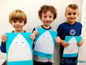 Na quinta-feira (25.04) o Nível 4C , juntamente com a professora Fabiele e a monitora Bruna, vivenciaram uma situação de aprendizagem do projeto “Conhecendo os Tubarões” envolvendo punção, colagem e desenho. O principal objetivo deste projeto é investigar e descobrir as características e curiosidades sobre os tubarões, além de incentivar a preservação dos animais aquáticos. Diversas aprendizagens e experiências estão sendo possibilitadas sobre os temidos tubarões!