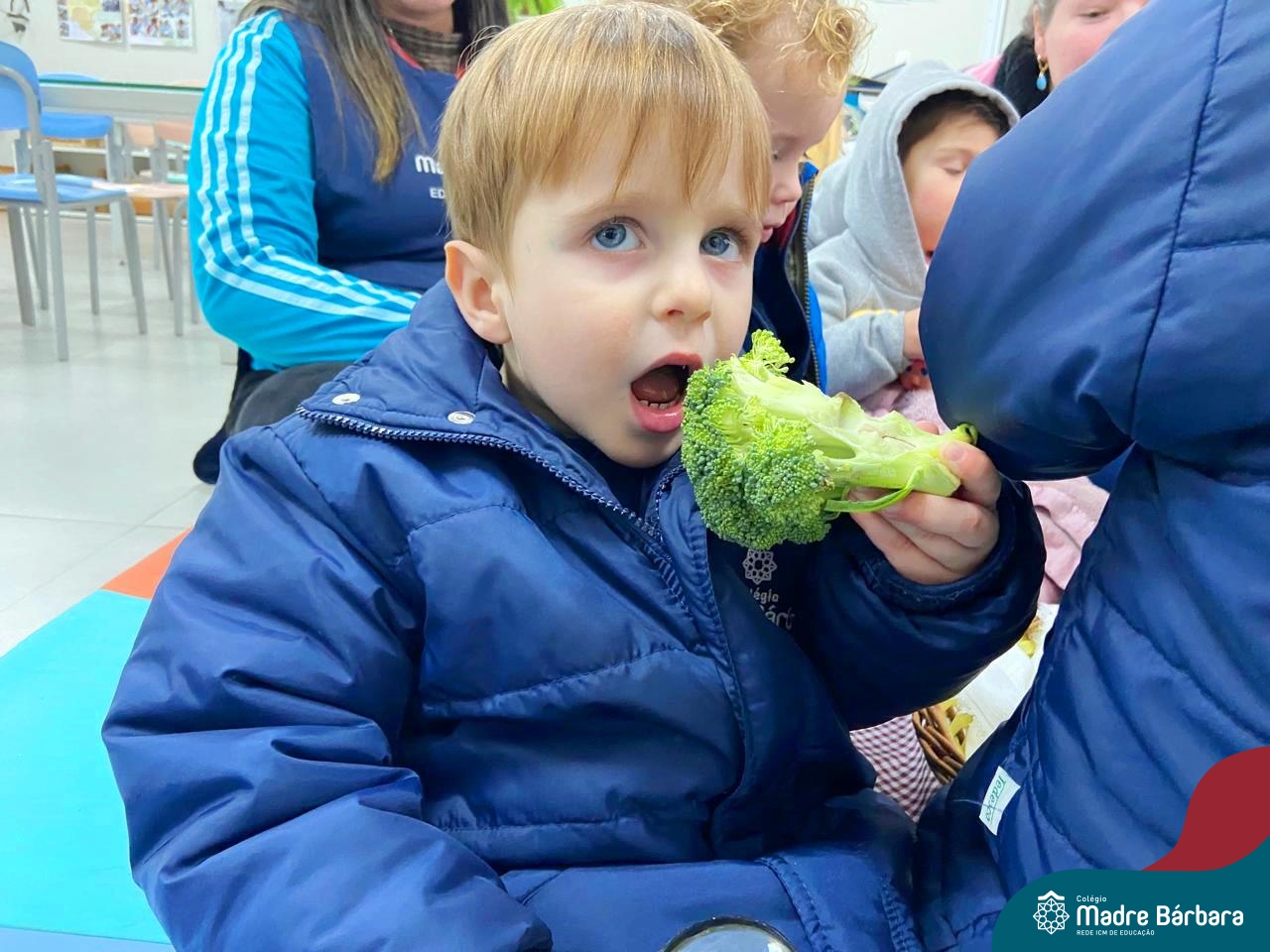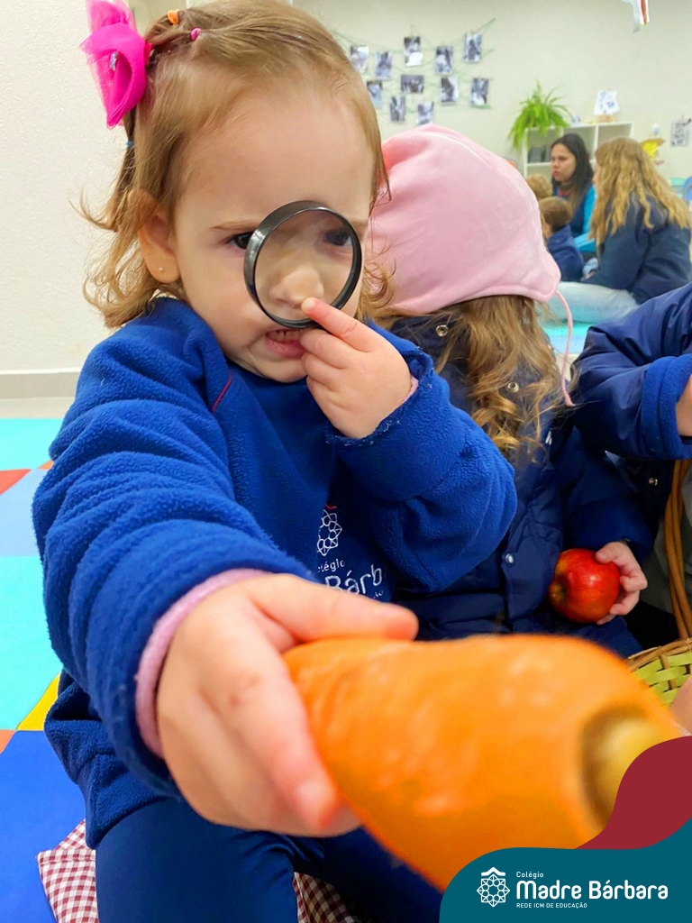 O nível 2C está desenvolvendo o projeto “Comer faz bem”, projeto que surgiu do interesse das crianças e da observação das professoras sobre uma alimentação saudável. Experimentar, sentir, tocar e observar as frutas e legumes é de extrema importância nesta faixa etária. Na última quinta-feira, 11.07, a turma foi até o Ateliê vivenciar uma situação de observação de alguns alimentos. As crianças demonstraram muito interesse e curiosidade e através das lupas puderam sentir e manusear estes alimentos. Confiram alguns registros deste momento incrível!