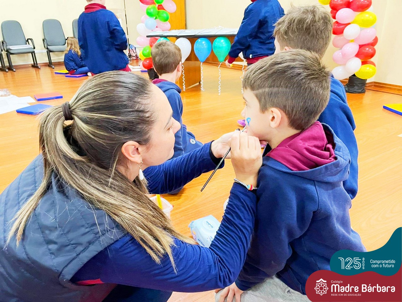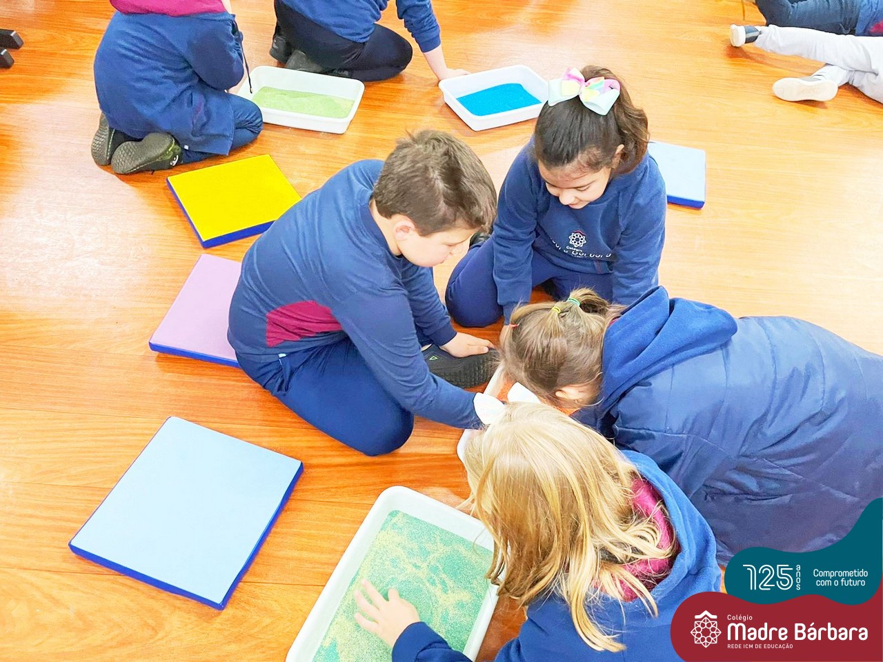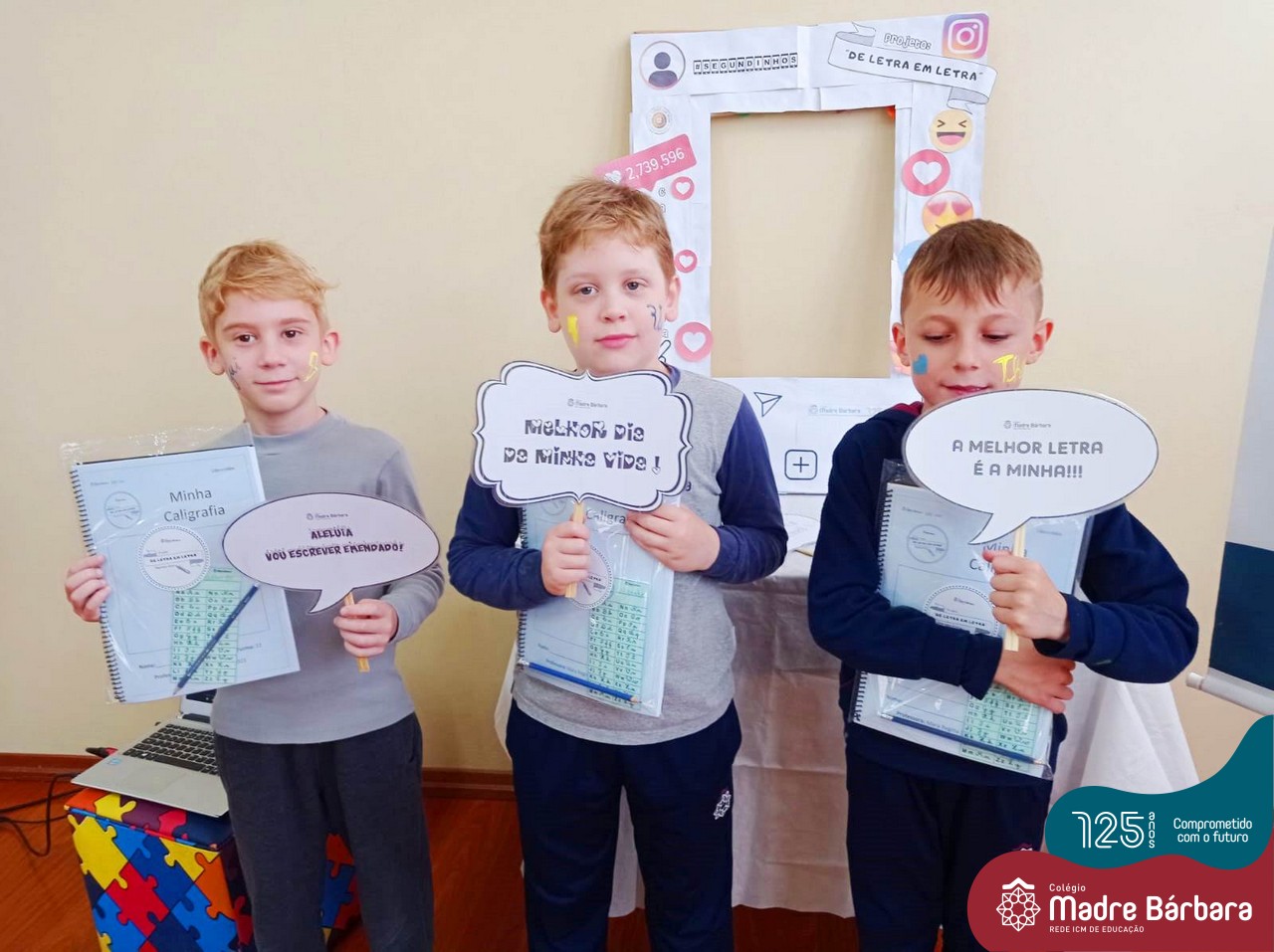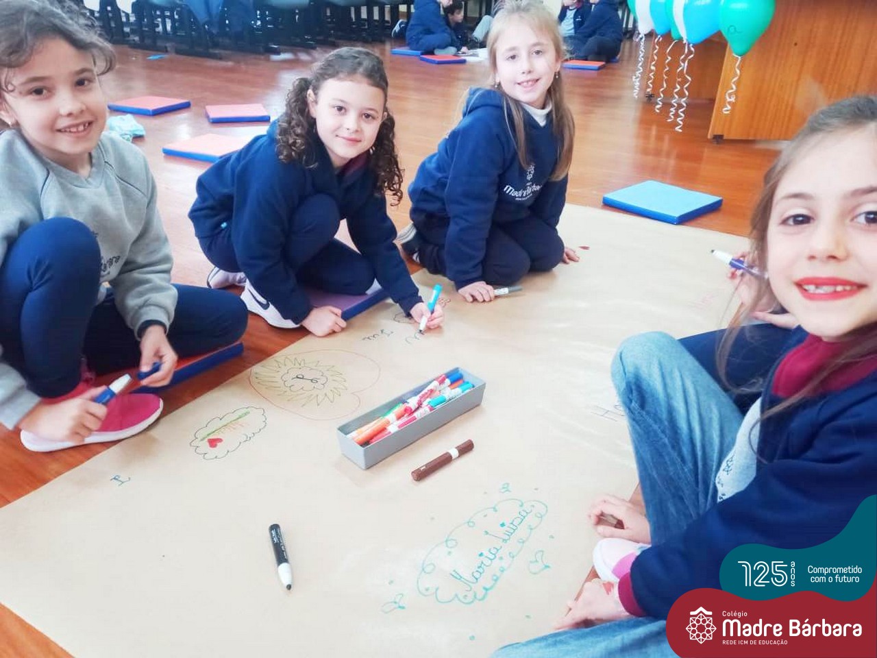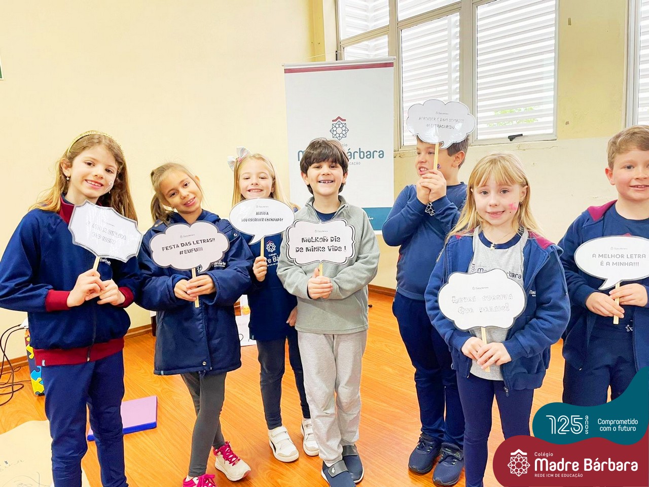 Os alunos foram convidados a participar da FESTA DA LETRA CURSIVA, que foi planejada e preparada com muito carinho pelas professoras Caroline, Juliane, Marina, Mara S. e Bruna. O presente projeto tem como objetivo despertar ainda mais o desejo em aprender a letra emendada. O lúdico no processo de aprendizagem estimula habilidades socioemocionais, nutre a autoestima e garante memórias afetivas, tão importantes no processo ensino-aprendizagem. Colocando em prática os 7 hábitos do Líder em Mim os alunos foram direcionados para estações com um objetivo em mente: desafiar-se a ler e escrever algumas letras emendadas, utilizando massinha de modelar, areia colorida, pinturas no rosto de letras e palavras, assinar o nome em um papel fixado no chão, utilizando canetões com muita sinergia.