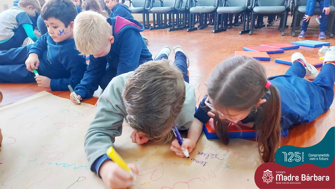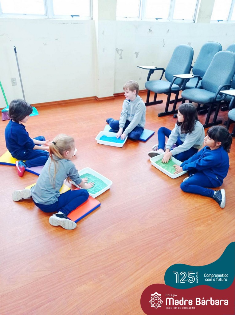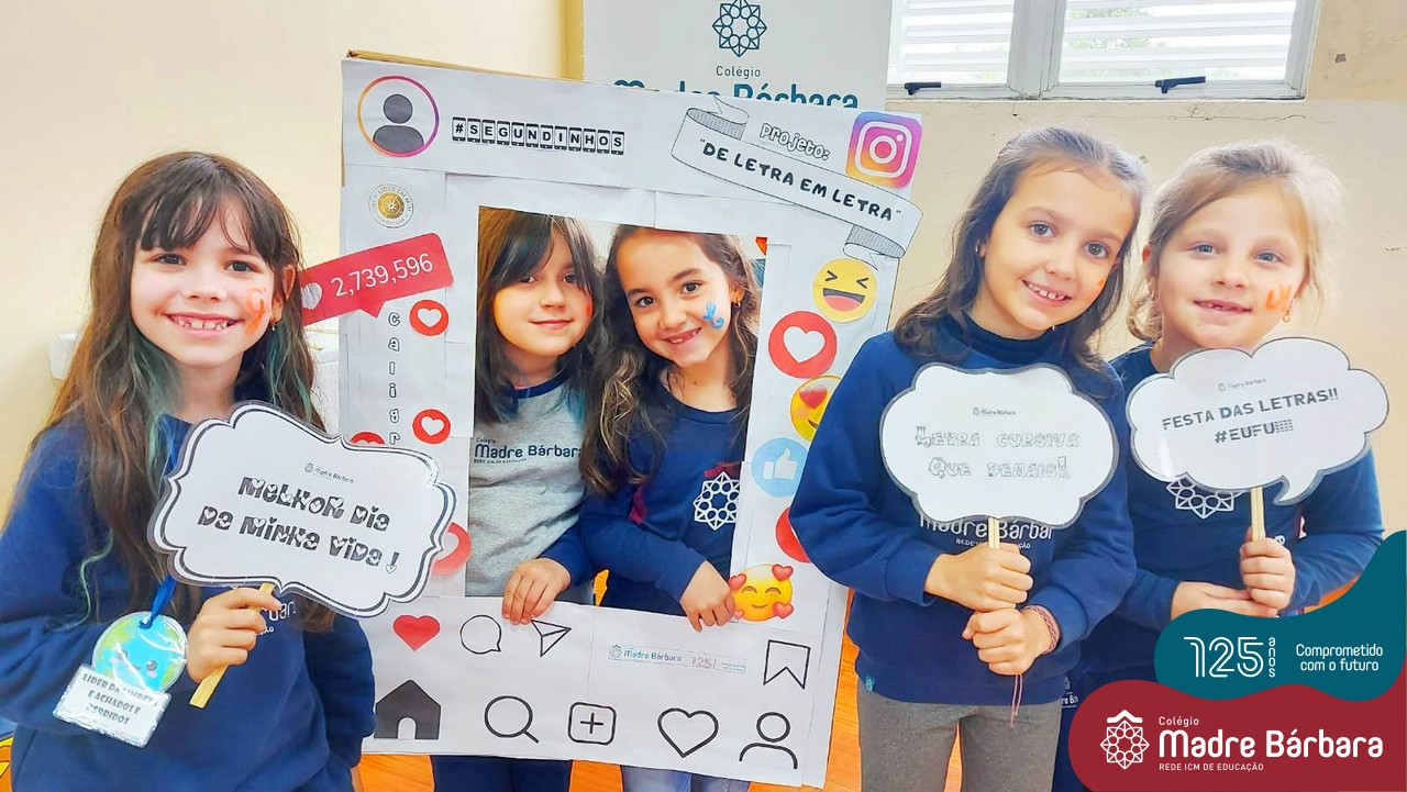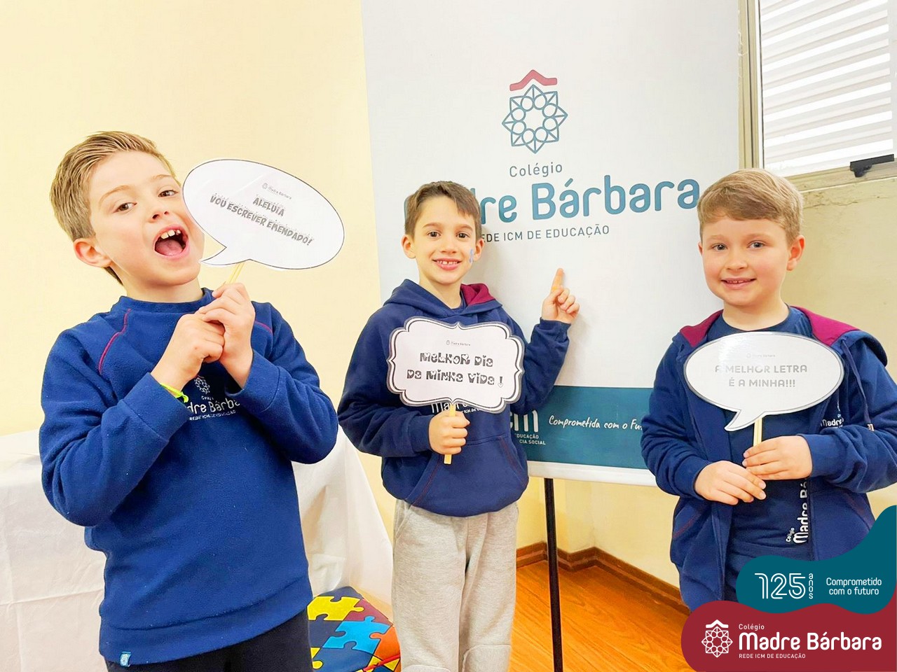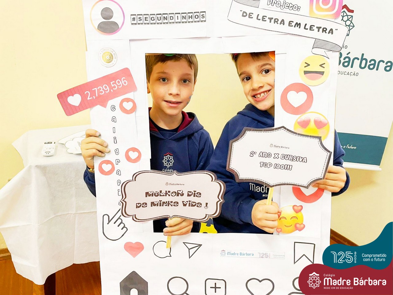 Os alunos foram convidados a participar da FESTA DA LETRA CURSIVA, que foi planejada e preparada com muito carinho pelas professoras Caroline, Juliane, Marina, Mara S. e Bruna. O presente projeto tem como objetivo despertar ainda mais o desejo em aprender a letra emendada. O lúdico no processo de aprendizagem estimula habilidades socioemocionais, nutre a autoestima e garante memórias afetivas, tão importantes no processo ensino-aprendizagem. Colocando em prática os 7 hábitos do Líder em Mim os alunos foram direcionados para estações com um objetivo em mente: desafiar-se a ler e escrever algumas letras emendadas, utilizando massinha de modelar, areia colorida, pinturas no rosto de letras e palavras, assinar o nome em um papel fixado no chão, utilizando canetões com muita sinergia.