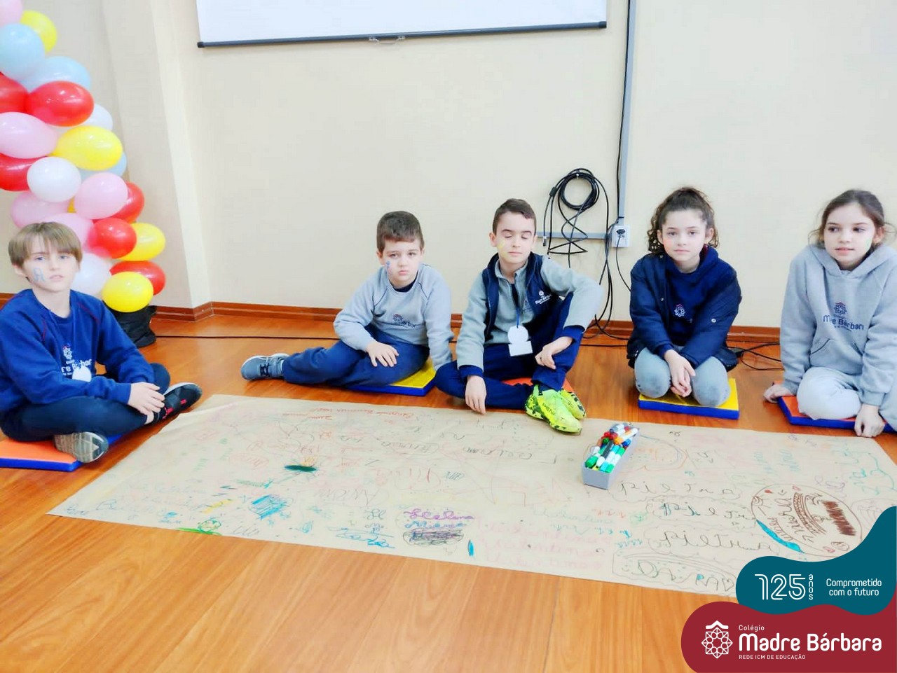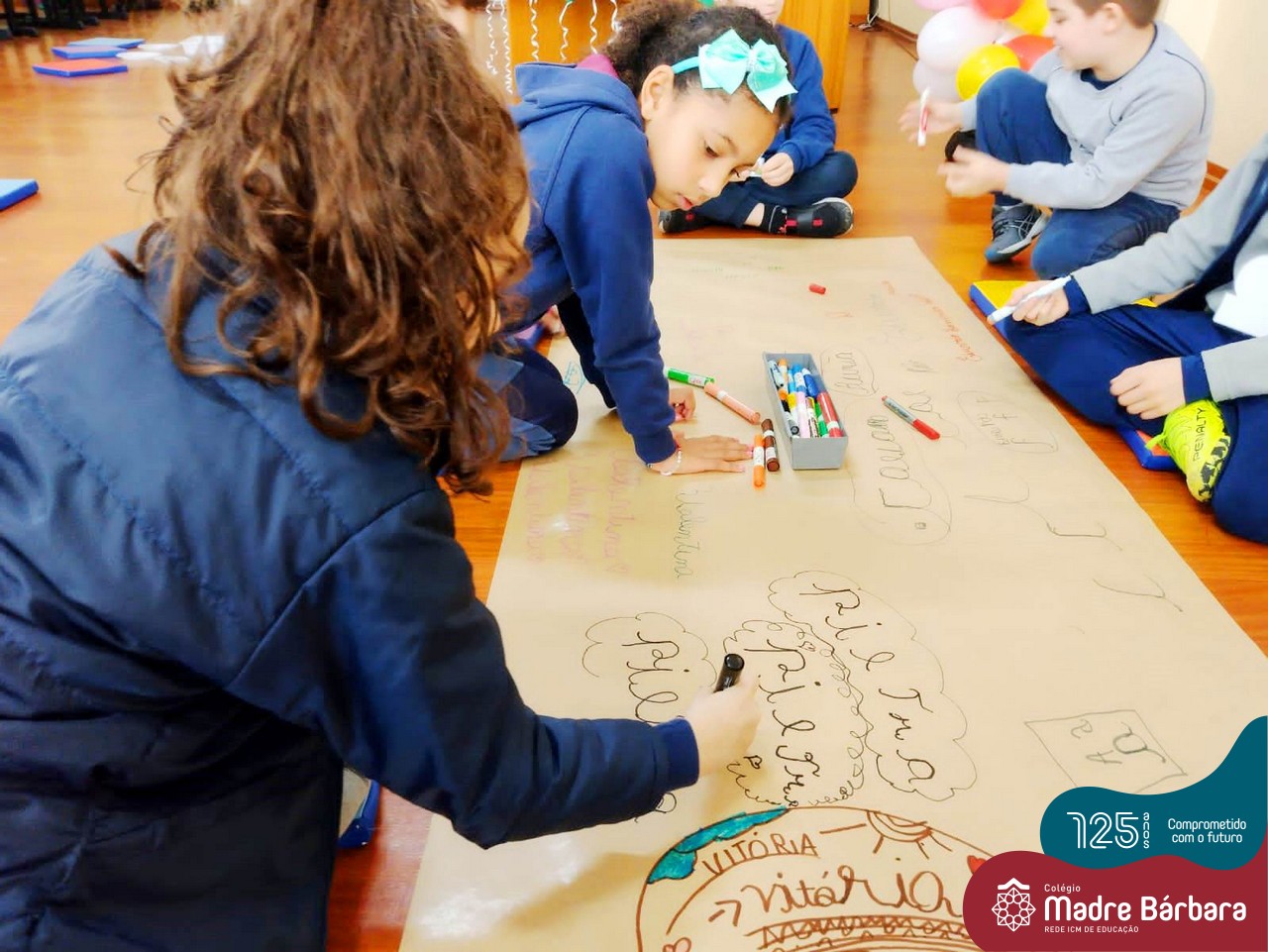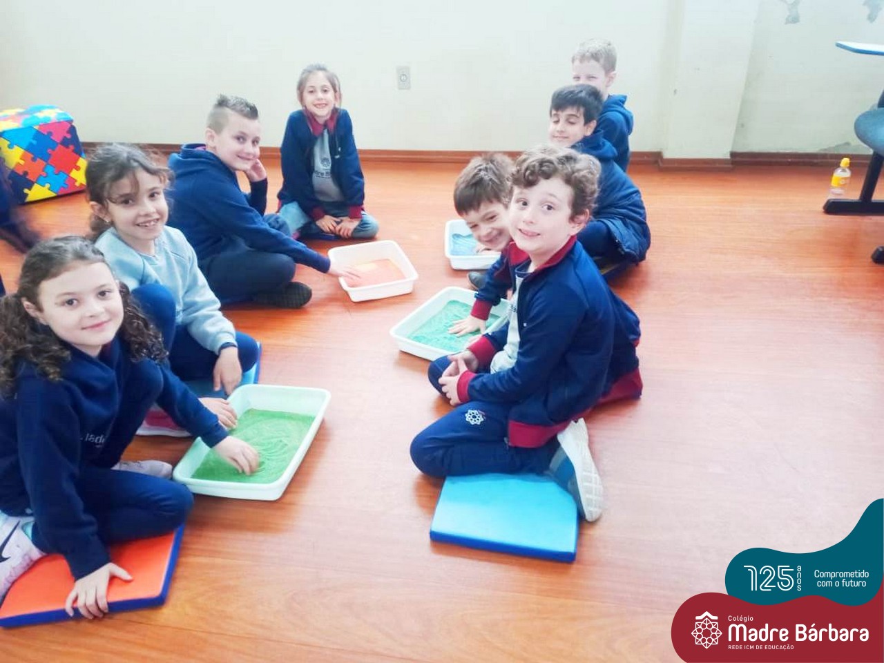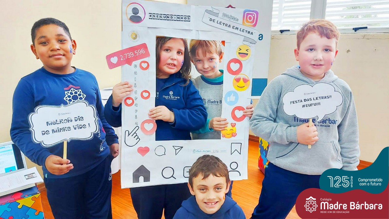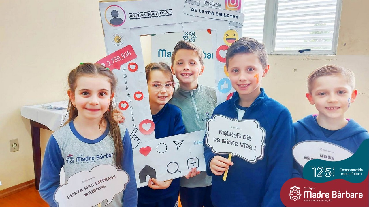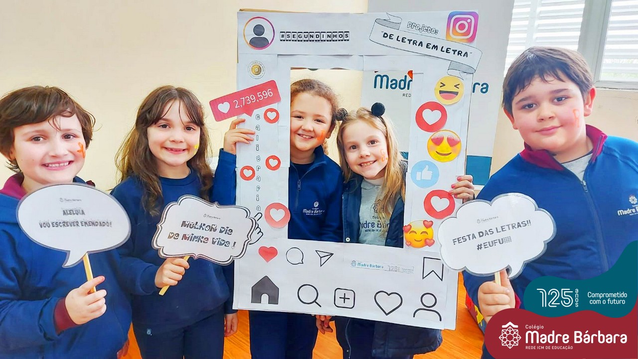 Os alunos foram convidados a participar da FESTA DA LETRA CURSIVA, que foi planejada e preparada com muito carinho pelas professoras Caroline, Juliane, Marina, Mara S. e Bruna. O presente projeto tem como objetivo despertar ainda mais o desejo em aprender a letra emendada. O lúdico no processo de aprendizagem estimula habilidades socioemocionais, nutre a autoestima e garante memórias afetivas, tão importantes no processo ensino-aprendizagem. Colocando em prática os 7 hábitos do Líder em Mim os alunos foram direcionados para estações com um objetivo em mente: desafiar-se a ler e escrever algumas letras emendadas, utilizando massinha de modelar, areia colorida, pinturas no rosto de letras e palavras, assinar o nome em um papel fixado no chão, utilizando canetões com muita sinergia.