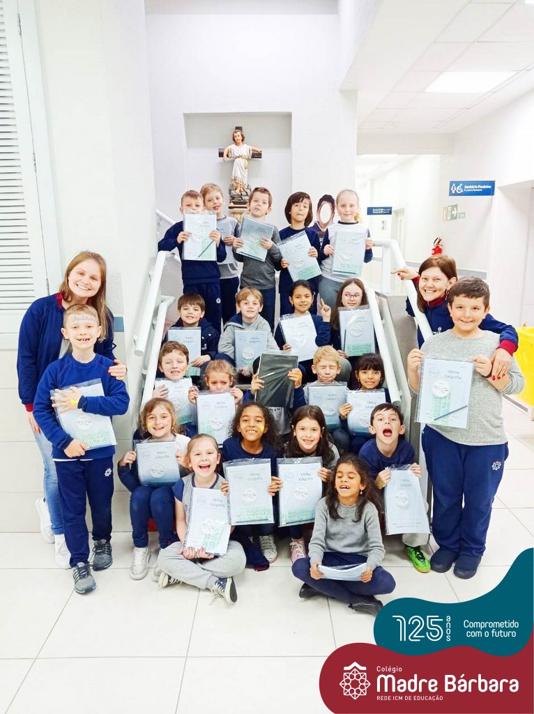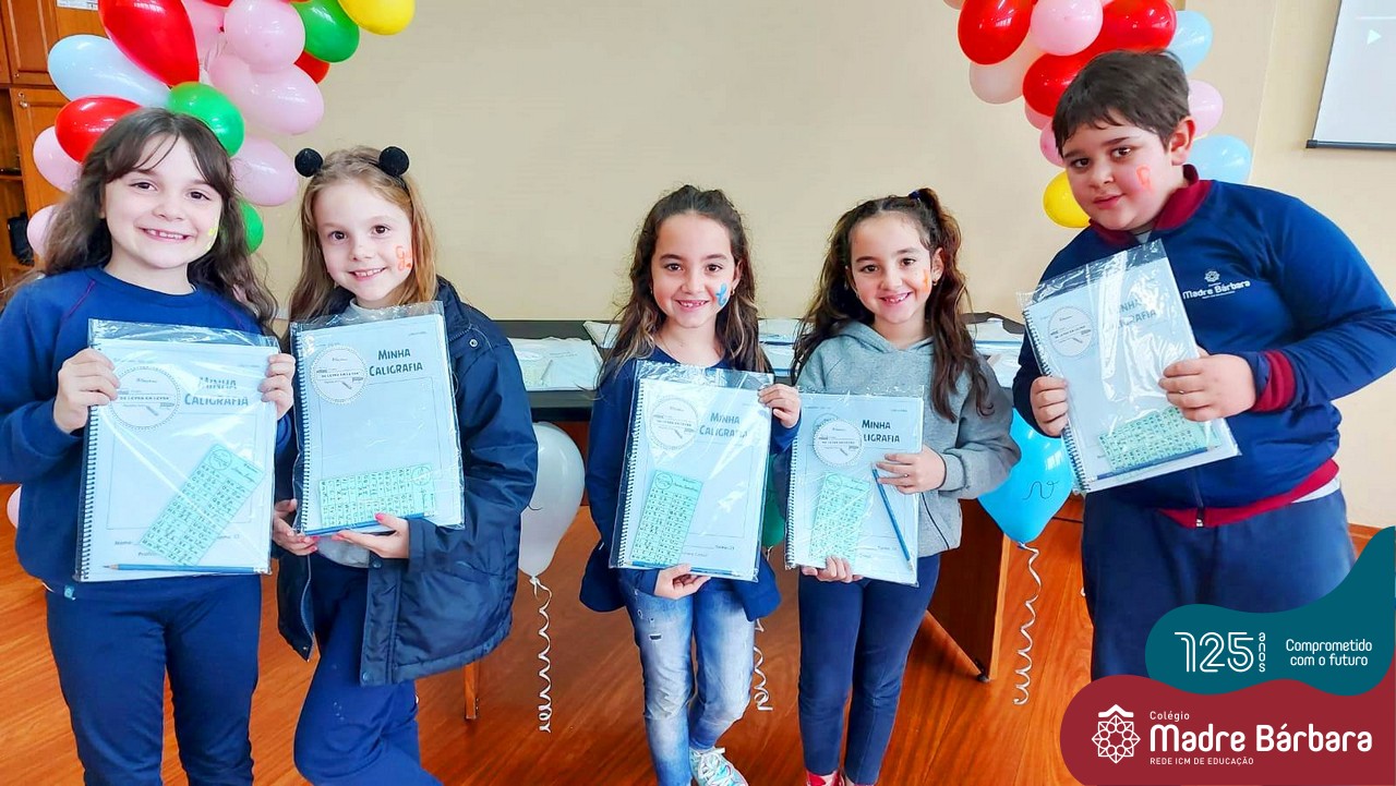 A FESTA DAS LETRAS foi divertida, descontraída e mágica, onde as crianças vivenciaram com muita intensidade cada momento. Para fechar com chave de ouro os alunos receberam um Kit contendo um caderno personalizado de caligrafia, uma cartela plastificada para consulta das letras e um lápis para registar a nova escrita que será explorada em sala de aula com muita proatividade.