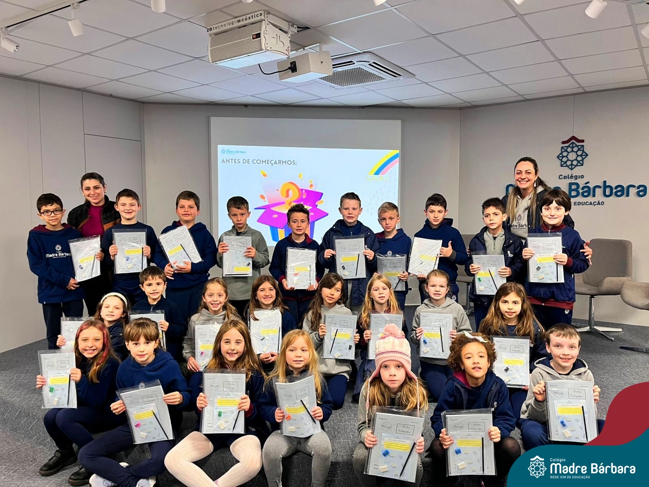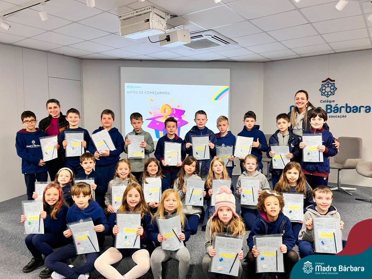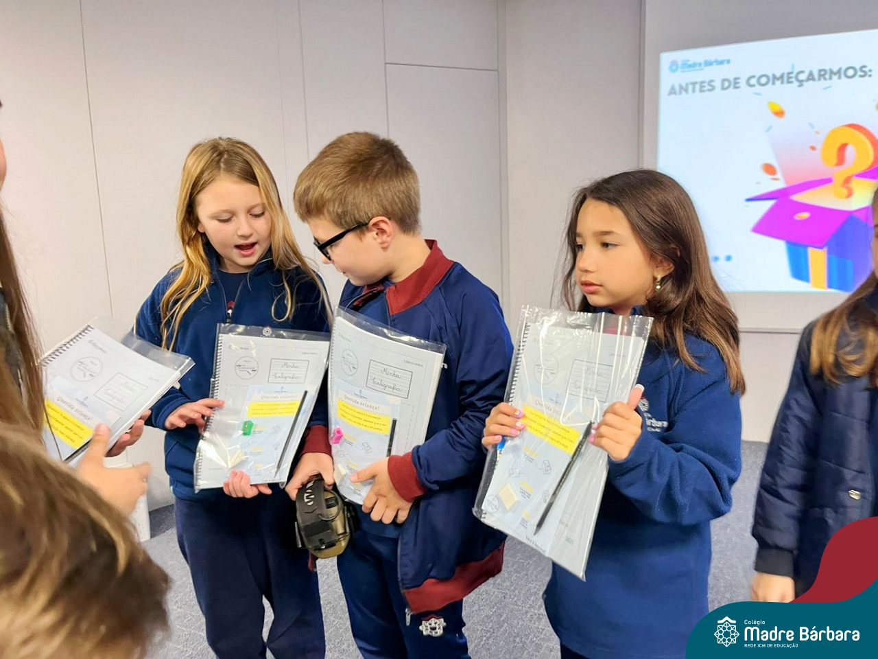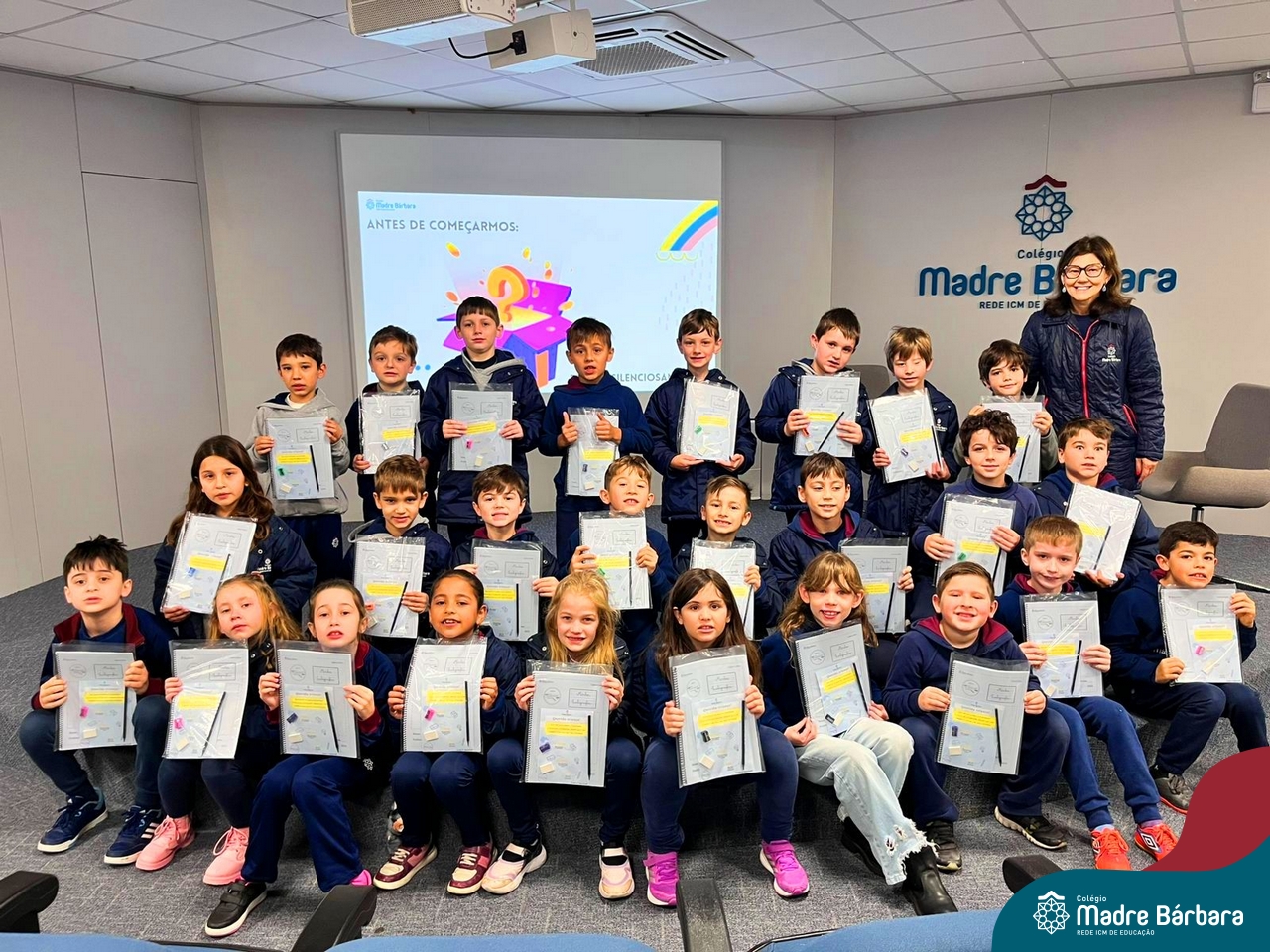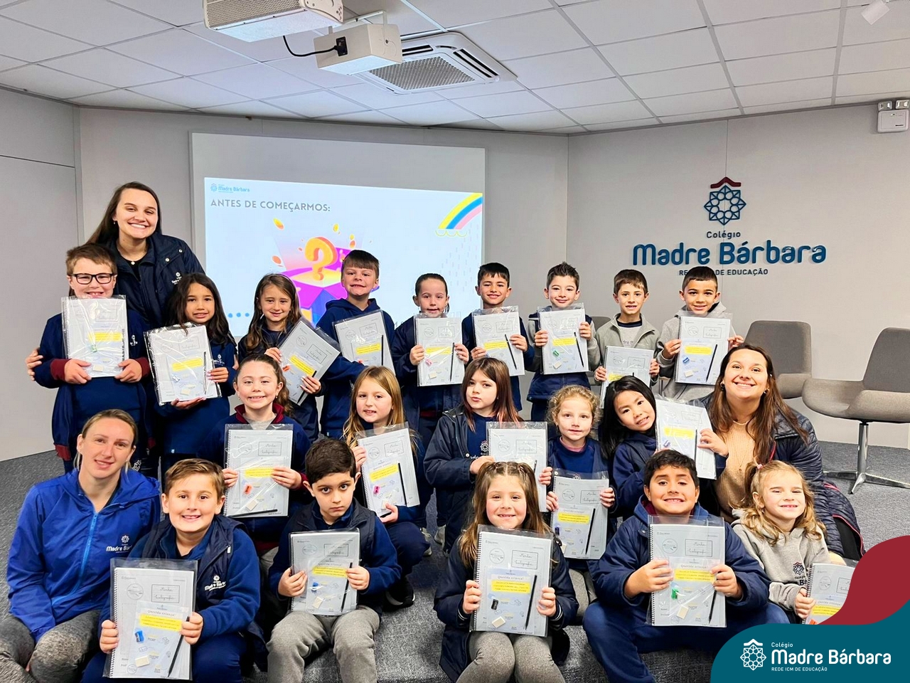 Logo após, cada aluno recebeu um kit contendo um caderno de caligrafia personalizado, um lápis, uma borracha e um apontador. Agora, começa a aventura: descobrir os segredos de cada traçado, experimentar diferentes materiais e deixar a escrita fluir como música no papel.