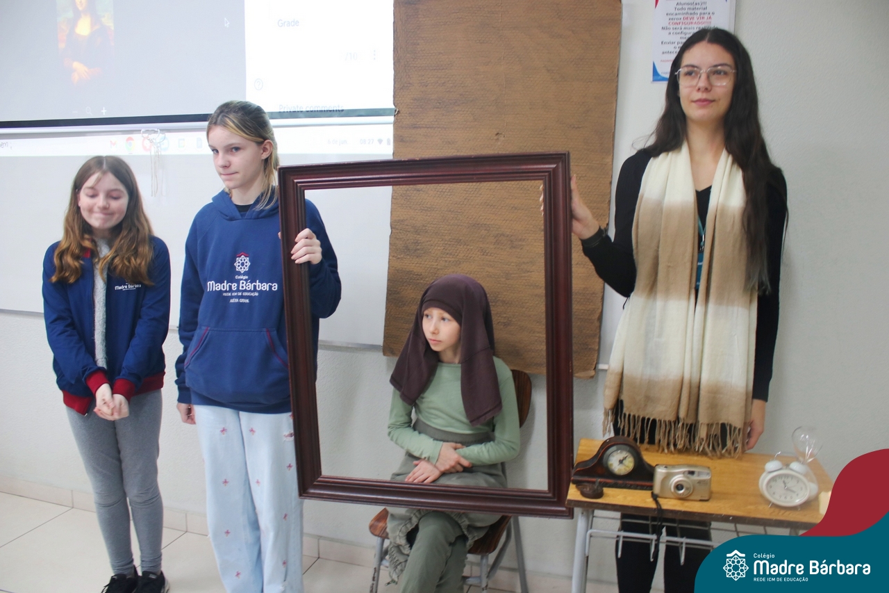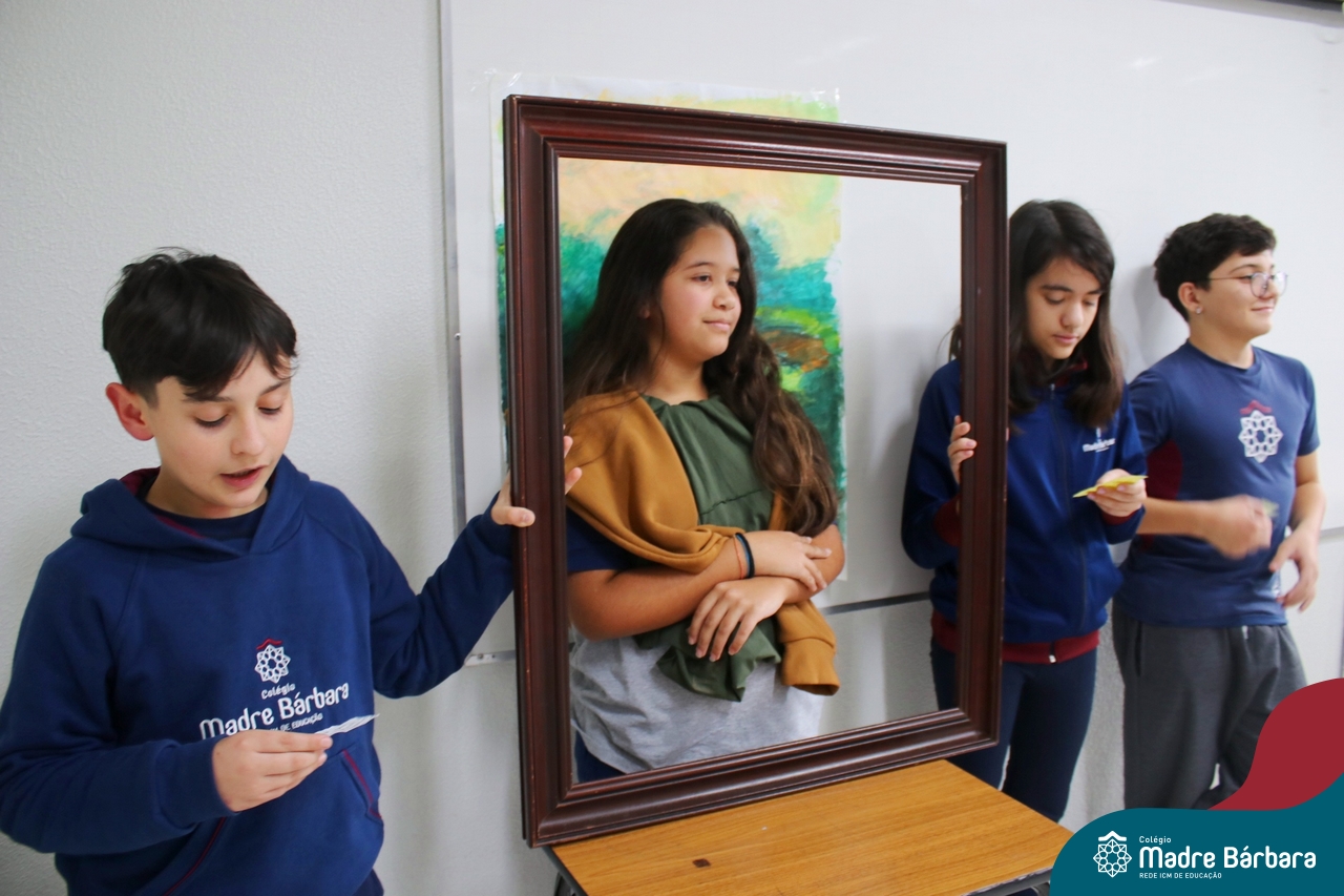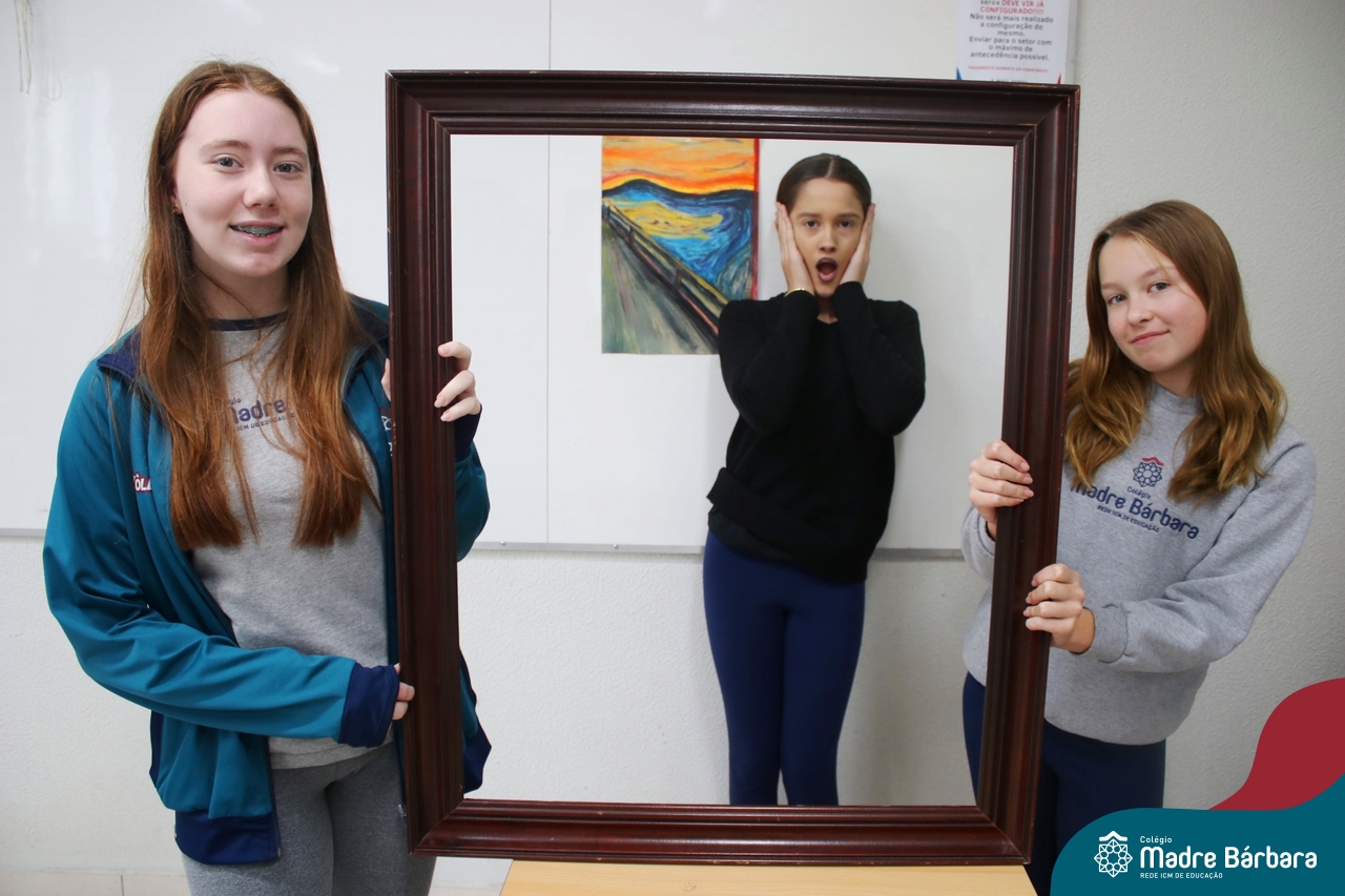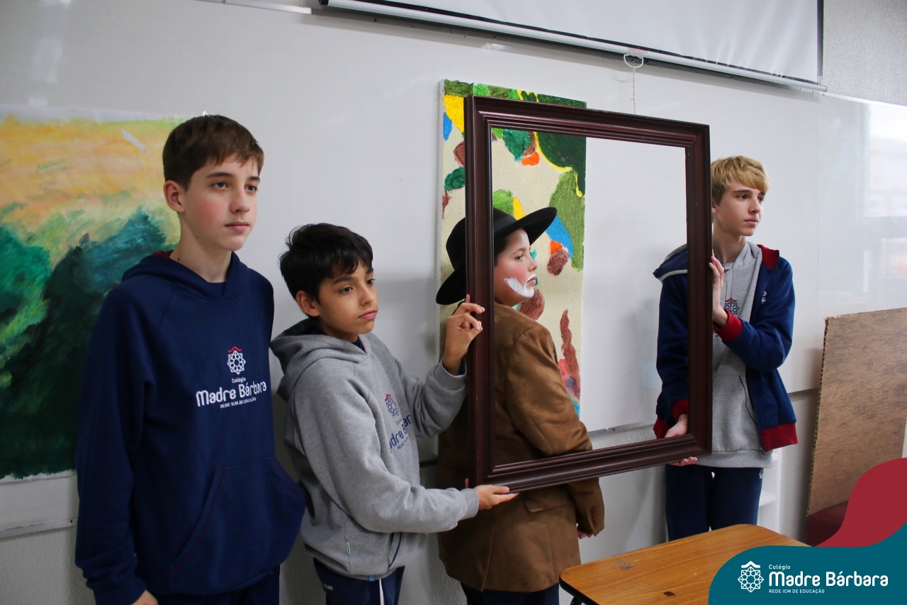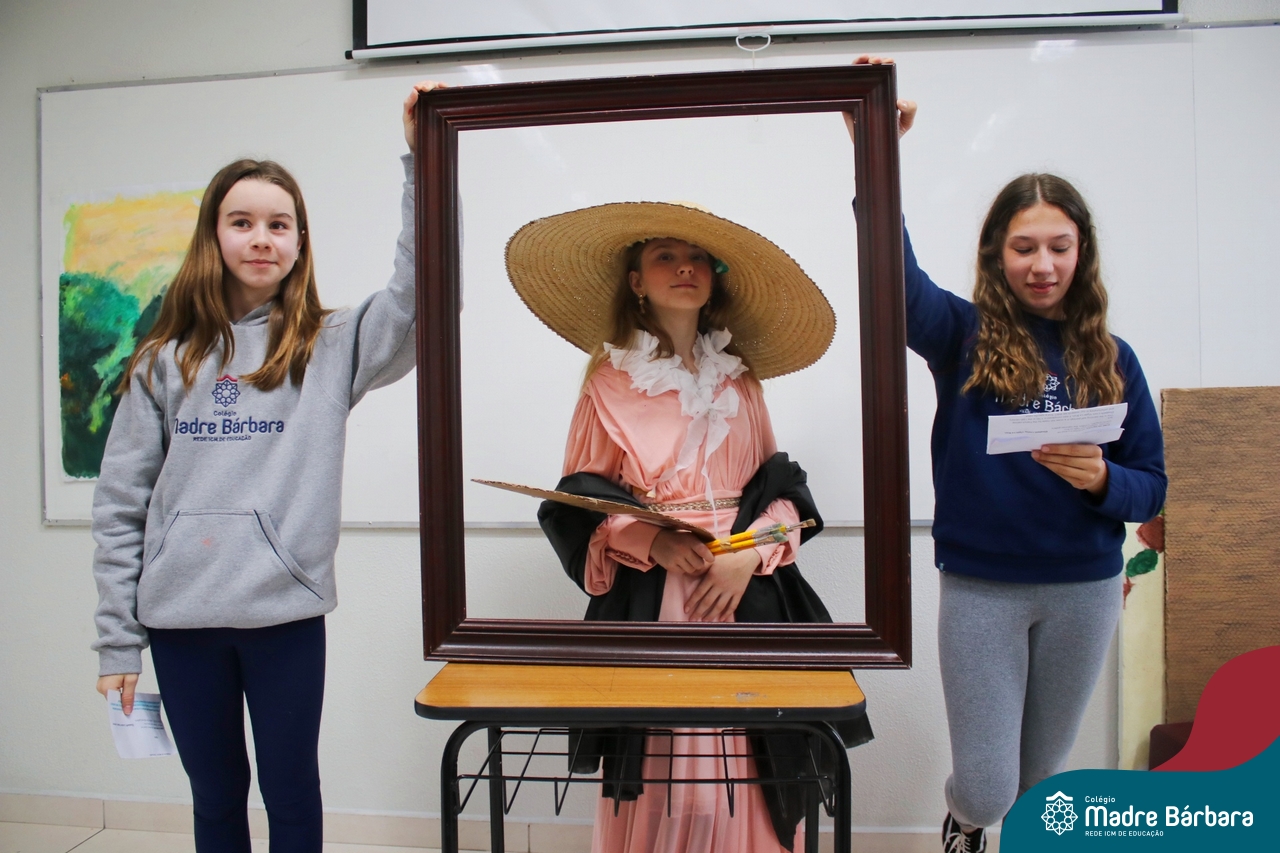 Diferentes formas de arte e artistas foi o tema de estudo dos alunos dos 7ºs anos, nas aulas de língua inglesa. O Projeto Live Painting exigiu criatividade para representar uma obra preexistente, de importância histórica, com figurantes trajados como se fossem uma pintura. Os curadores apresentaram em inglês informações e curiosidades sobre obras de Van Gogh, Da Vinci, Renoir, Paul Cezanne, Frida Kahlo, entre outros artistas renomados.