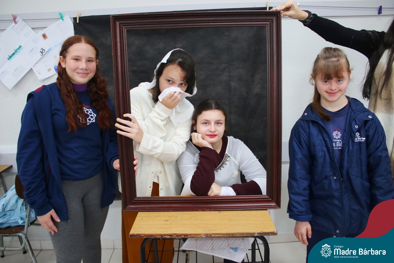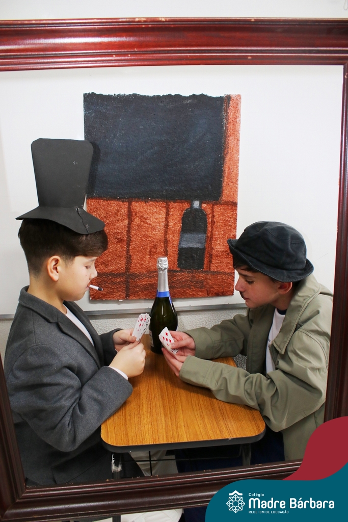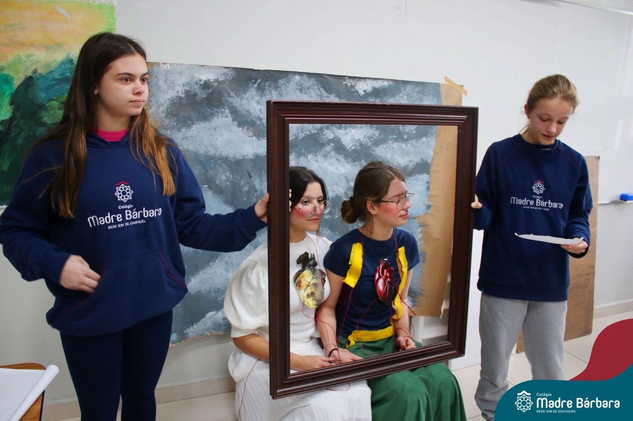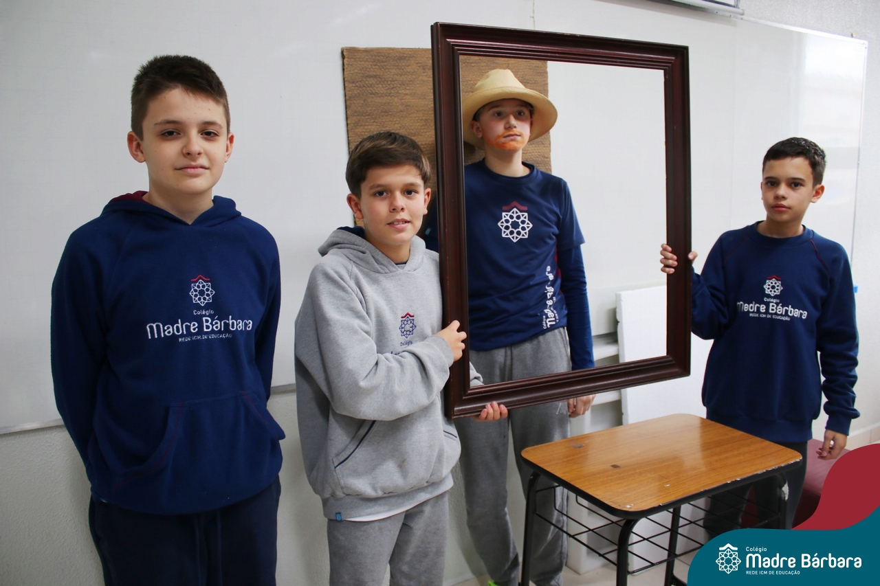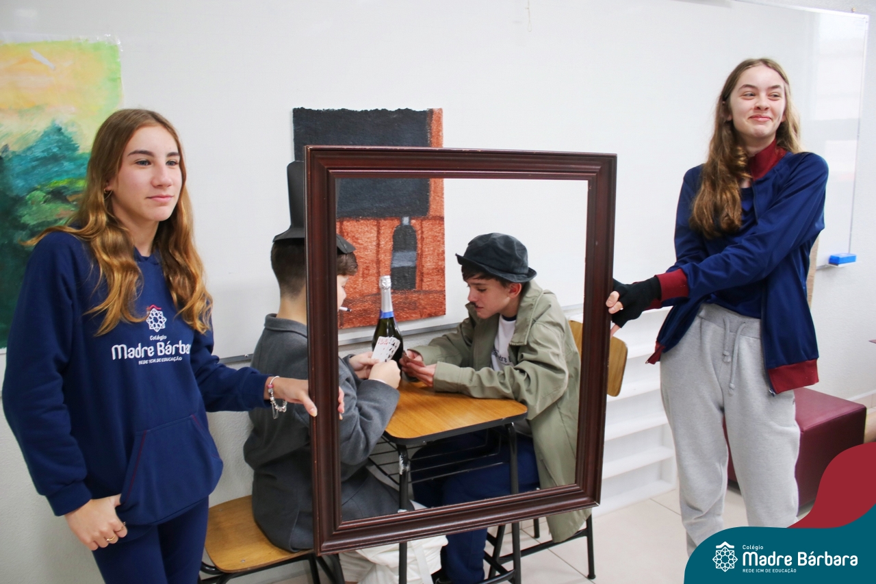 Diferentes formas de arte e artistas foi o tema de estudo dos alunos dos 7ºs anos, nas aulas de língua inglesa. O Projeto Live Painting exigiu criatividade para representar uma obra preexistente, de importância histórica, com figurantes trajados como se fossem uma pintura. Os curadores apresentaram em inglês informações e curiosidades sobre obras de Van Gogh, Da Vinci, Renoir, Paul Cezanne, Frida Kahlo, entre outros artistas renomados.