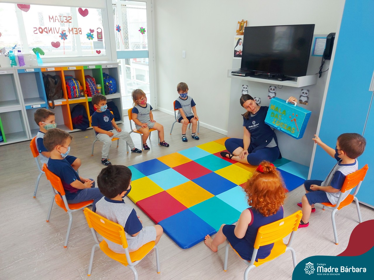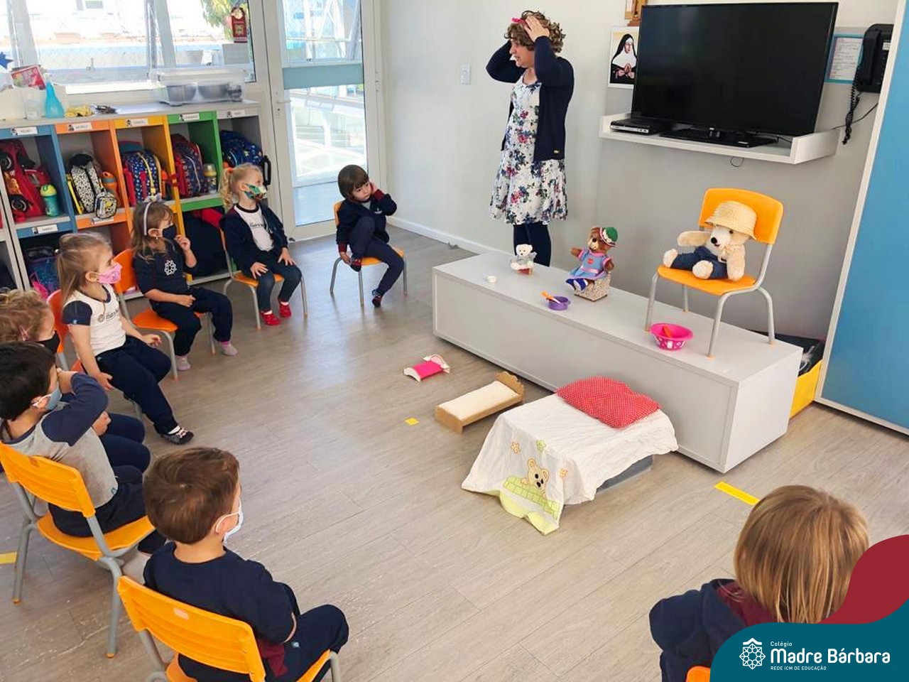 O Nível 2B está envolvido com um novo projeto, vivenciando diversas experiências, contações de histórias e desafios a partir da “Mala das Ideias”. Entre tantas vivências, conheceram a história “Beleléu e as cores”, realizando experiências sobre a descoberta das cores. A história “Cachinhos Dourados e os Três Ursos” também surgiu na “mala”, propondo situações com as Linguagens lógico-matemática, jogo simbólico e oralidade.