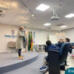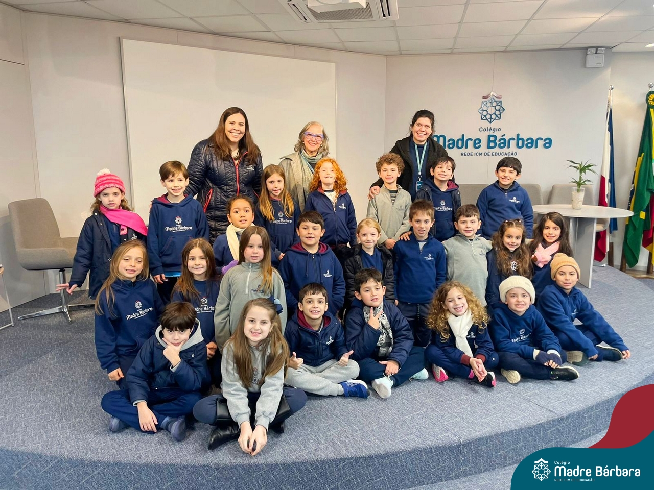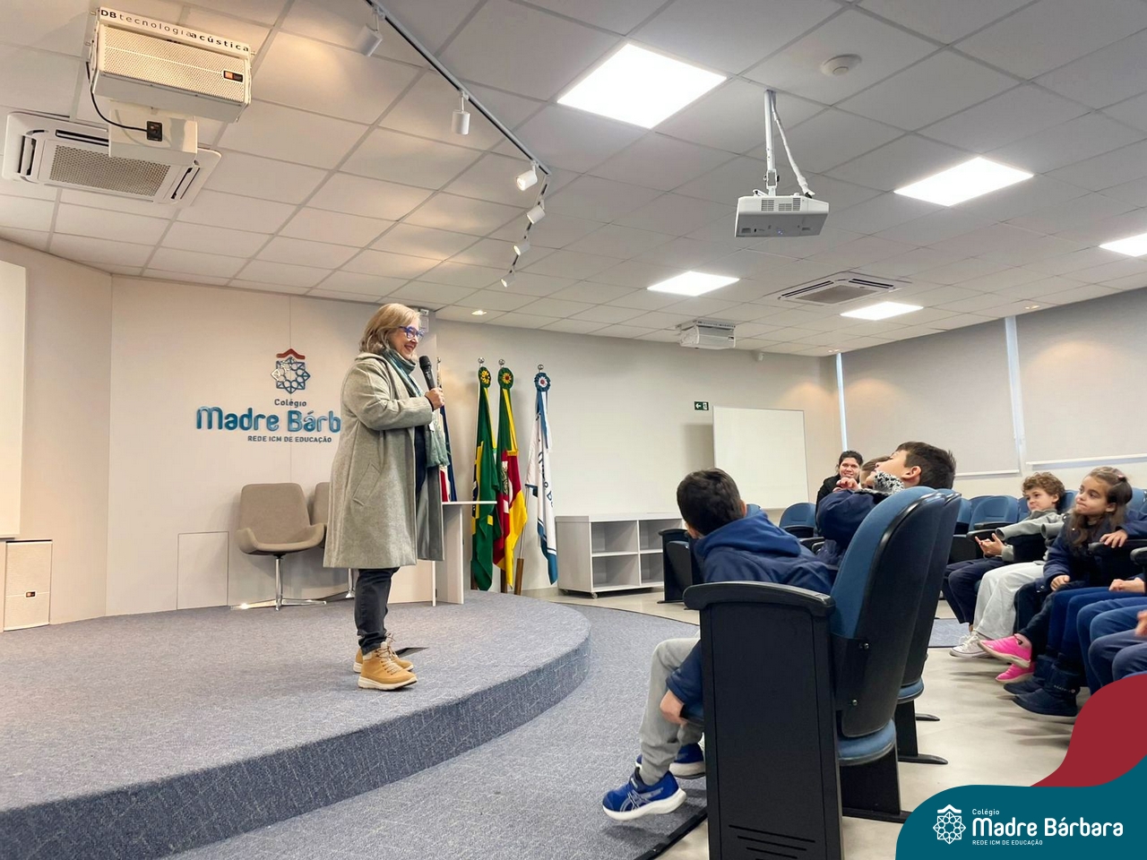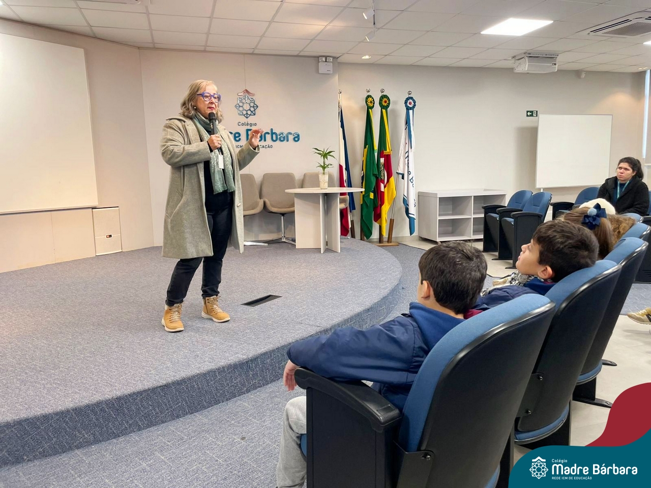 Para tornar esse processo ainda mais especial, recebemos a visita da Editora de livros Meire Brod, que veio compartilhar todo o caminho percorrido até que uma ideia se transforme em páginas impressas. Em um encontro rico em aprendizados, os alunos descobriram como acontece a diagramação, a escolha das capas, a revisão dos textos e a impressão final.