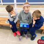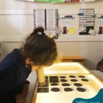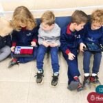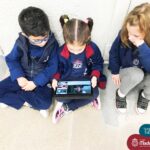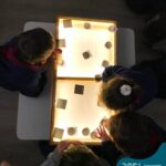 As crianças do Nível 5C juntamente com a professora Christiane e a monitora Deise, estão desenvolvendo o projeto “Todas as crianças em um só universo”. Partindo das curiosidades das crianças, um dos questionamentos foi: ” É possível desenhar nas estrelas?”. Através deste questionamento foi proposta uma situação de pesquisa com o auxílio dos tablets. Para direcionar a pesquisa, foram colocados por alguns espaços QR CODES que direcionaram as crianças para vídeos explicativos sobre as estrelas elencando as constelações. Após assistirmos aos vídeos foi oportunizado um momento de observação através da caixa de luz e imagens com algumas constelações.