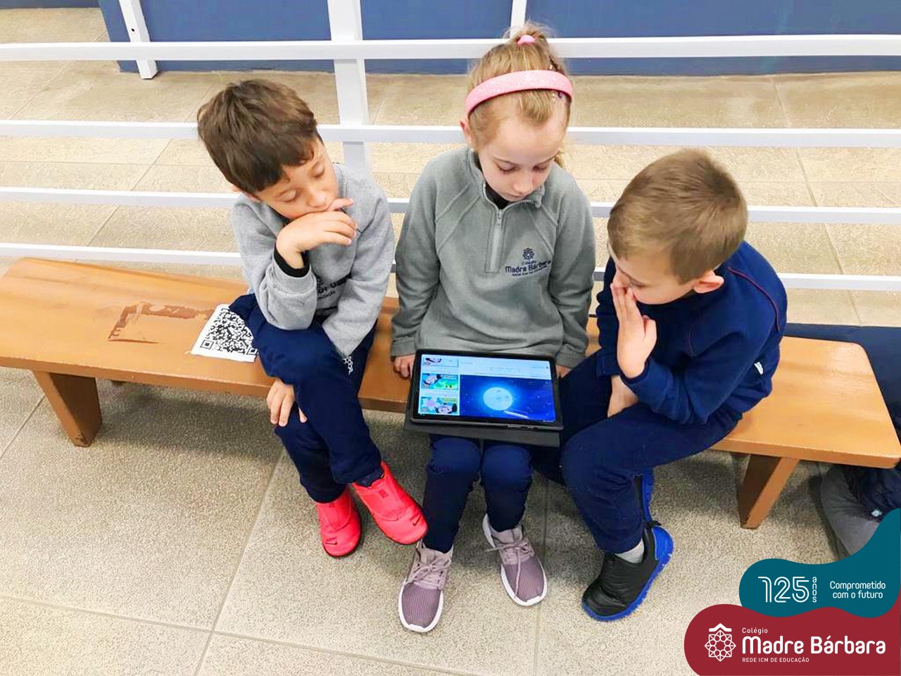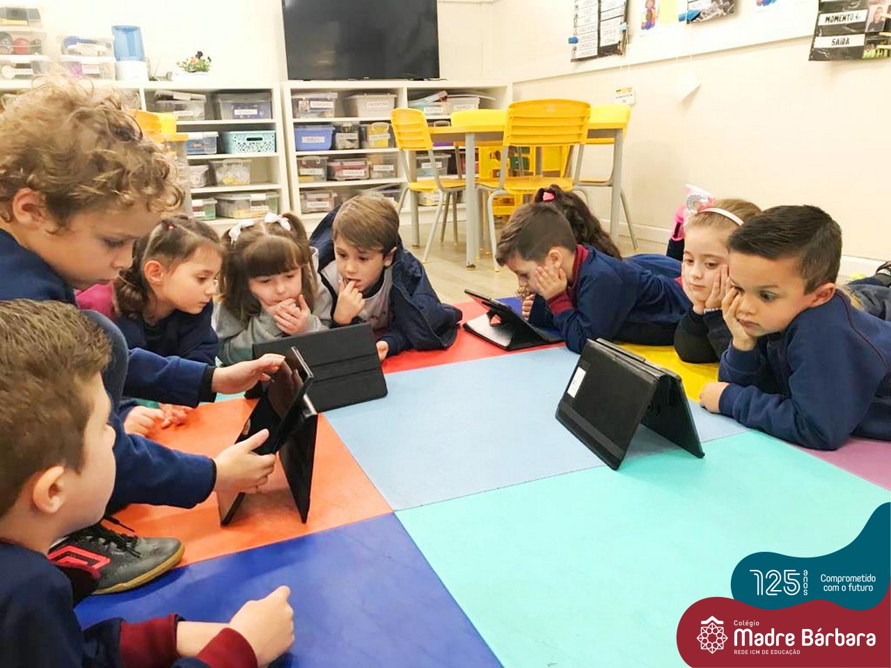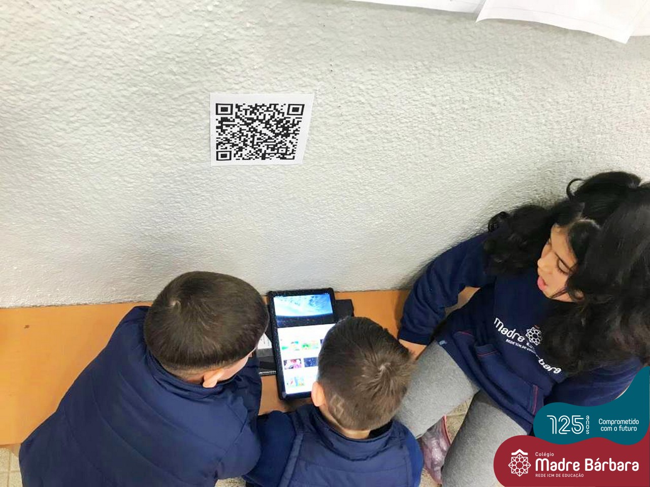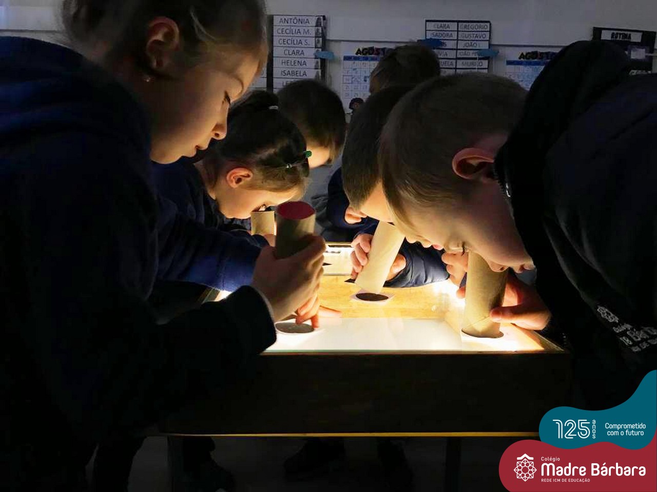 As crianças do Nível 5C juntamente com a professora Christiane e a monitora Deise, estão desenvolvendo o projeto “Todas as crianças em um só universo”. Partindo das curiosidades das crianças, um dos questionamentos foi: ” É possível desenhar nas estrelas?”. Através deste questionamento foi proposta uma situação de pesquisa com o auxílio dos tablets. Para direcionar a pesquisa, foram colocados por alguns espaços QR CODES que direcionaram as crianças para vídeos explicativos sobre as estrelas elencando as constelações. Após assistirmos aos vídeos foi oportunizado um momento de observação através da caixa de luz e imagens com algumas constelações.