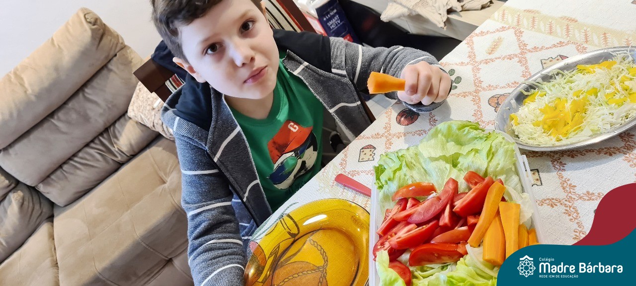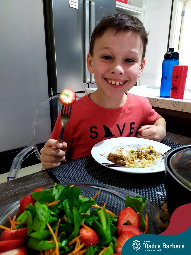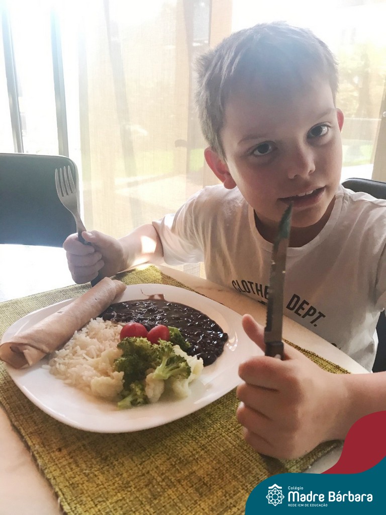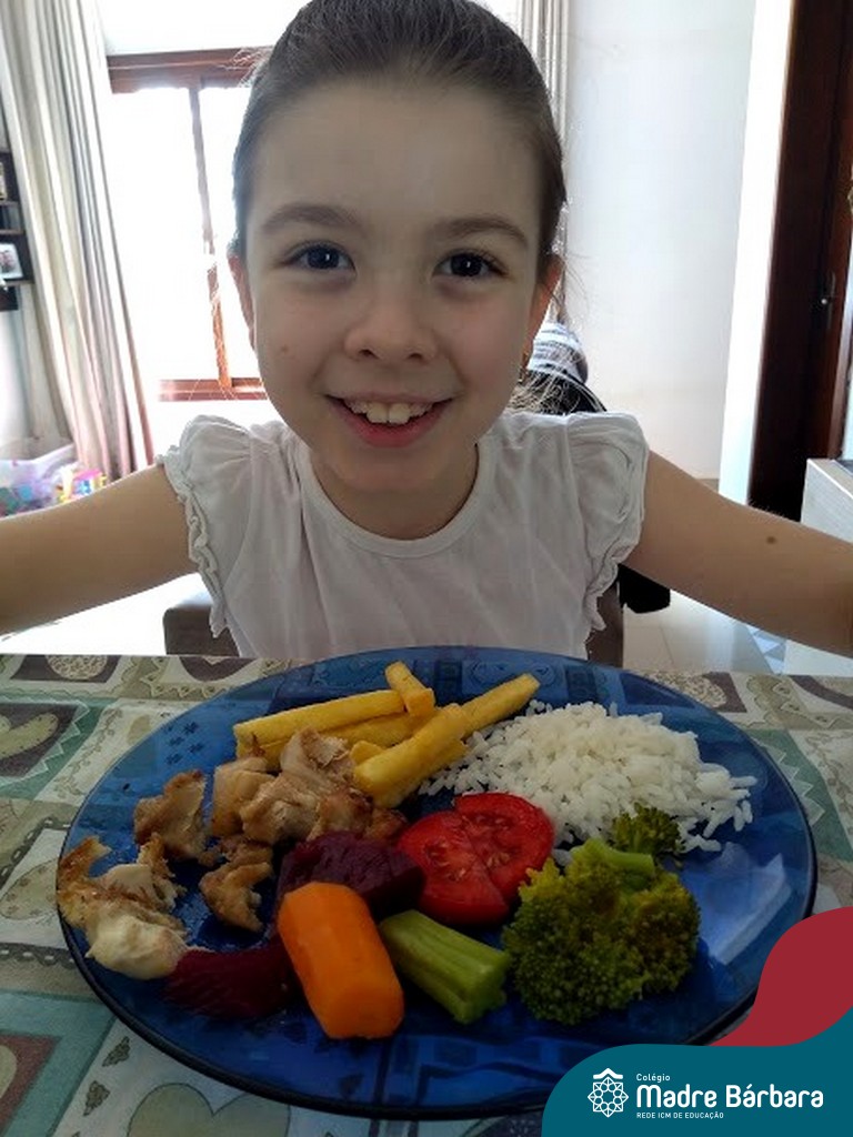 Com o objetivo em mente de mostrar às crianças a importância de uma boa alimentação e os benefícios que ela traz para a saúde do nosso corpo, as professoras dos Segundos Anos (Anos Iniciais) do Colégio Madre Bárbara exploraram esta temática desafiando os alunos a mostrarem “Qual a cor do seu prato”? Refletiram sobre a importância das refeições serem variadas, compondo diferentes grupos de nutrientes, pois nenhum alimento sozinho é capaz de proporcionar tudo que o organismo precisa. Além de fornecer saúde, boa energia e bem-estar, a alimentação saudável nos ajuda a combater doenças, manter o peso corporal ideal e também apresentar um bom condicionamento físico. Hipócrates, o pai da medicina, já dizia: “Faz do teu remédio o teu alimento e do teu alimento o teu remédio”. Este trabalho abordou paralelamente os Hábitos do Programa “Líder em Mim”.