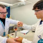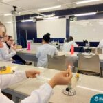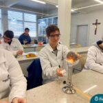 Os estudantes dos 3°s anos do Ensino Médio tiveram que ir atrás dessa resposta. Dentro da proposta de revisão do cálculo estequiométrico, os estudantes foram desafiados a calcular o rendimento de uma reação química a partir de uma reação química a partir da reação de combustão do ferro no Laboratório de Ciências da Natureza. A proposta é coordenada pelo professor Aliar Anacleto Jung.