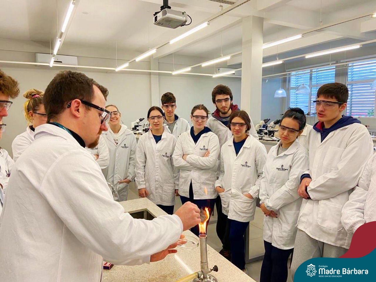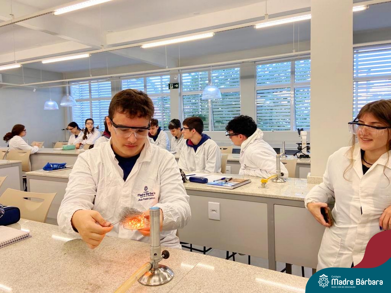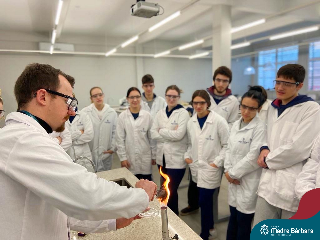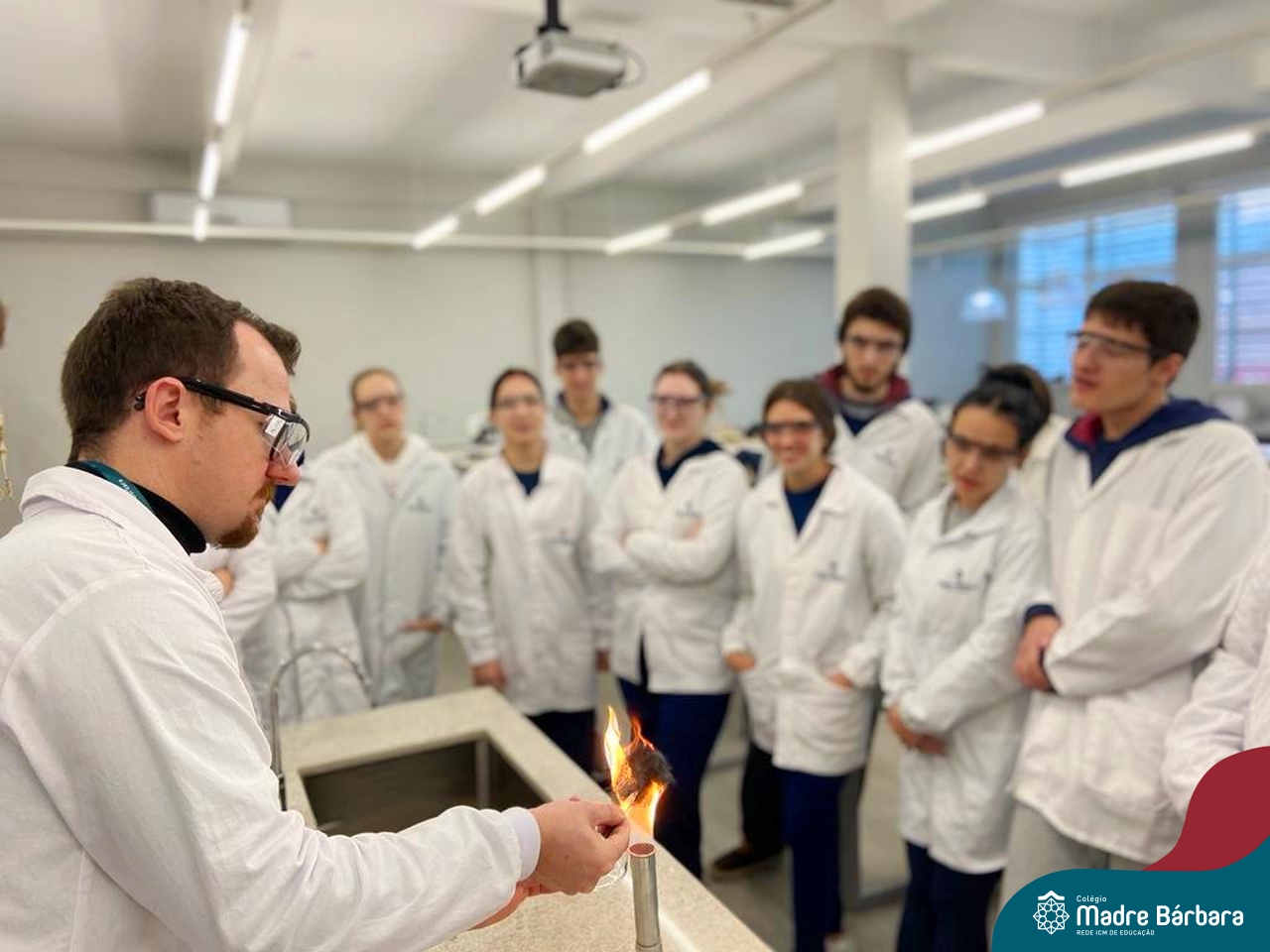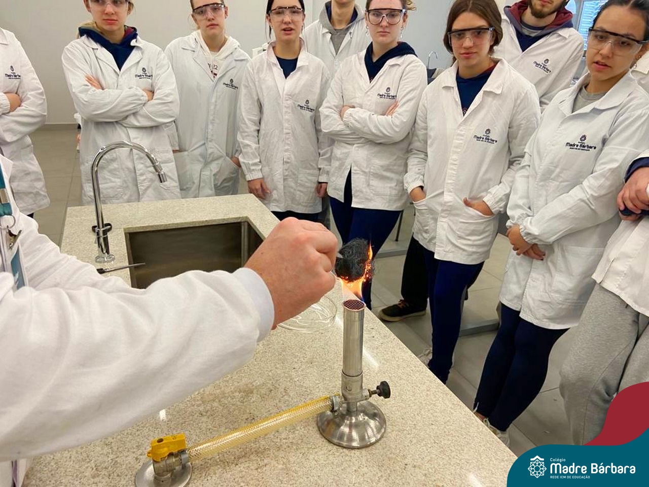Os estudantes dos 3°s anos do Ensino Médio tiveram que ir atrás dessa resposta. Dentro da proposta de revisão do cálculo estequiométrico, os estudantes foram desafiados a calcular o rendimento de uma reação química a partir de uma reação química a partir da reação de combustão do ferro no Laboratório de Ciências da Natureza. A proposta é coordenada pelo professor Aliar Anacleto Jung.