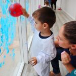 Envolvendo o tema de acolhida, a turma do nível 2A realizou nesta sexta-feira, 24.02, a pintura no vidro utilizando balões como recurso. Ouvindo a música superfantástico, as crianças divertiram-se enquanto deixavam suas marcas no vidro, espaço este que receberá o balão mágico confeccionado pelas famílias.