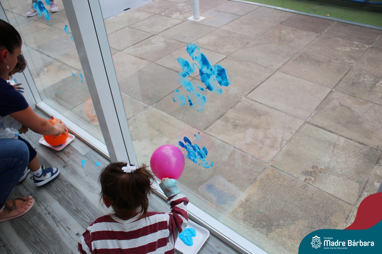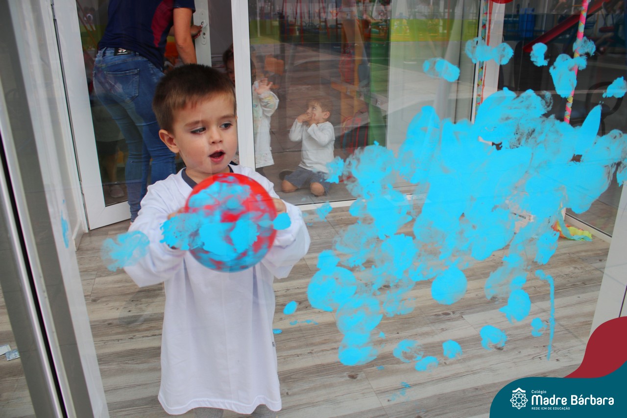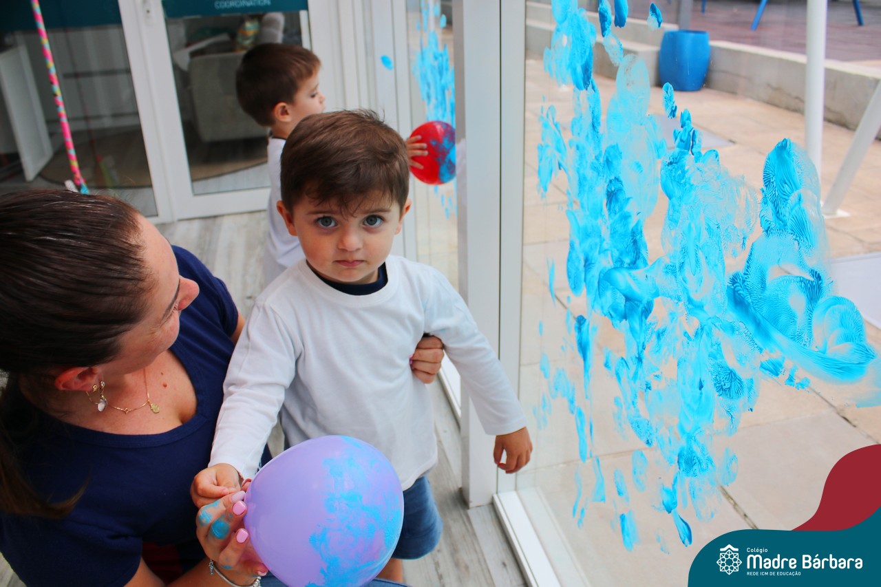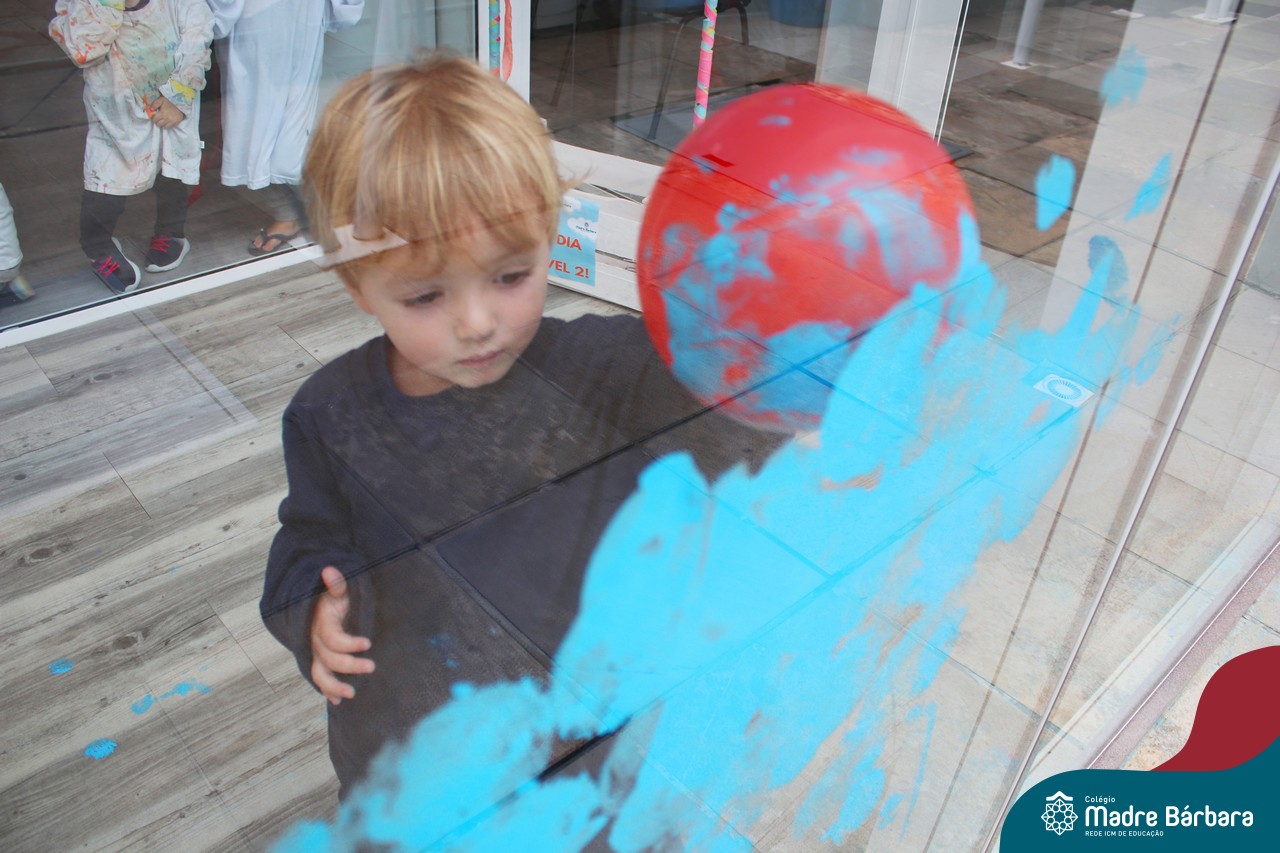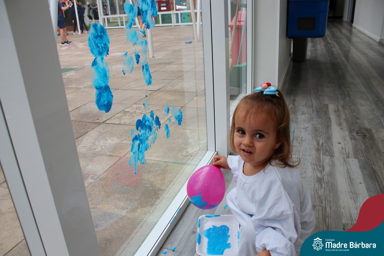 Envolvendo o tema de acolhida, a turma do nível 2A realizou nesta sexta-feira, 24.02, a pintura no vidro utilizando balões como recurso. Ouvindo a música superfantástico, as crianças divertiram-se enquanto deixavam suas marcas no vidro, espaço este que receberá o balão mágico confeccionado pelas famílias.