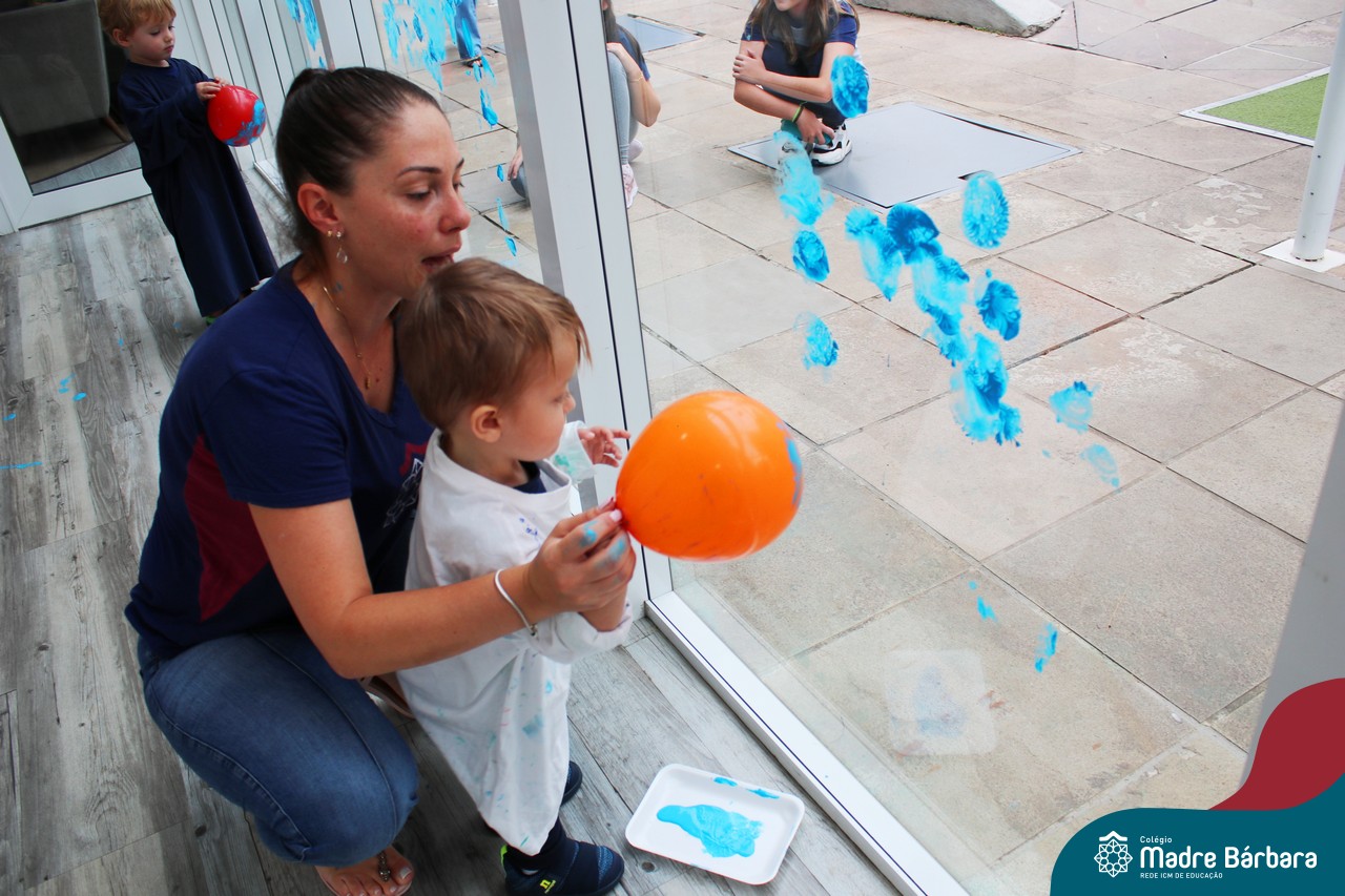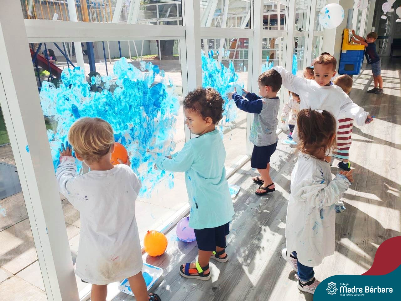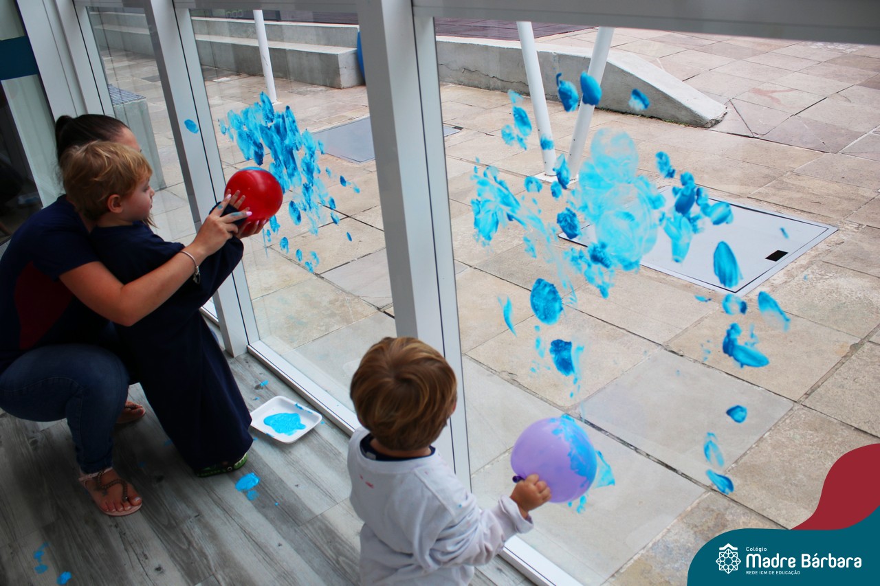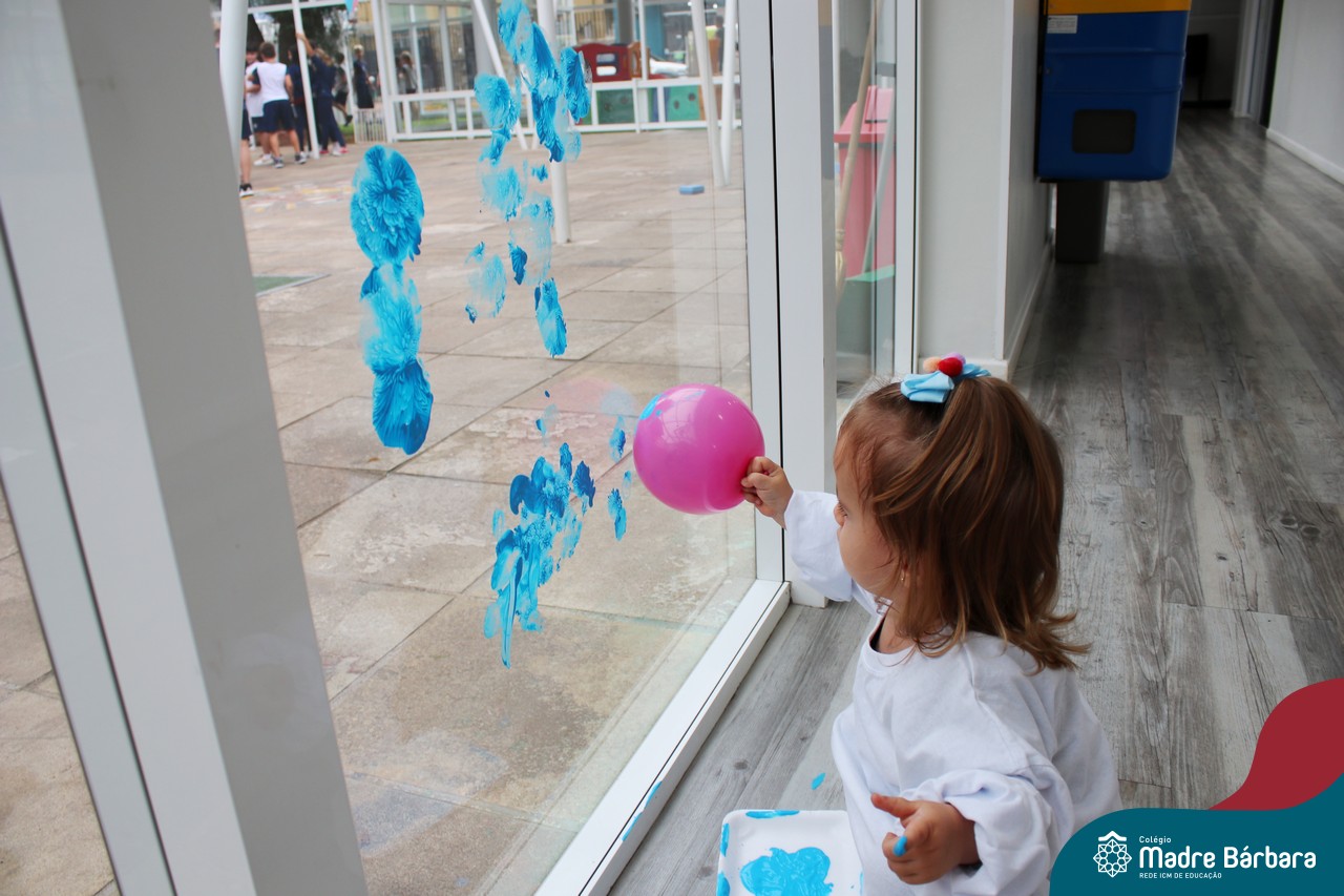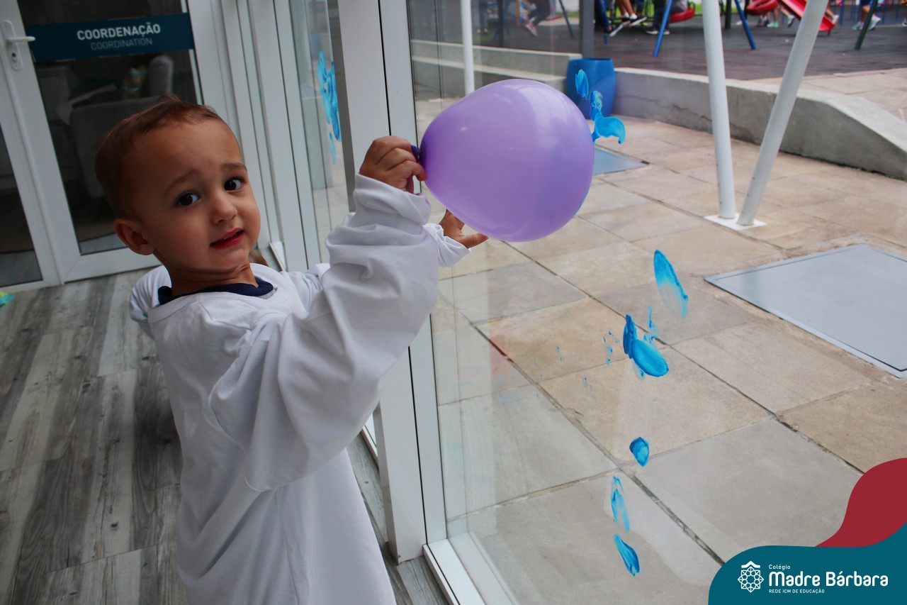 Envolvendo o tema de acolhida, a turma do nível 2A realizou nesta sexta-feira, 24.02, a pintura no vidro utilizando balões como recurso. Ouvindo a música superfantástico, as crianças divertiram-se enquanto deixavam suas marcas no vidro, espaço este que receberá o balão mágico confeccionado pelas famílias.