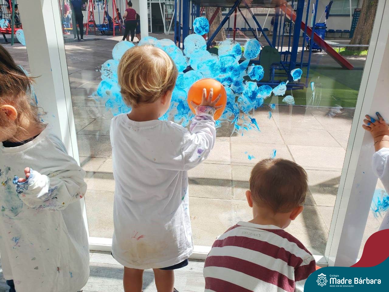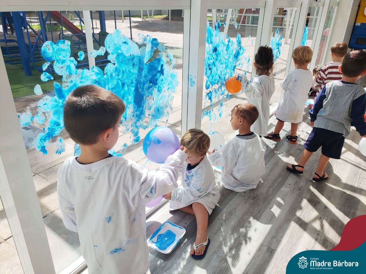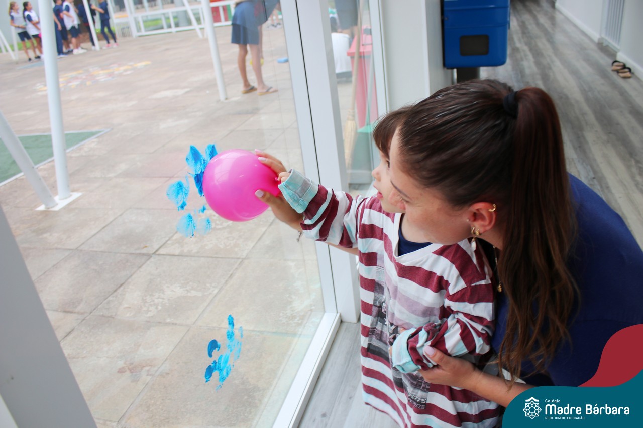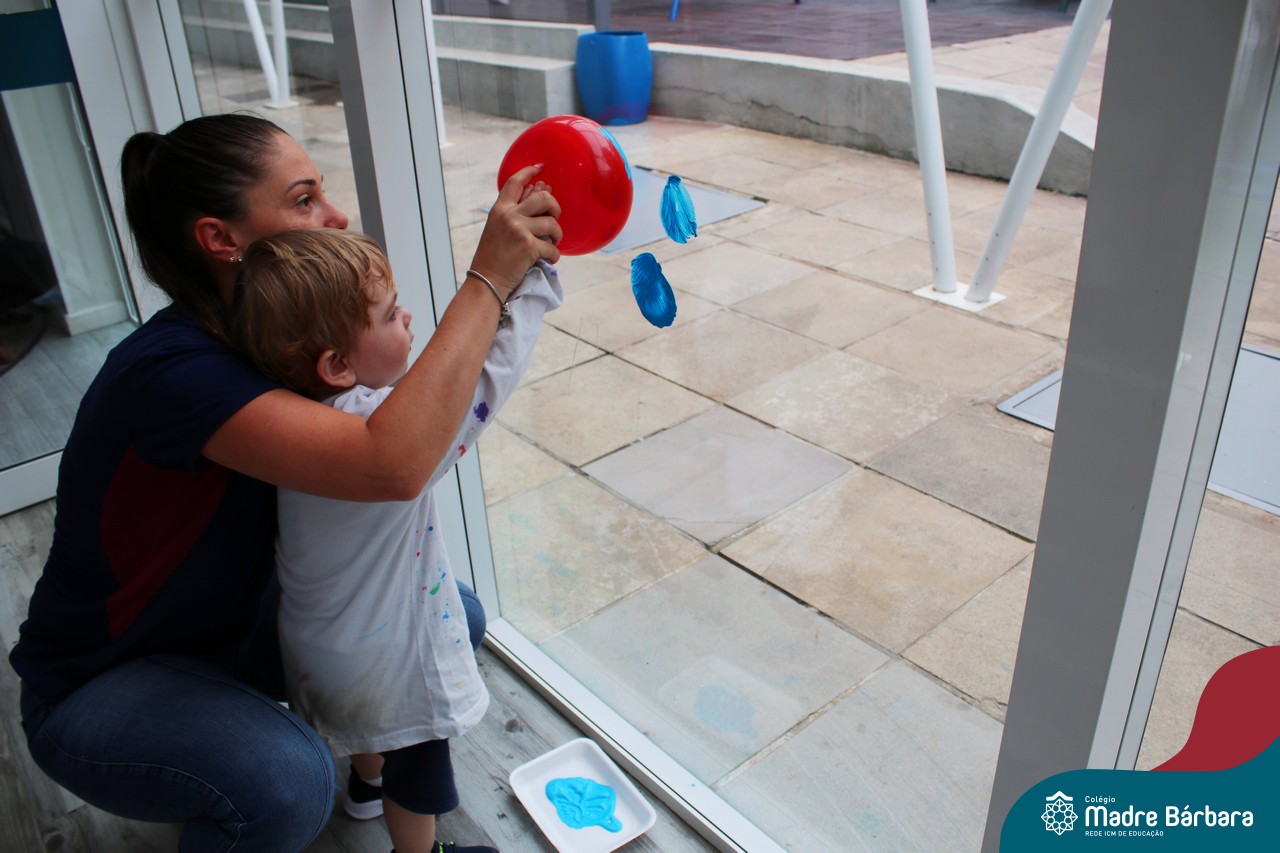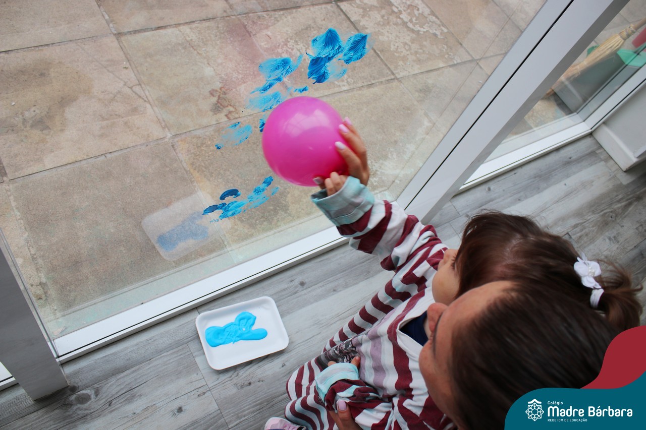 Envolvendo o tema de acolhida, a turma do nível 2A realizou nesta sexta-feira, 24.02, a pintura no vidro utilizando balões como recurso. Ouvindo a música superfantástico, as crianças divertiram-se enquanto deixavam suas marcas no vidro, espaço este que receberá o balão mágico confeccionado pelas famílias.
