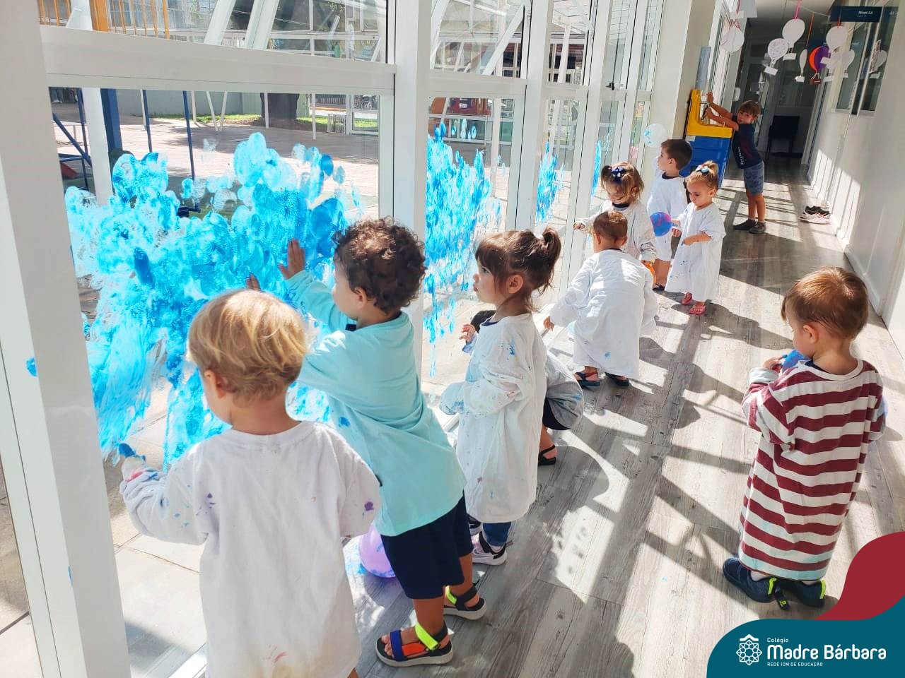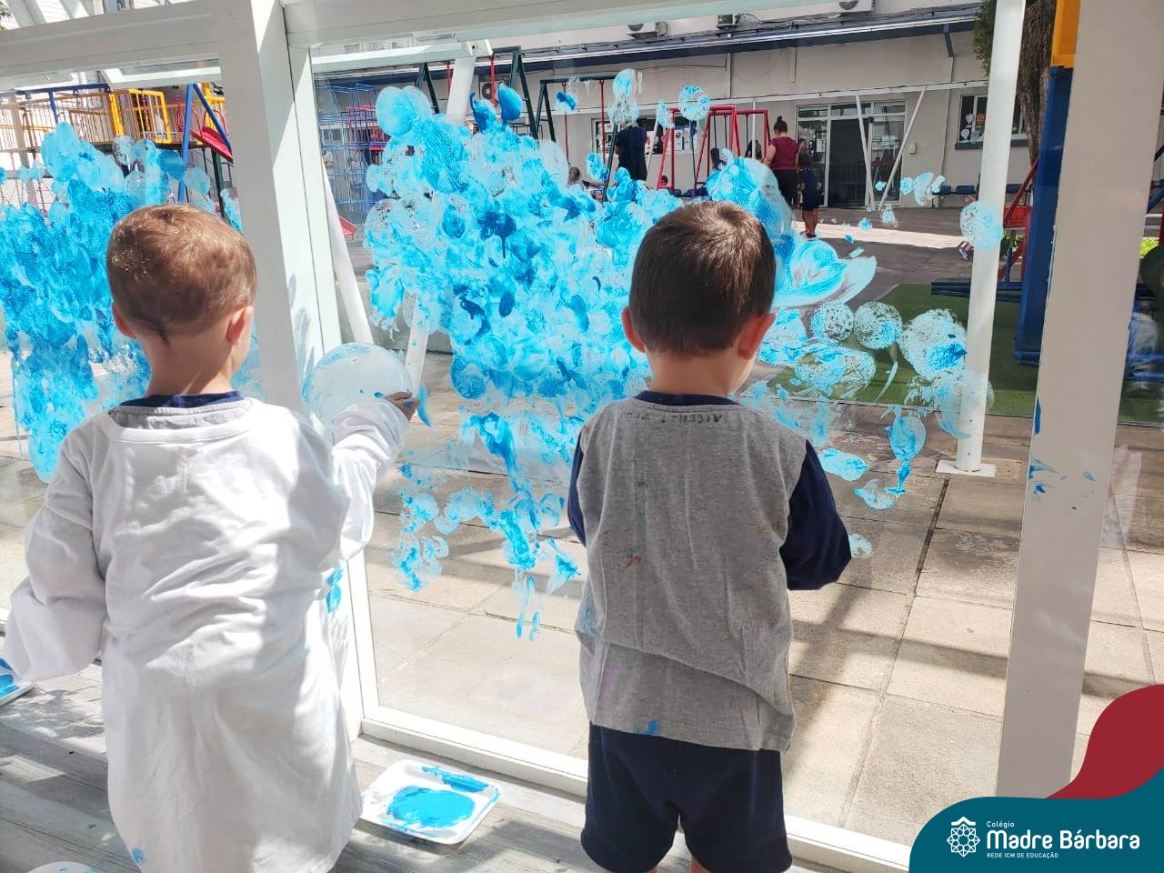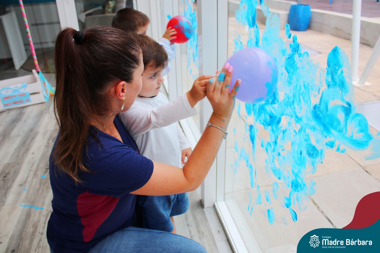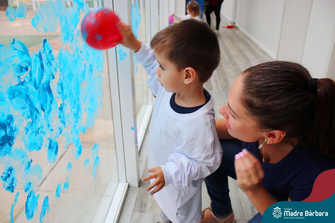Envolvendo o tema de acolhida, a turma do nível 2A realizou nesta sexta-feira, 24.02, a pintura no vidro utilizando balões como recurso. Ouvindo a música superfantástico, as crianças divertiram-se enquanto deixavam suas marcas no vidro, espaço este que receberá o balão mágico confeccionado pelas famílias.