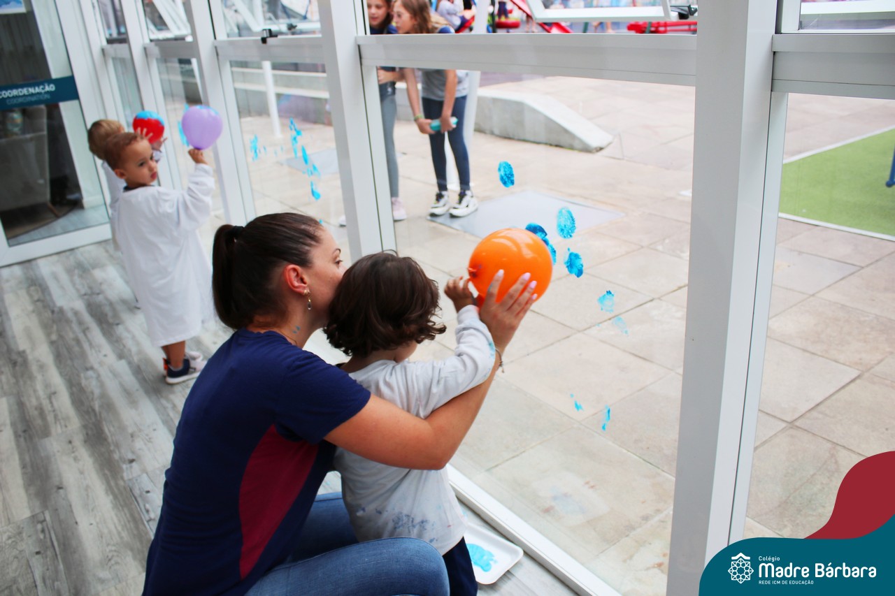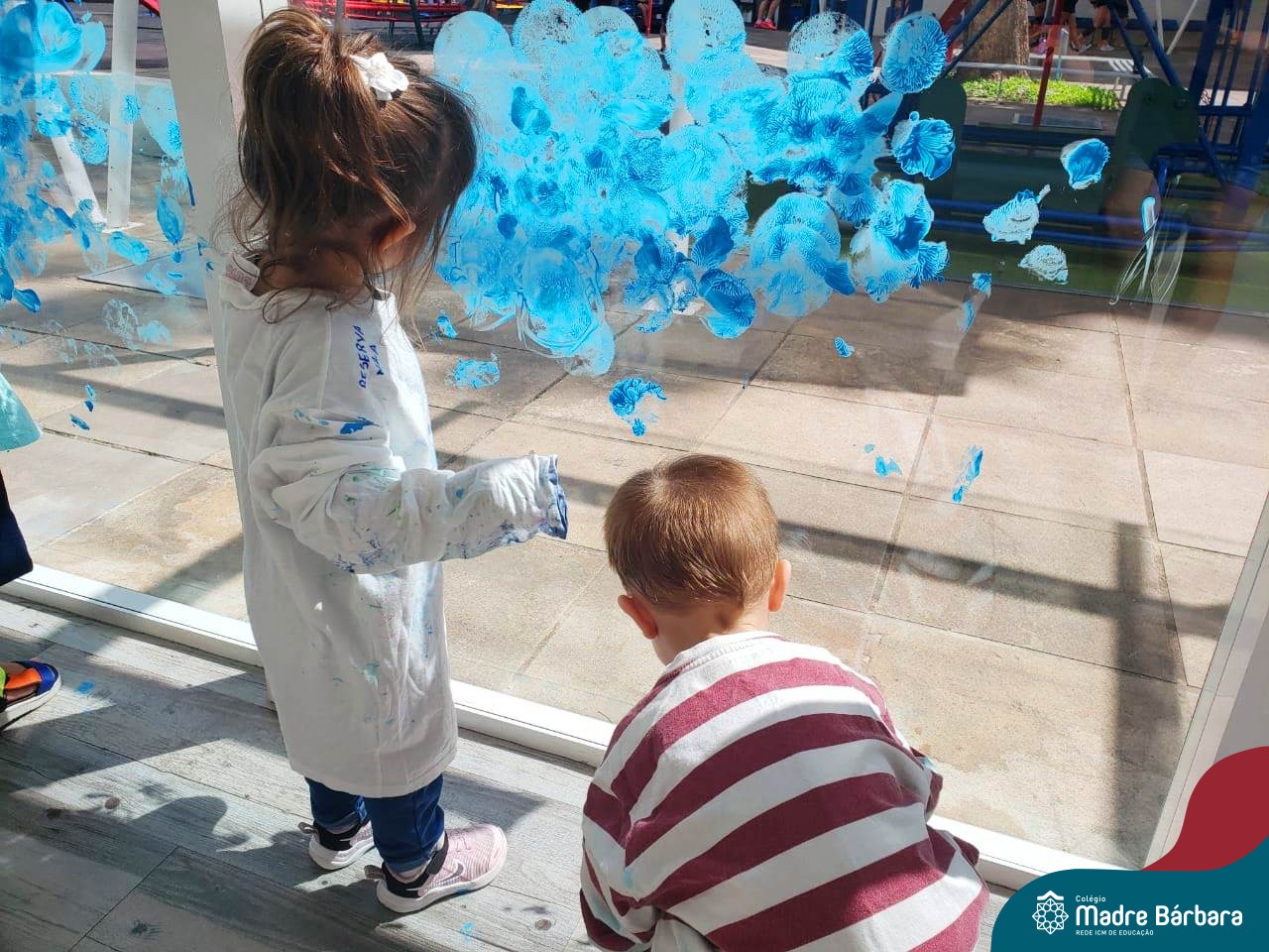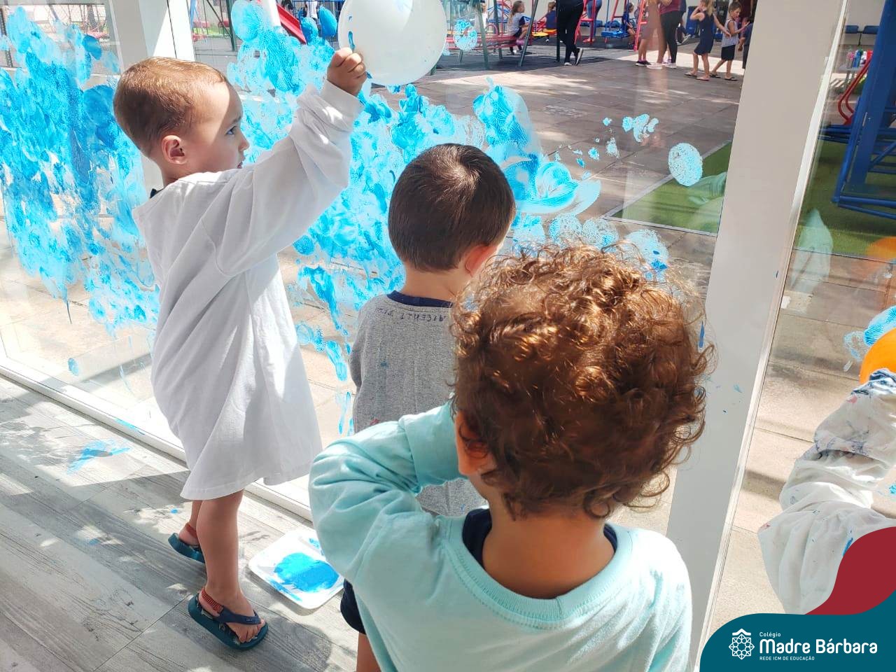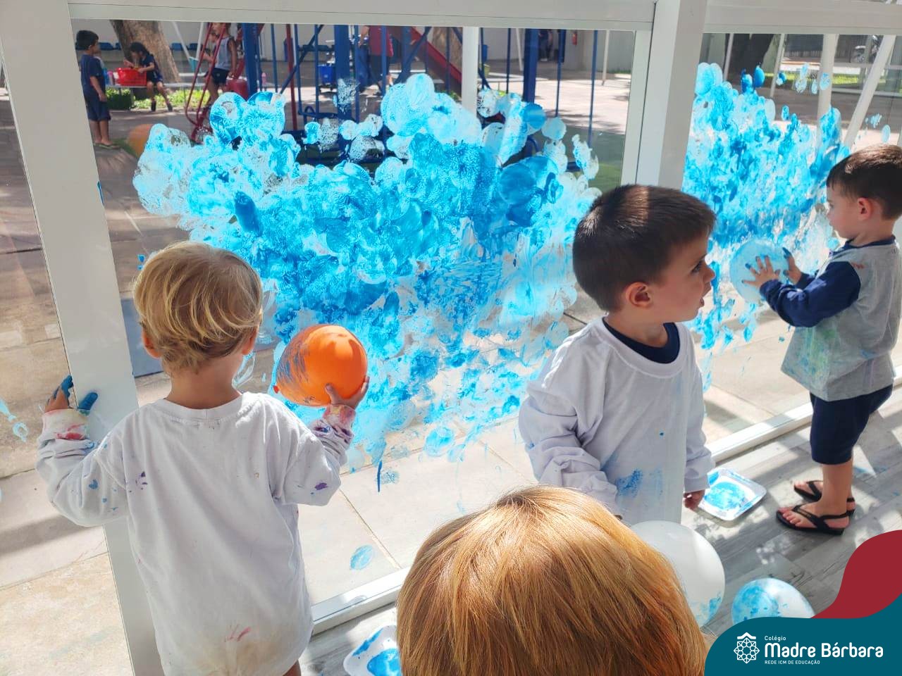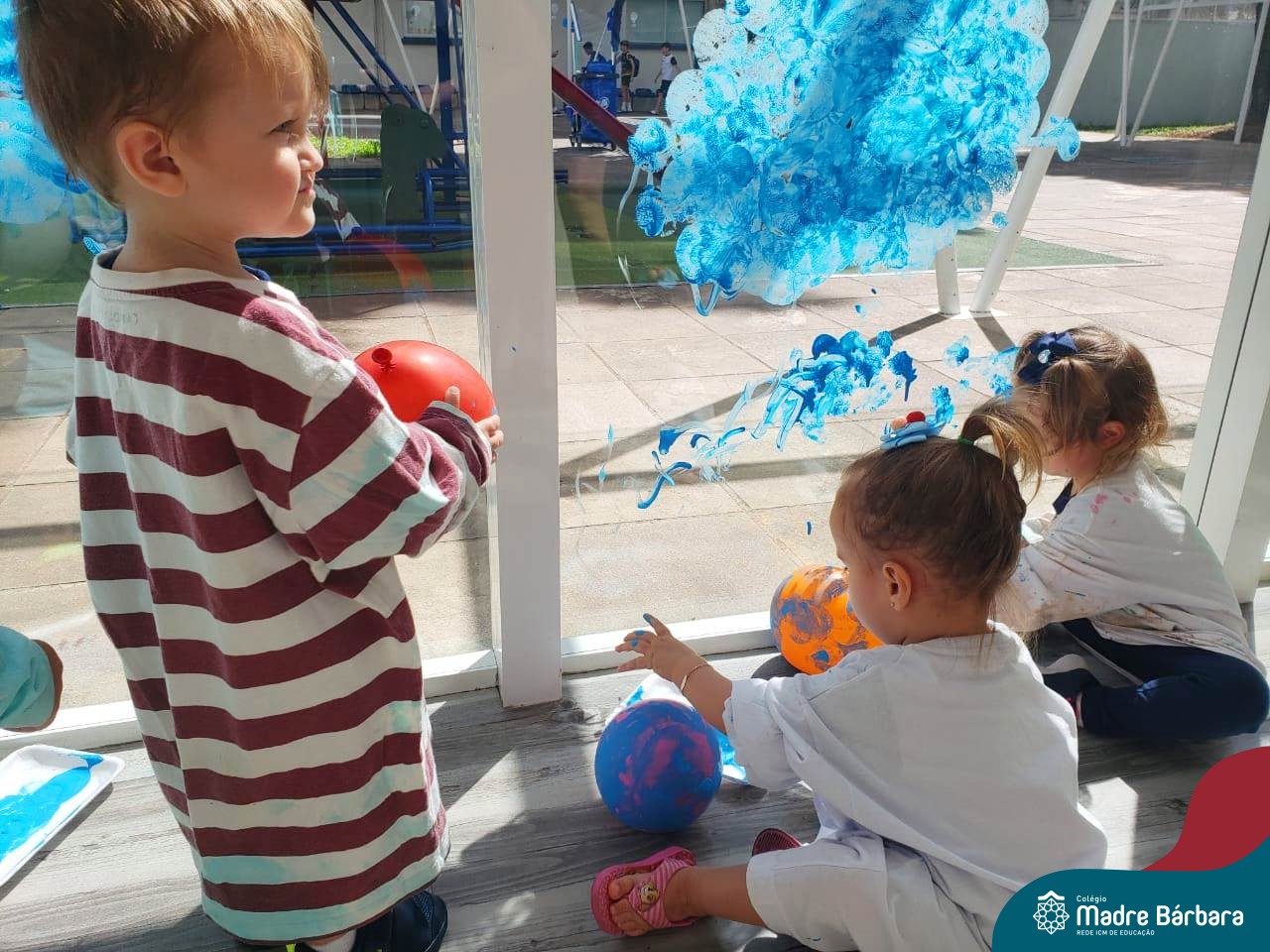 Envolvendo o tema de acolhida, a turma do nível 2A realizou nesta sexta-feira, 24.02, a pintura no vidro utilizando balões como recurso. Ouvindo a música superfantástico, as crianças divertiram-se enquanto deixavam suas marcas no vidro, espaço este que receberá o balão mágico confeccionado pelas famílias.