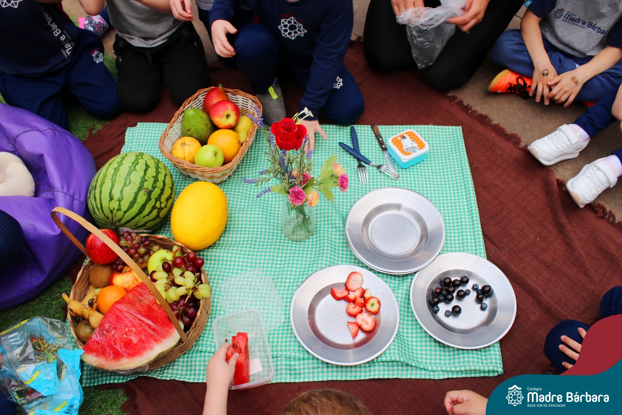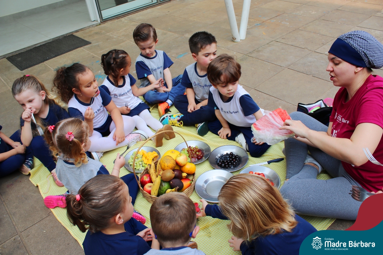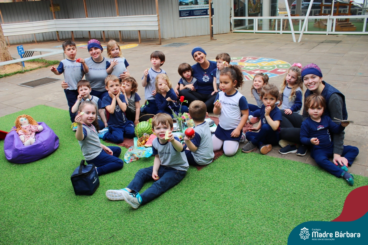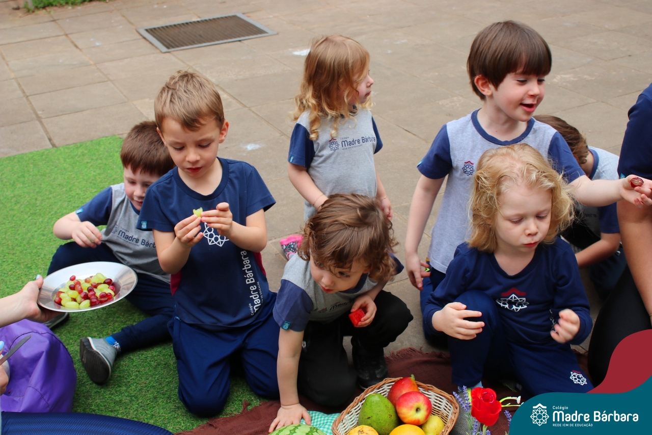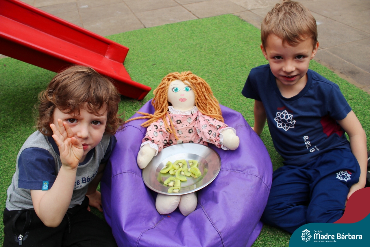 O Nível 3B, com o apoio das famílias, organizou um piquenique de frutas como parte do projeto de alimentação “Que gosto tem?”. Foi um momento repleto de sabores e delícias, onde as crianças se divertiram enquanto experimentavam diversas frutas. A personagem Bibi, da história “Bibi come de tudo”, também participou do piquenique, incentivando todos a provar novos alimentos de maneira leve e divertida. Diariamente, Bibi inspira a explorar uma alimentação variada e saudável, tornando essa experiência ainda mais significativa para as crianças.