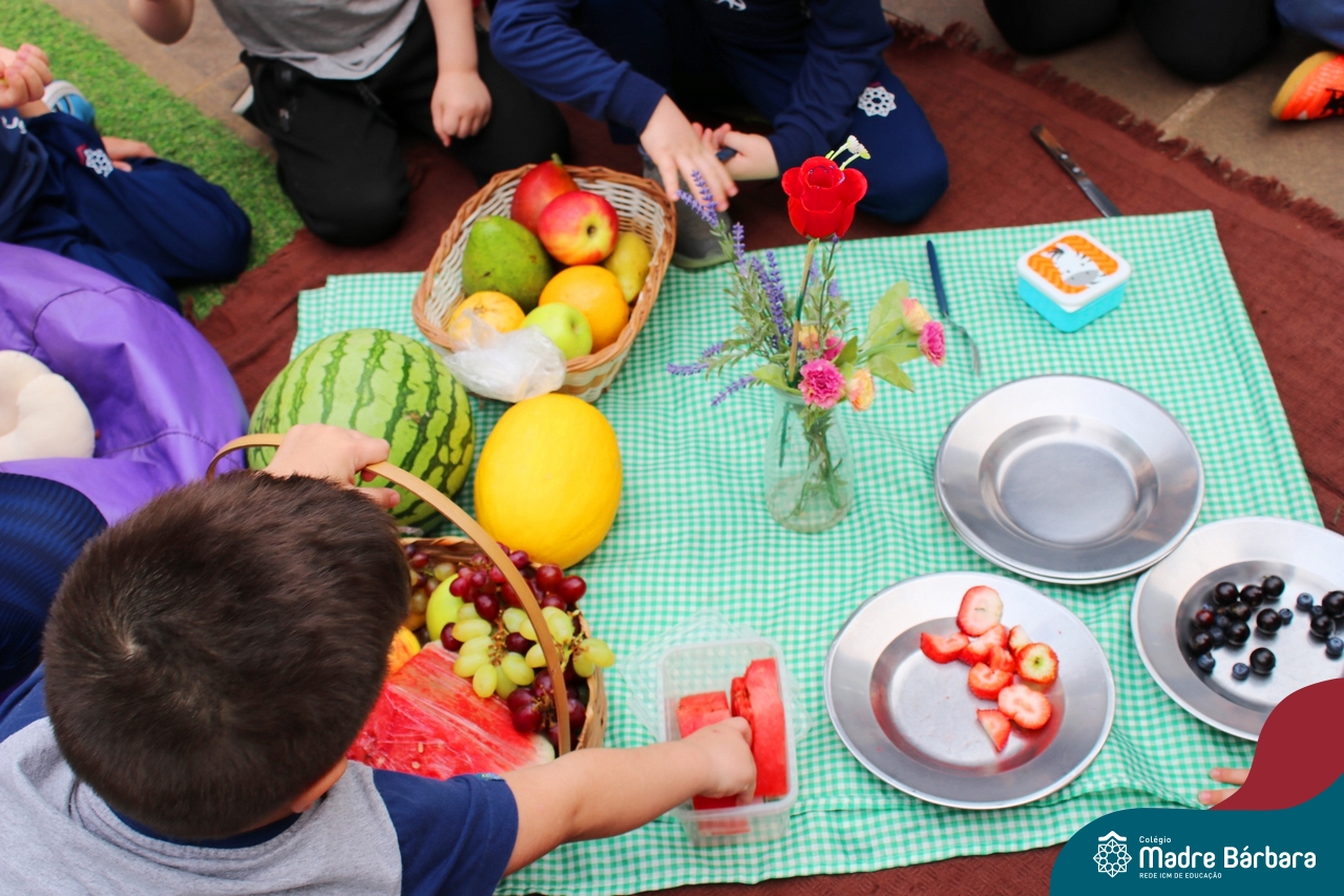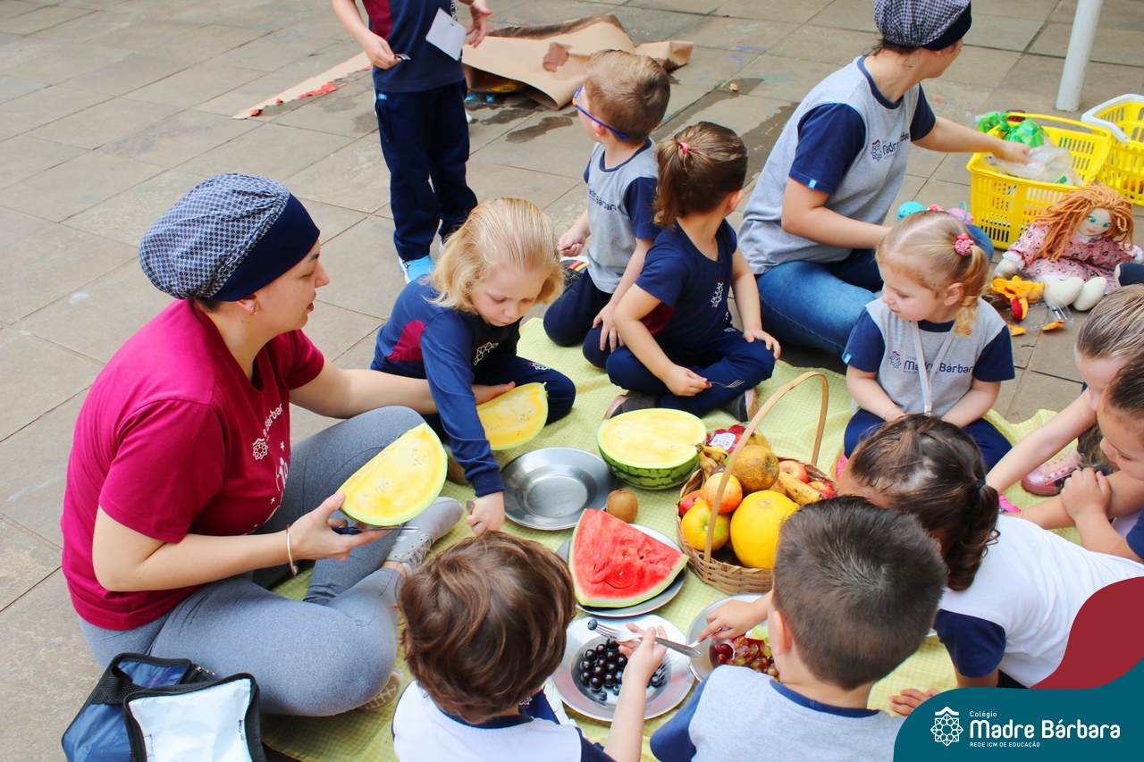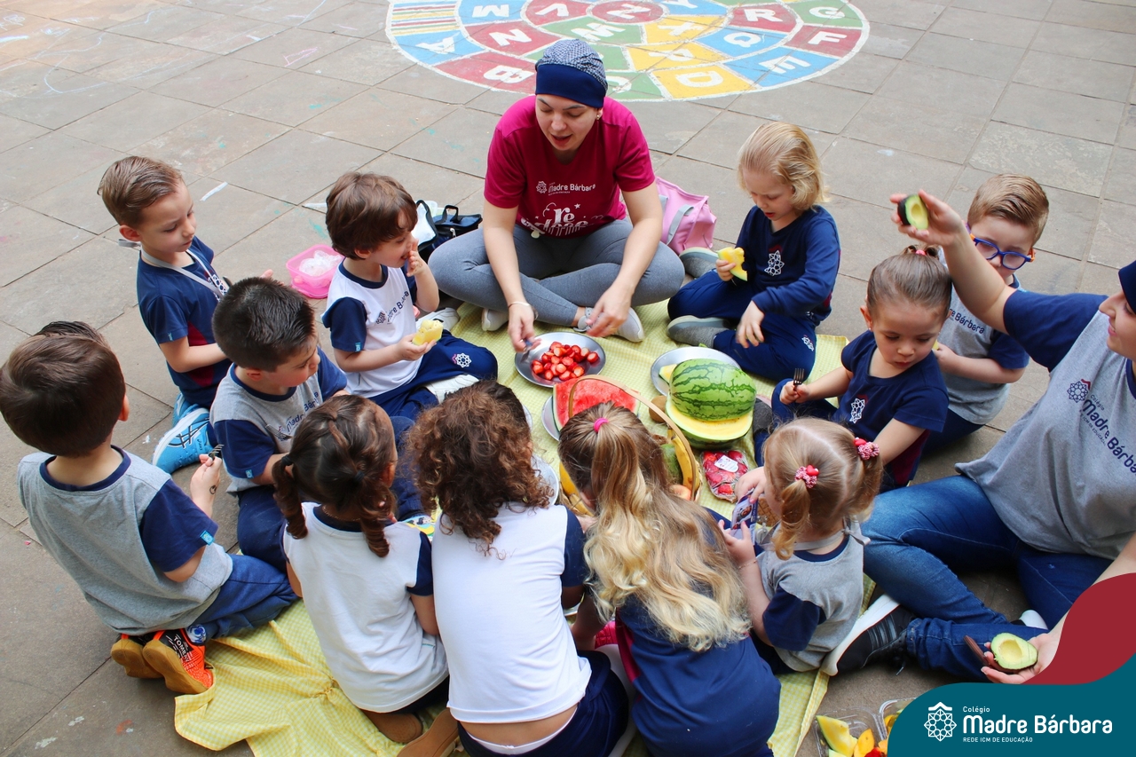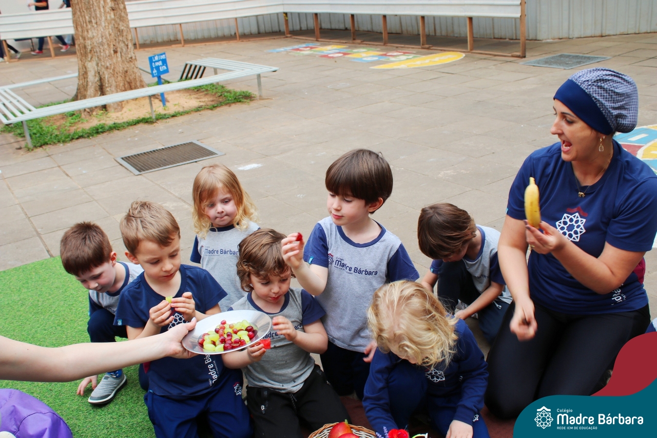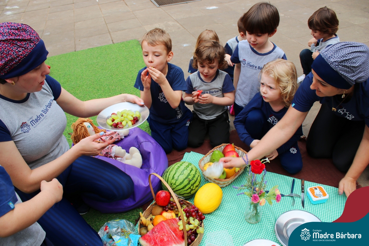 O Nível 3B, com o apoio das famílias, organizou um piquenique de frutas como parte do projeto de alimentação “Que gosto tem?”. Foi um momento repleto de sabores e delícias, onde as crianças se divertiram enquanto experimentavam diversas frutas. A personagem Bibi, da história “Bibi come de tudo”, também participou do piquenique, incentivando todos a provar novos alimentos de maneira leve e divertida. Diariamente, Bibi inspira a explorar uma alimentação variada e saudável, tornando essa experiência ainda mais significativa para as crianças.