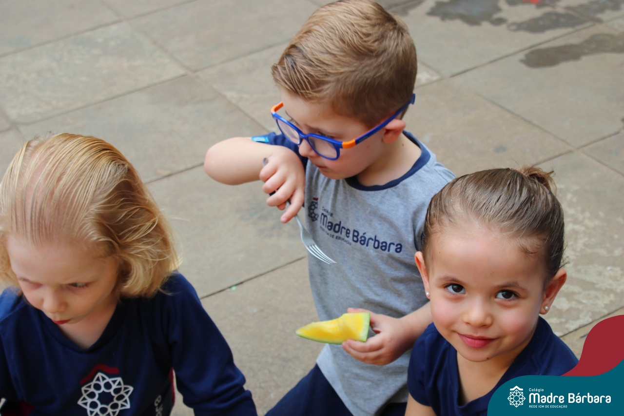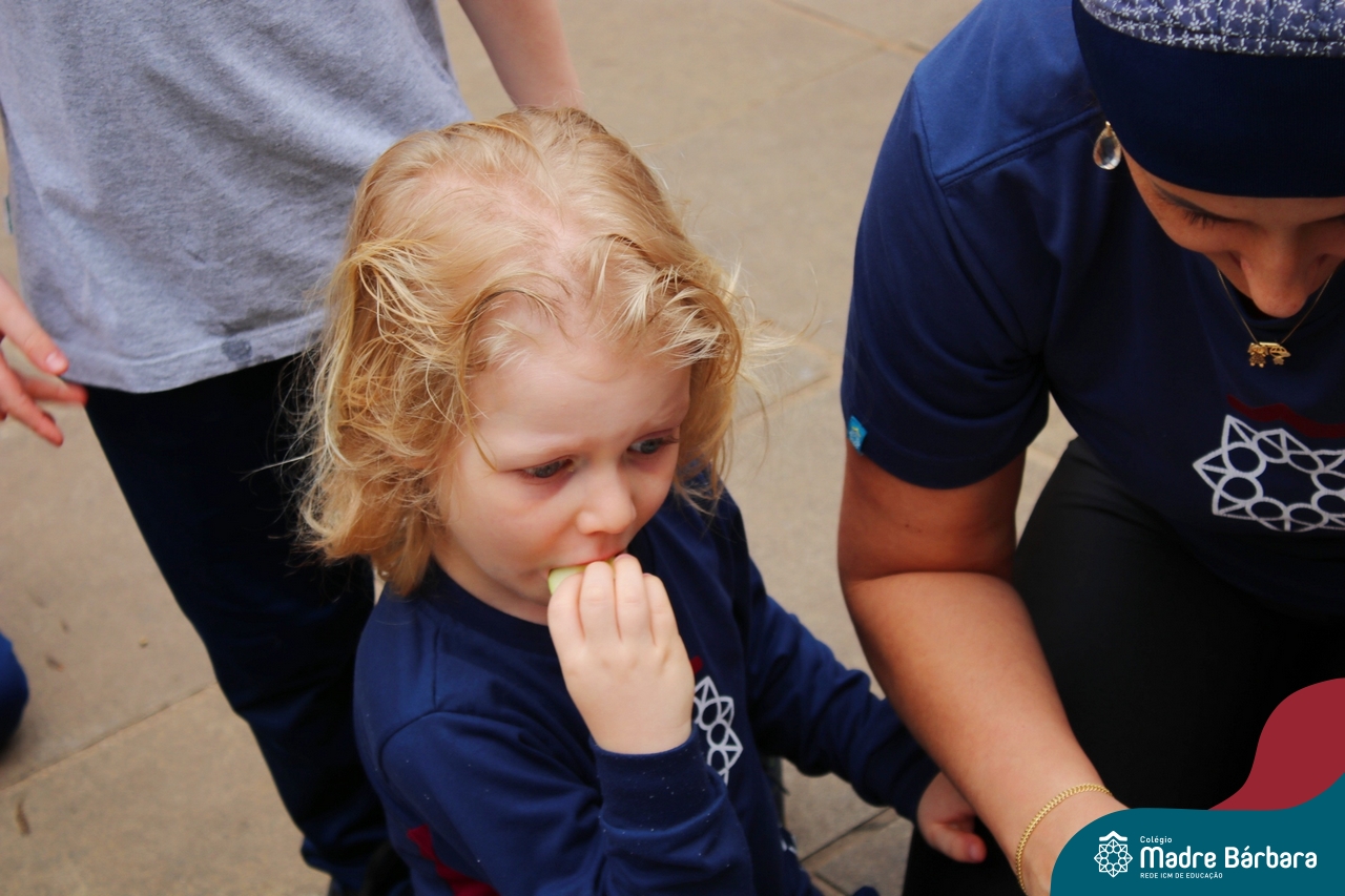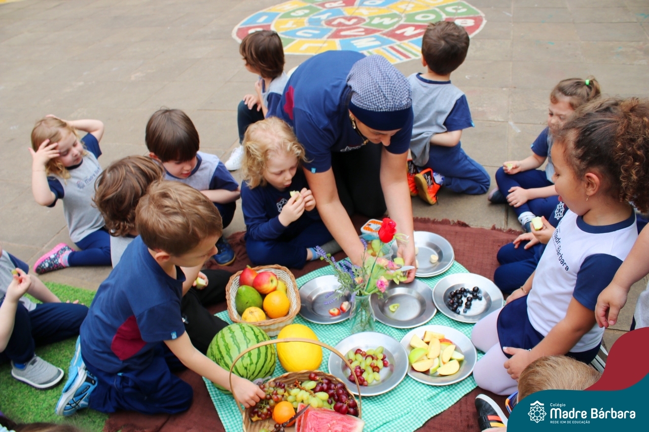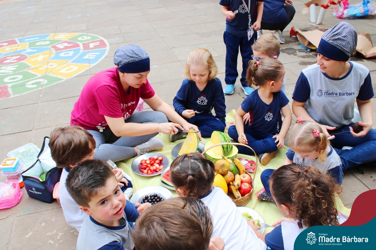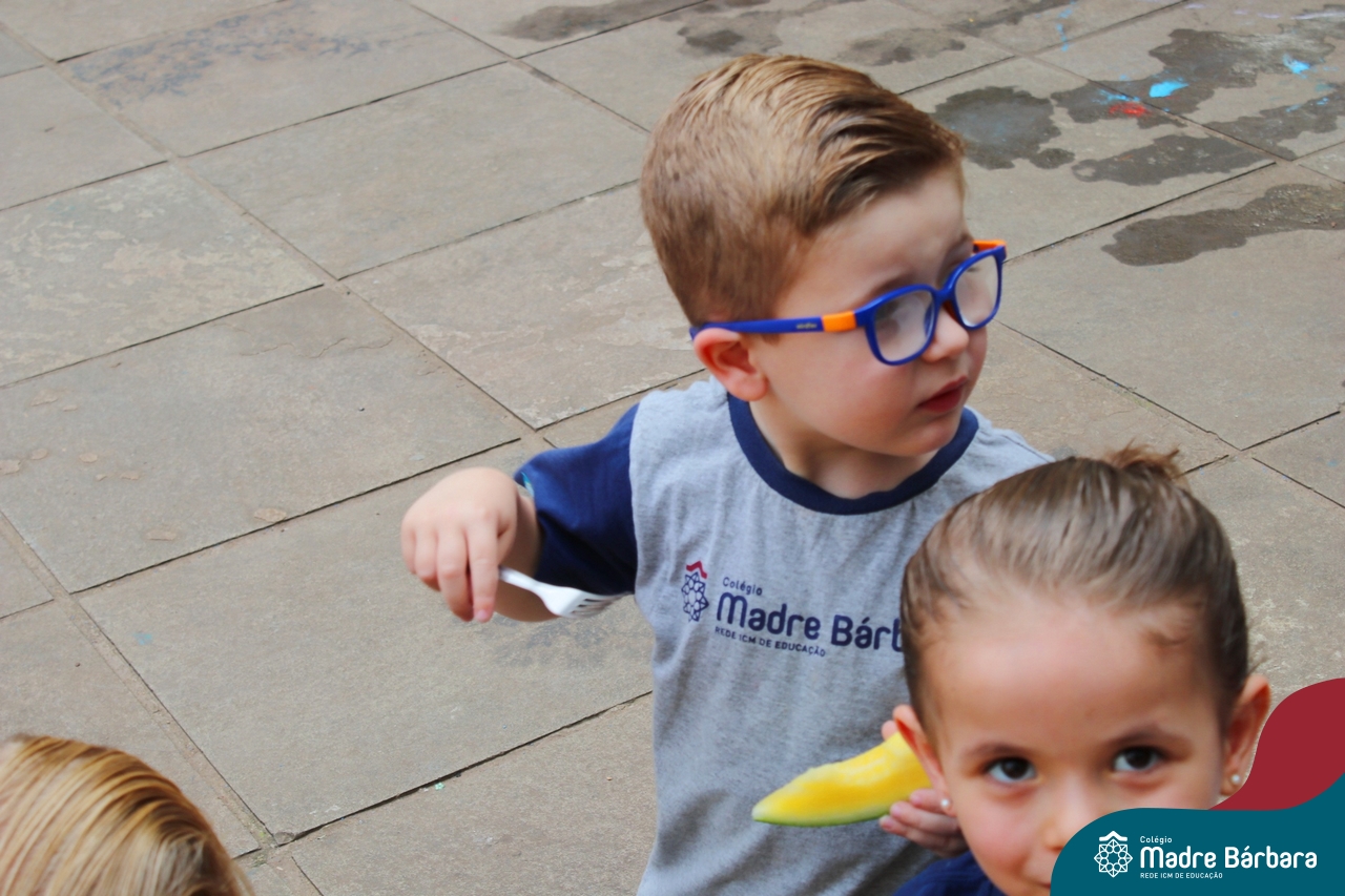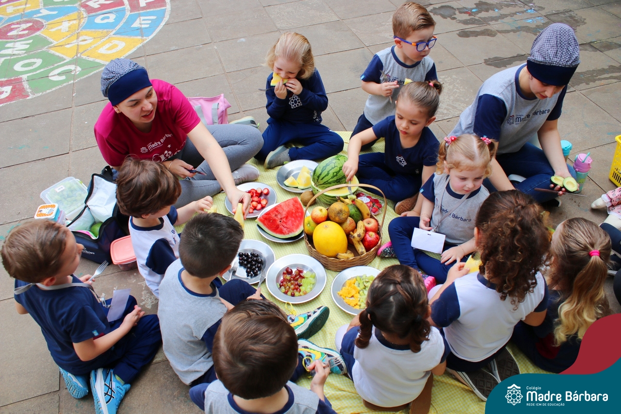 O Nível 3B, com o apoio das famílias, organizou um piquenique de frutas como parte do projeto de alimentação “Que gosto tem?”. Foi um momento repleto de sabores e delícias, onde as crianças se divertiram enquanto experimentavam diversas frutas. A personagem Bibi, da história “Bibi come de tudo”, também participou do piquenique, incentivando todos a provar novos alimentos de maneira leve e divertida. Diariamente, Bibi inspira a explorar uma alimentação variada e saudável, tornando essa experiência ainda mais significativa para as crianças.