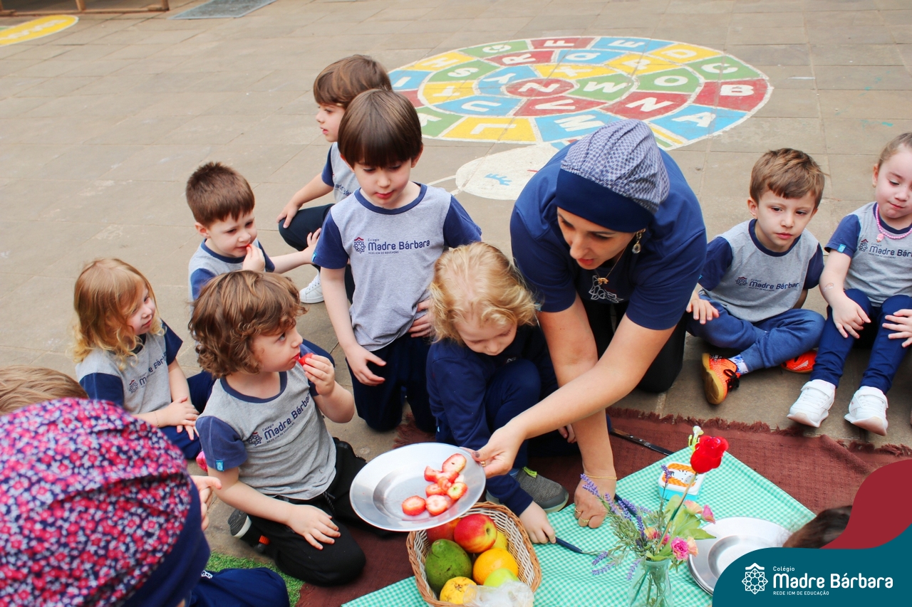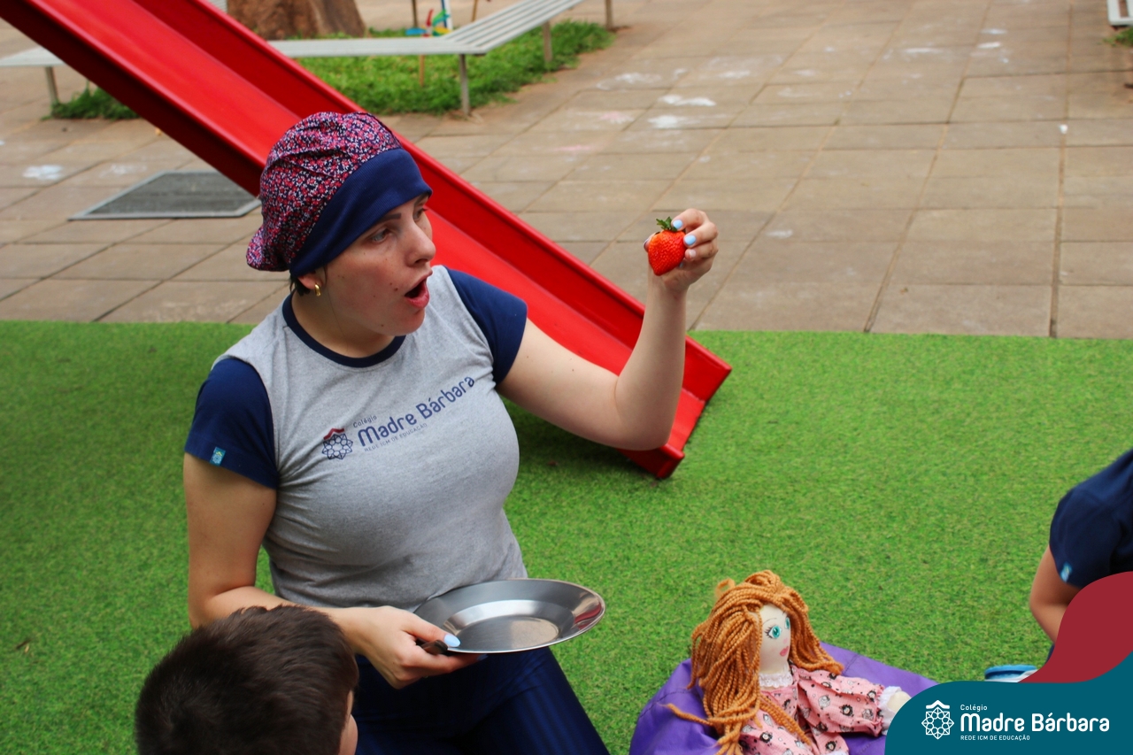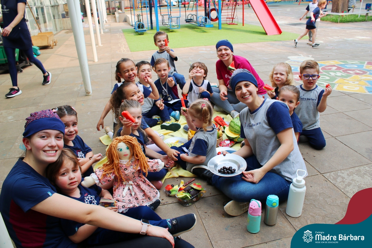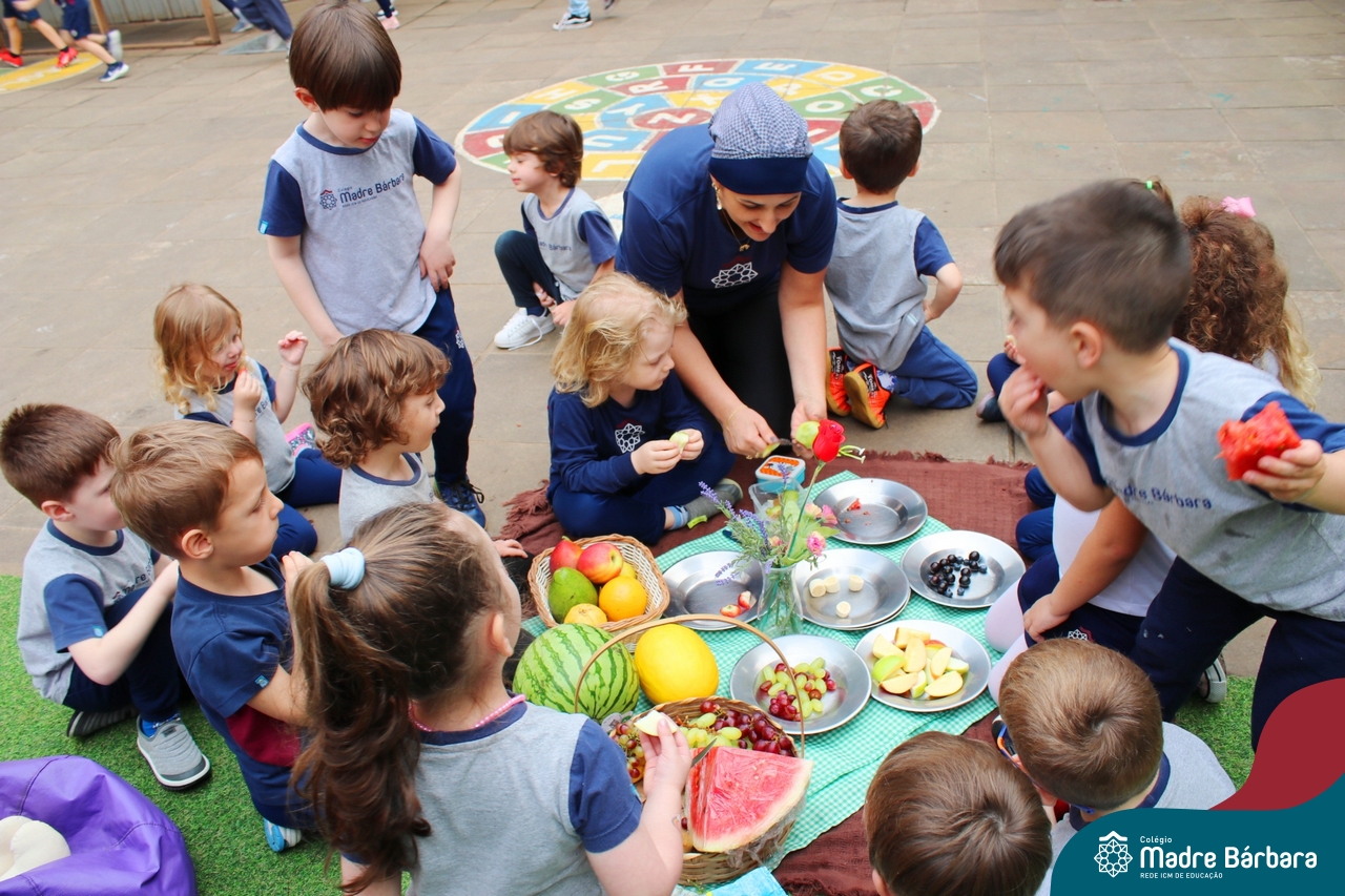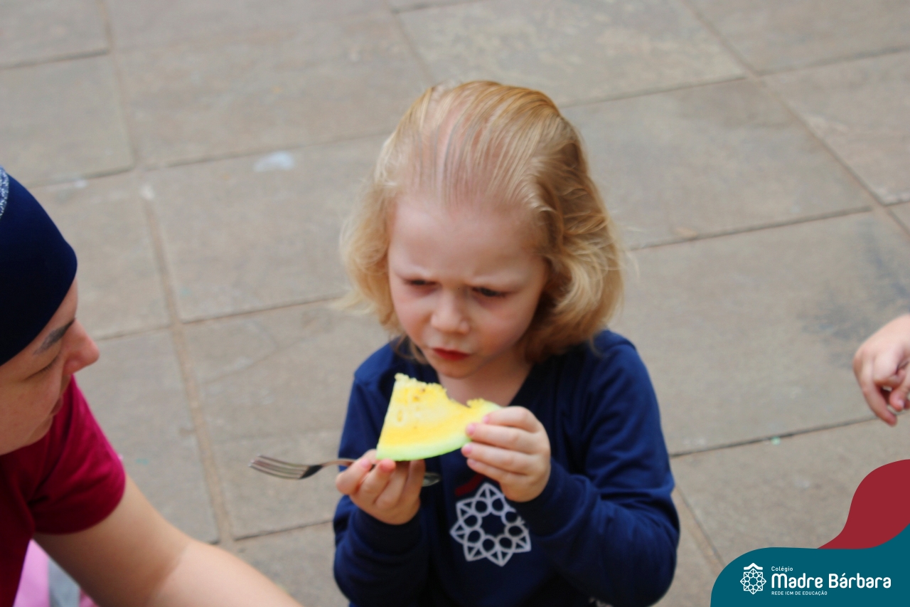 O Nível 3B, com o apoio das famílias, organizou um piquenique de frutas como parte do projeto de alimentação “Que gosto tem?”. Foi um momento repleto de sabores e delícias, onde as crianças se divertiram enquanto experimentavam diversas frutas. A personagem Bibi, da história “Bibi come de tudo”, também participou do piquenique, incentivando todos a provar novos alimentos de maneira leve e divertida. Diariamente, Bibi inspira a explorar uma alimentação variada e saudável, tornando essa experiência ainda mais significativa para as crianças.