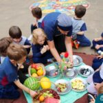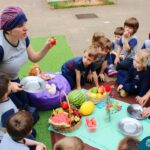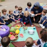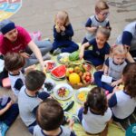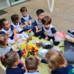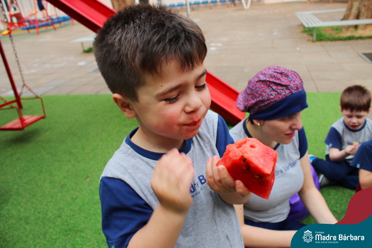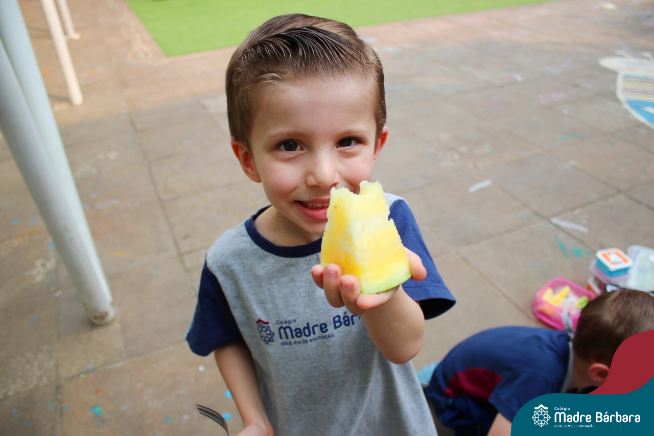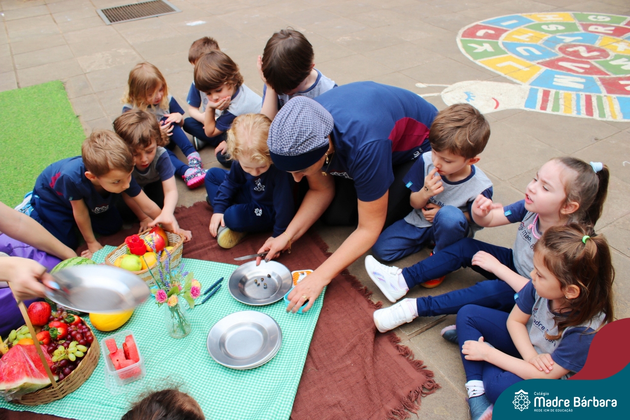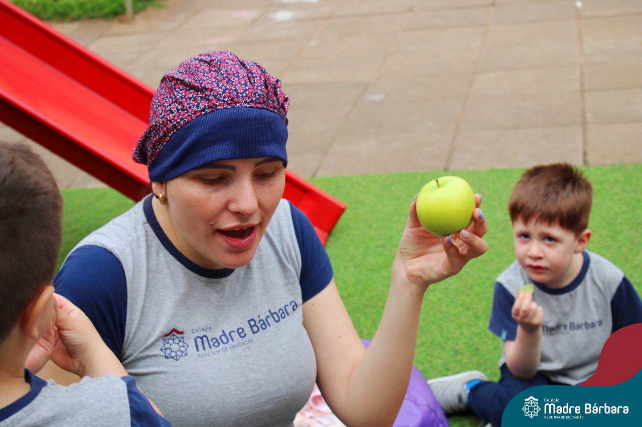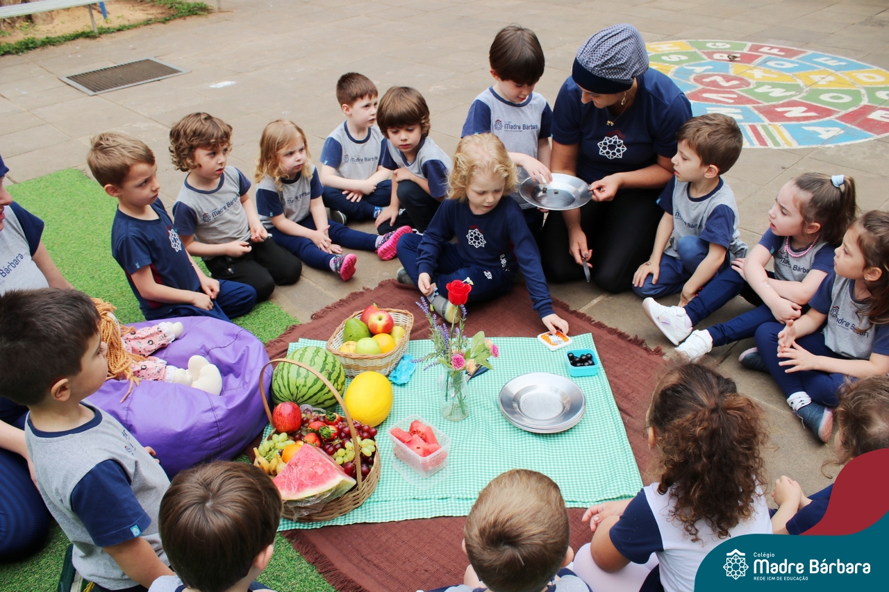 O Nível 3B, com o apoio das famílias, organizou um piquenique de frutas como parte do projeto de alimentação “Que gosto tem?”. Foi um momento repleto de sabores e delícias, onde as crianças se divertiram enquanto experimentavam diversas frutas. A personagem Bibi, da história “Bibi come de tudo”, também participou do piquenique, incentivando todos a provar novos alimentos de maneira leve e divertida. Diariamente, Bibi inspira a explorar uma alimentação variada e saudável, tornando essa experiência ainda mais significativa para as crianças.