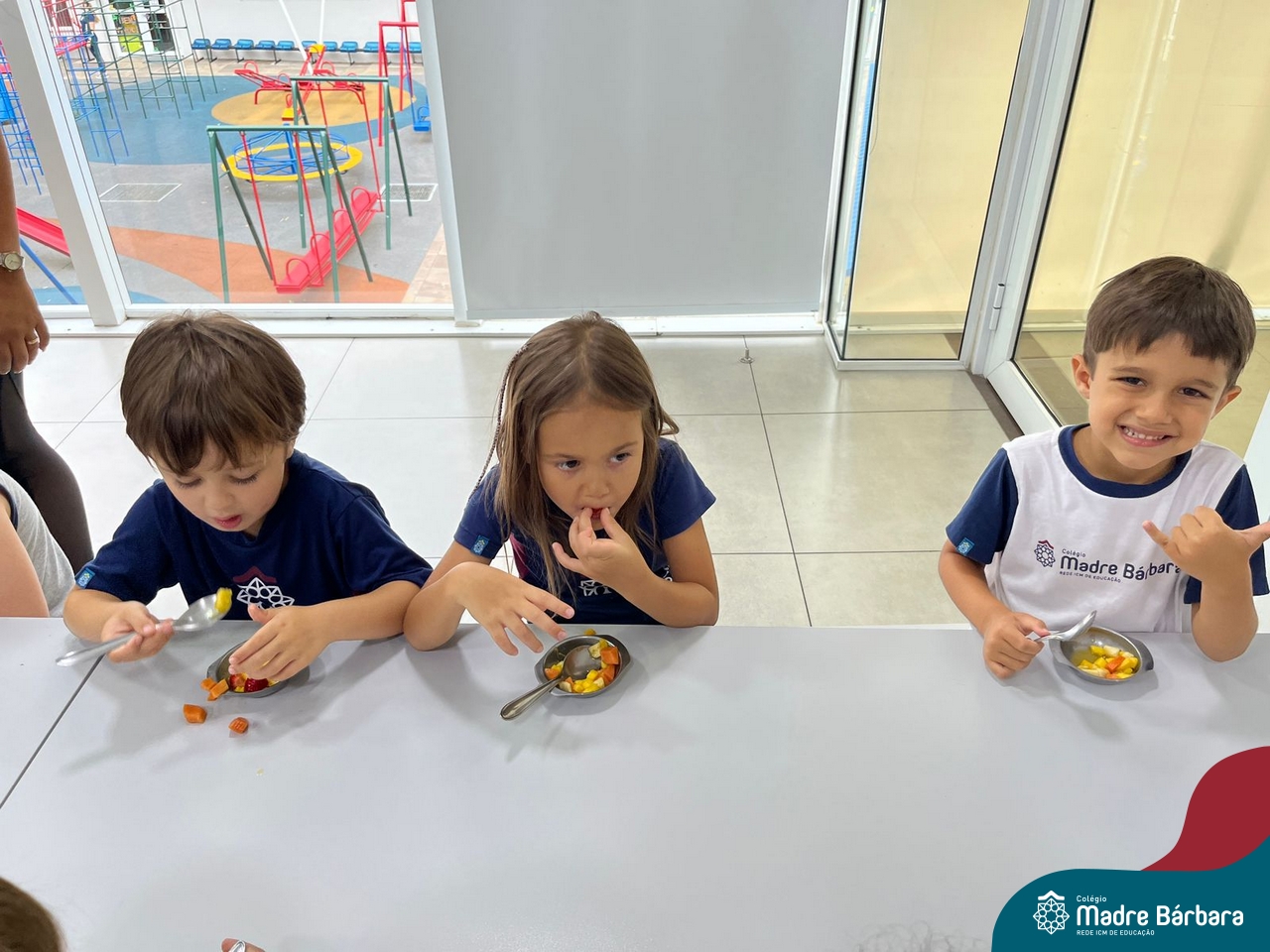Nesta quinta-feira (06.02) nossa galerinha da Educação Infantil pode brincar muito! Os Níveis 1, 2 e 3 estiveram com “Bandejas de Experimentação” realizando vivências incríveis com suas mãos! Já os Níveis 4 e 5 curtiram momentos de “Culinária de Verão” com alimentos que combinam com a temporada. Confira um pouco destes momentos encantadores: