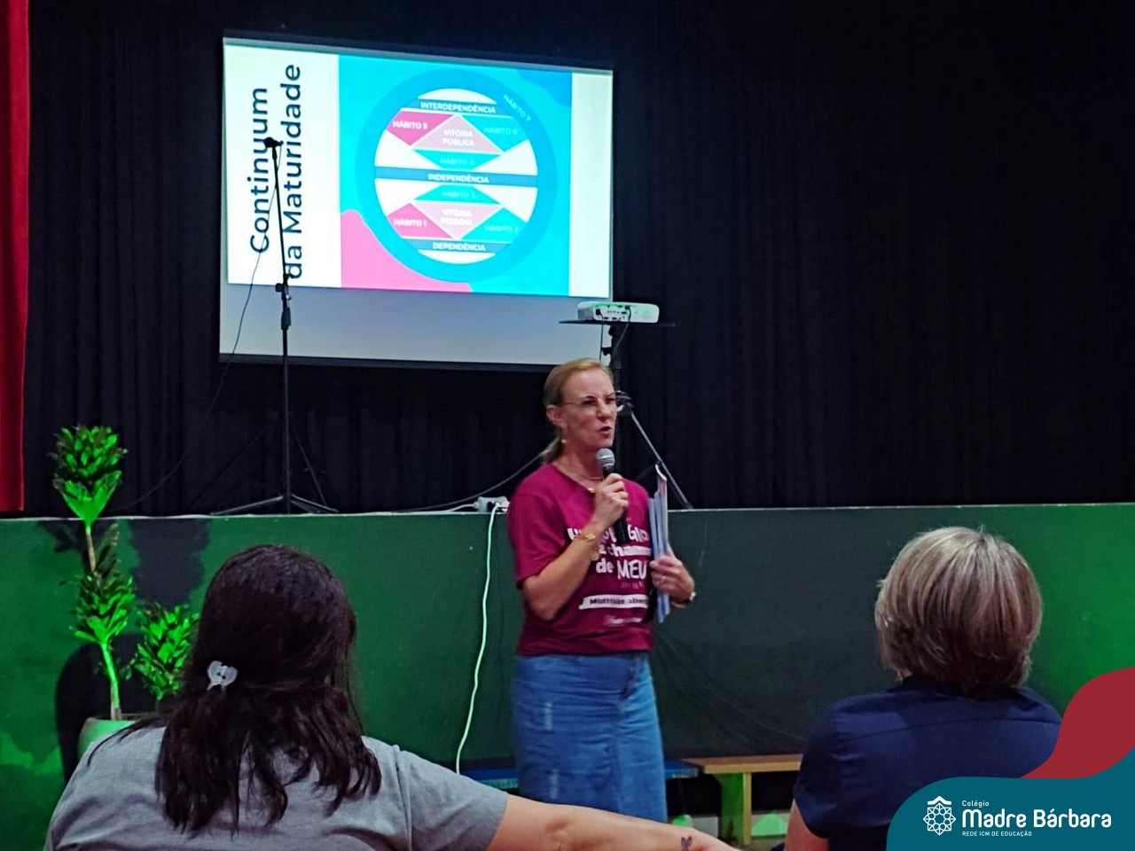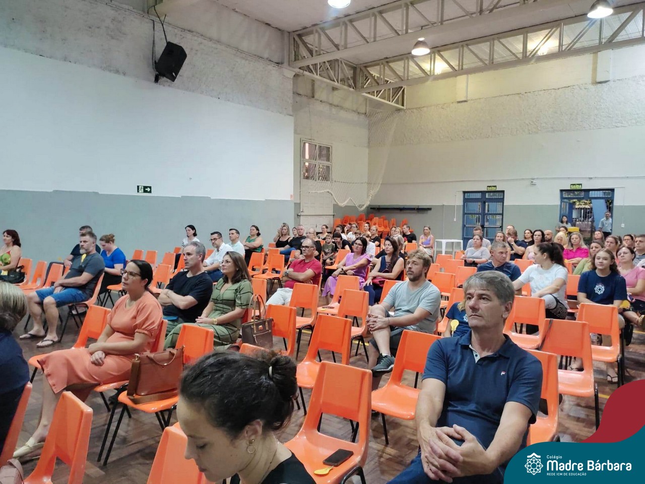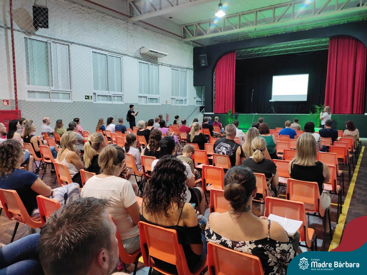 Na noite de quinta-feira (08) a coordenação pedagógica dos Anos Finais e Ensino Médio abriu a temporada de Reuniões dos Responsáveis com as famílias dos 6ºs anos do Ensino Fundamental – Anos Finais. Para homenagear as mulheres por seu dia, no início da reunião o professor de português e redação, Bernardo, tocou uma canção. A coordenadora pedagógica, Justine Thomas, falou sobre o projeto pedagógico, sistemas de ensino, acessos as plataformas, informações importantes, metodologias, simulados e sistema de avaliação. A coordenadora de turma, professora Rosana Fagundes, falou sobre o Programa Líder em Mim e outros assuntos.