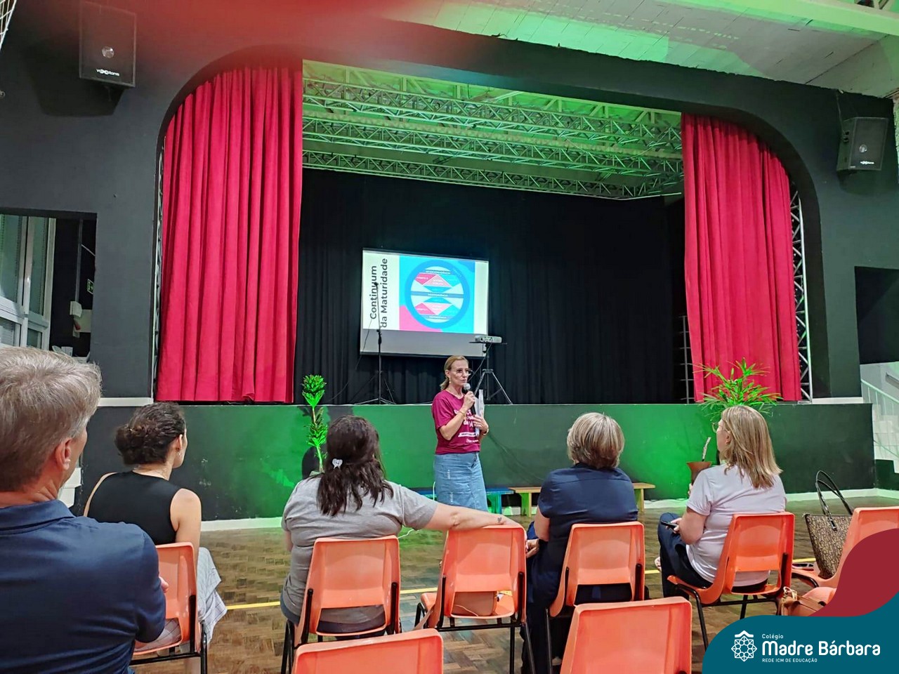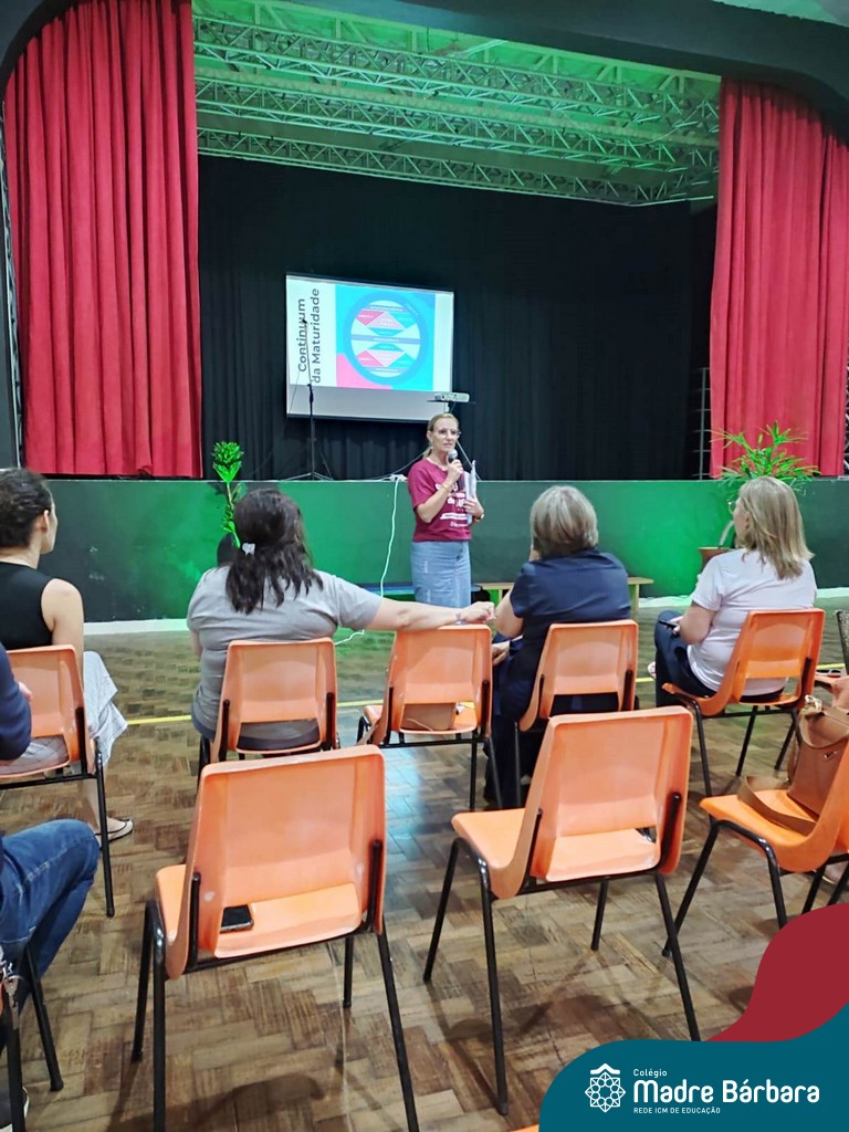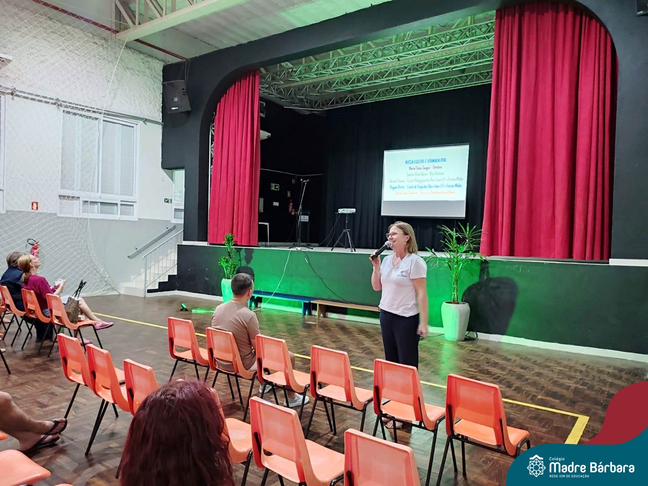 Na noite de quinta-feira (08) a coordenação pedagógica dos Anos Finais e Ensino Médio abriu a temporada de Reuniões dos Responsáveis com as famílias dos 6ºs anos do Ensino Fundamental – Anos Finais. Para homenagear as mulheres por seu dia, no início da reunião o professor de português e redação, Bernardo, tocou uma canção. A coordenadora pedagógica, Justine Thomas, falou sobre o projeto pedagógico, sistemas de ensino, acessos as plataformas, informações importantes, metodologias, simulados e sistema de avaliação. A coordenadora de turma, professora Rosana Fagundes, falou sobre o Programa Líder em Mim e outros assuntos.