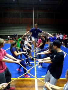 O objetivo da reunião foi oferecer essa vivência para que percebessem quão importante e necessário é o suporte que a família e os colegas dão no dia a dia. Os alunos entenderam que podem contar um com os outros. Para iniciar, fizeram uma ponte com uma corda os filhos passavam e quem dava o suporte ao segurar a mão e a corda eram os pais e os colegas.
