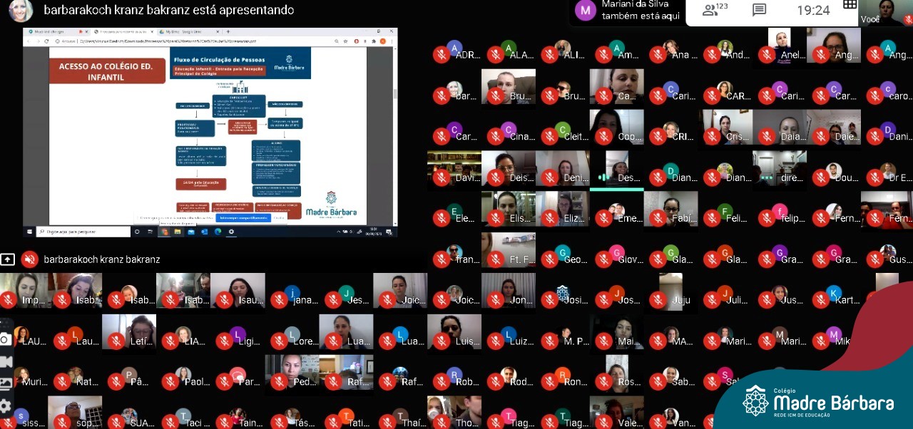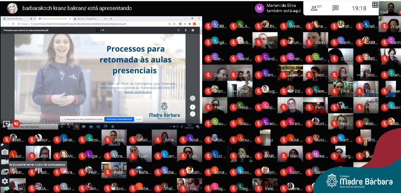 Mais de 120 pais e mães dos Níveis 1, 2 e 3 da Educação Infantil do Colégio Madre Bárbara – Rede ICM participaram da reunião online através da plataforma Google Meet nesta quarta-feira (09.09) sobre o Retorno às Atividades Presenciais. O encontro contou com a participação da coordenação pedagógica, direção e equipe do COE Local.