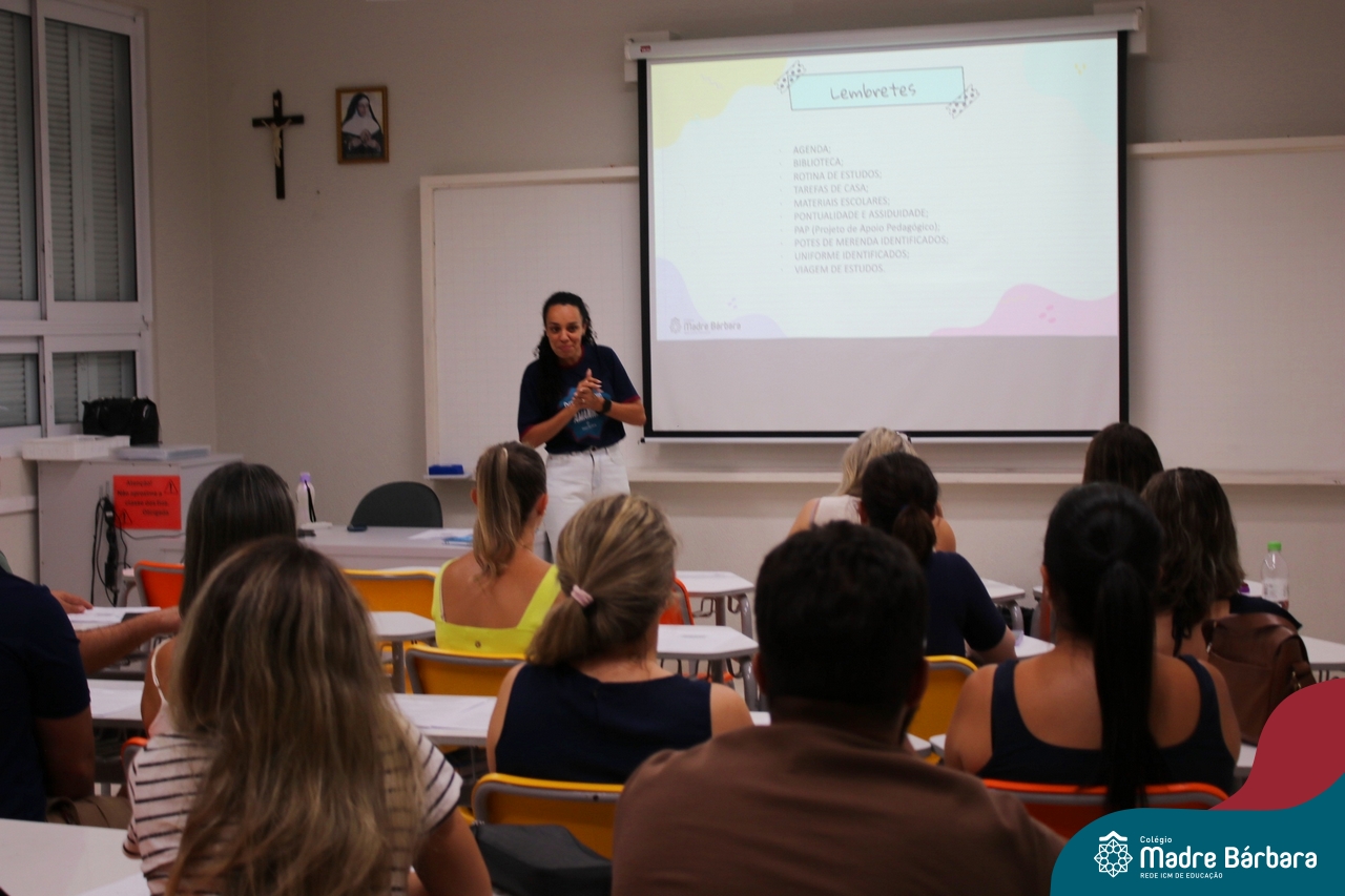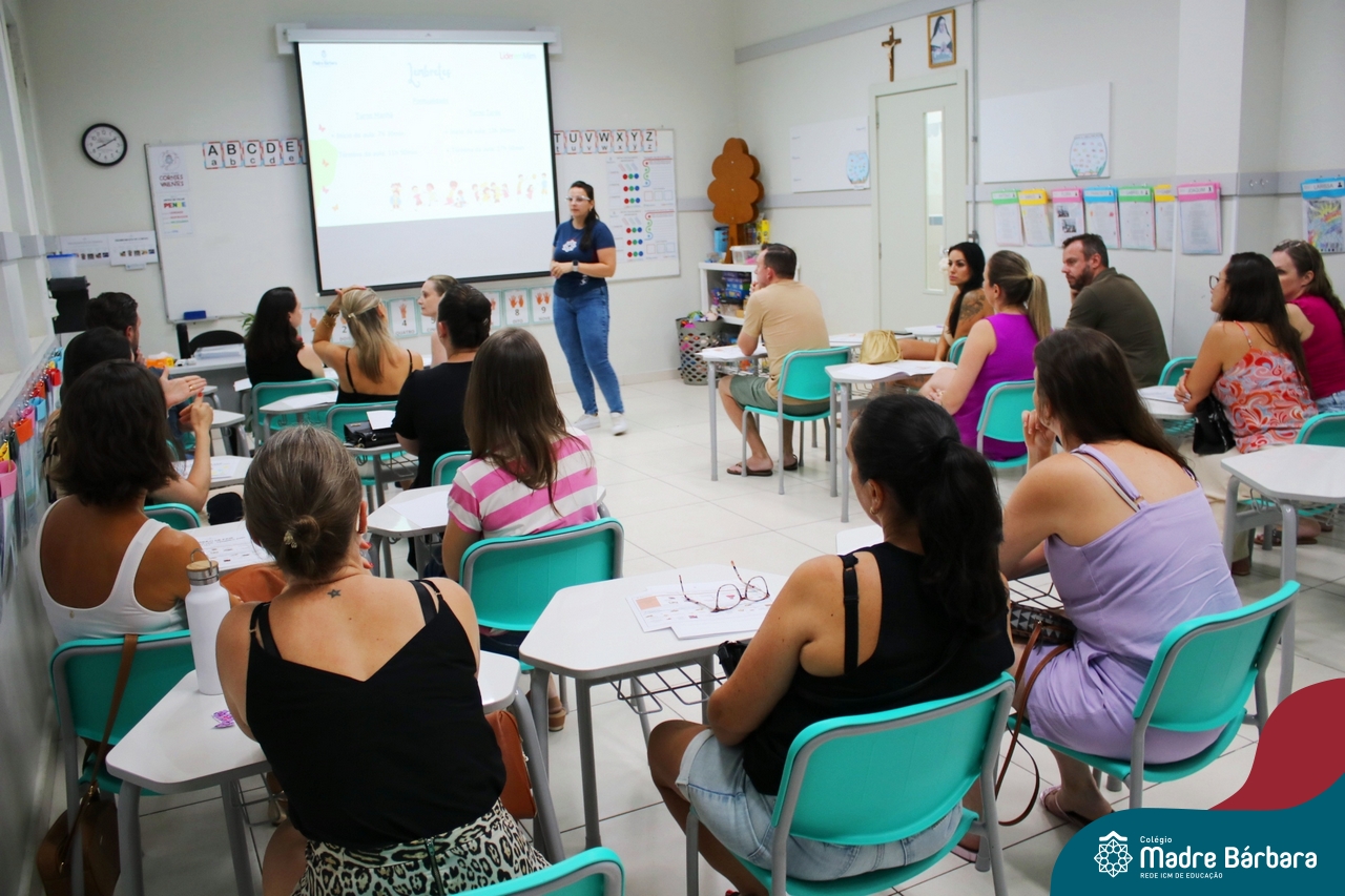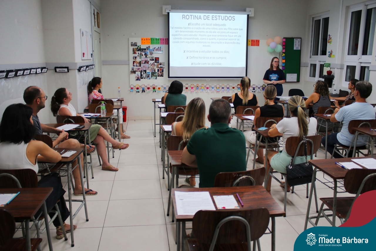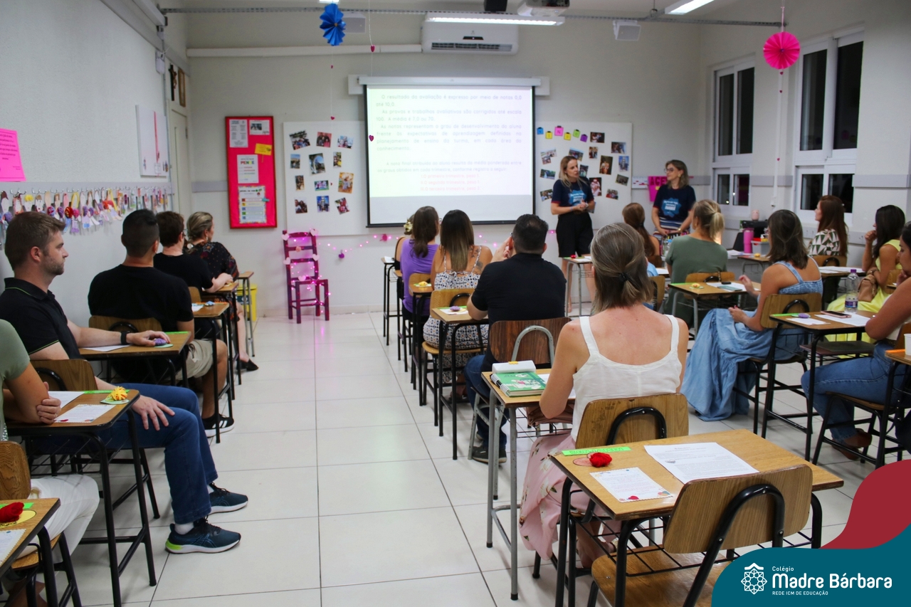Na noite de segunda-feira (24.02) os familiares do Ensino Fundamental – Anos Iniciais estiveram participando da Reunião dos Responsáveis no Colégio Madre Bárbara – Rede ICM. Cada professora esteve conversando e explicando para as famílias a programação para este ano, o conteúdo desenvolvido, os sistemas parceiros, livros, viagens de estudos, entre outros assuntos referentes ao ano escolar dos estudantes. A coordenação pedagógica esteve também nas turmas se apresentando e trazendo os professores das disciplinas especializadas para desejar boas-vindas. Agradecemos a presença e participação das famílias. Desejamos que seja um ano especial para os filhos e filhas de vocês!