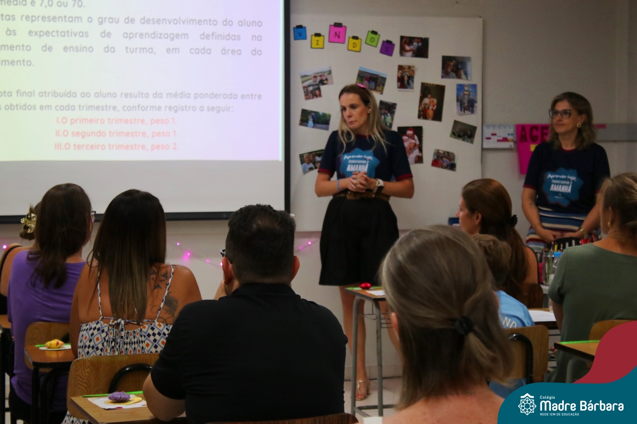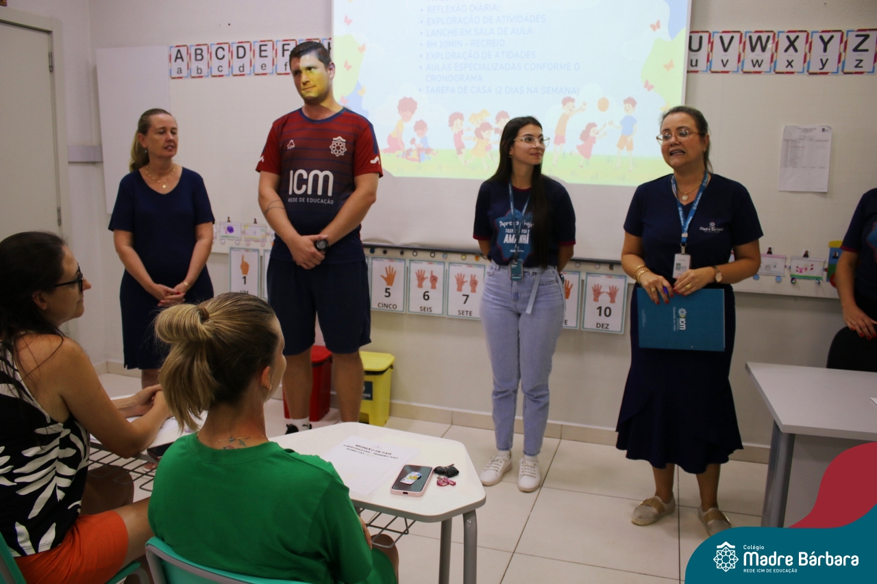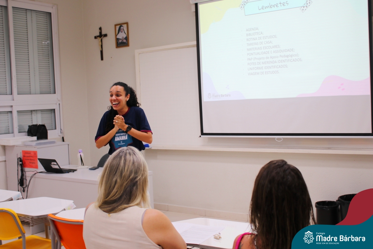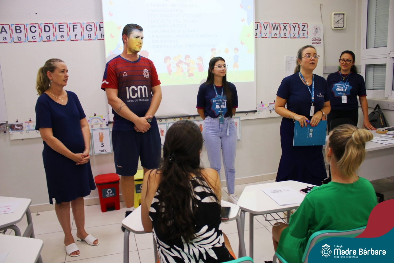Na noite de segunda-feira (24.02) os familiares do Ensino Fundamental – Anos Iniciais estiveram participando da Reunião dos Responsáveis no Colégio Madre Bárbara – Rede ICM. Cada professora esteve conversando e explicando para as famílias a programação para este ano, o conteúdo desenvolvido, os sistemas parceiros, livros, viagens de estudos, entre outros assuntos referentes ao ano escolar dos estudantes. A coordenação pedagógica esteve também nas turmas se apresentando e trazendo os professores das disciplinas especializadas para desejar boas-vindas. Agradecemos a presença e participação das famílias. Desejamos que seja um ano especial para os filhos e filhas de vocês!