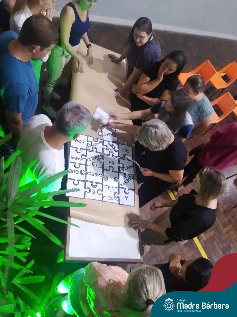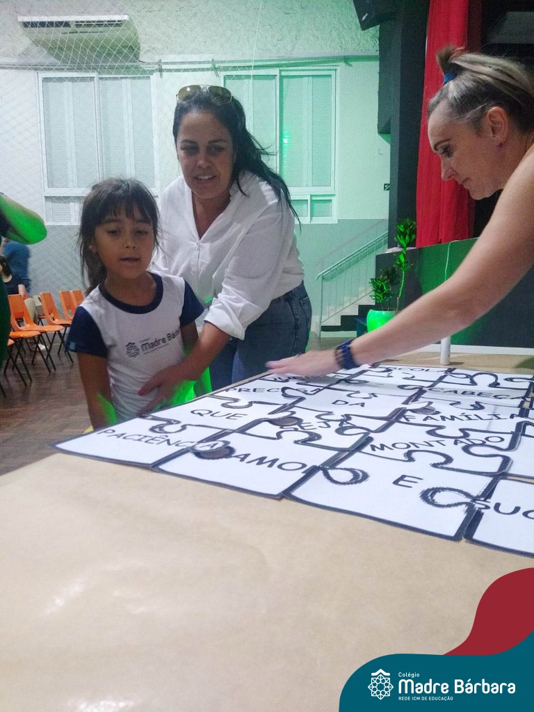 Na noite de terça-feira (07) a equipe do Turno Extracurricular do 1º ao 5º ano do Ensino Fundamental – Anos Iniciais do Colégio Madre Bárbara – Rede ICM organizou a Reunião de Responsáveis no salão de eventos da instituição. Após se apresentarem e falarem sobre o planejamento, o projeto pedagógico e a rotina, montaram um quebra-cabeça que precisa da família para que fique pronto, com paciência, amor e sucesso!