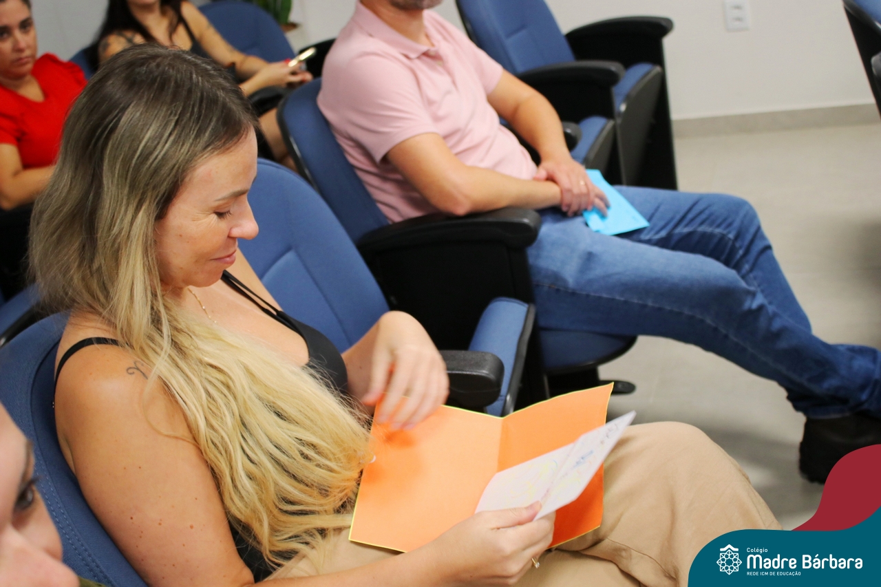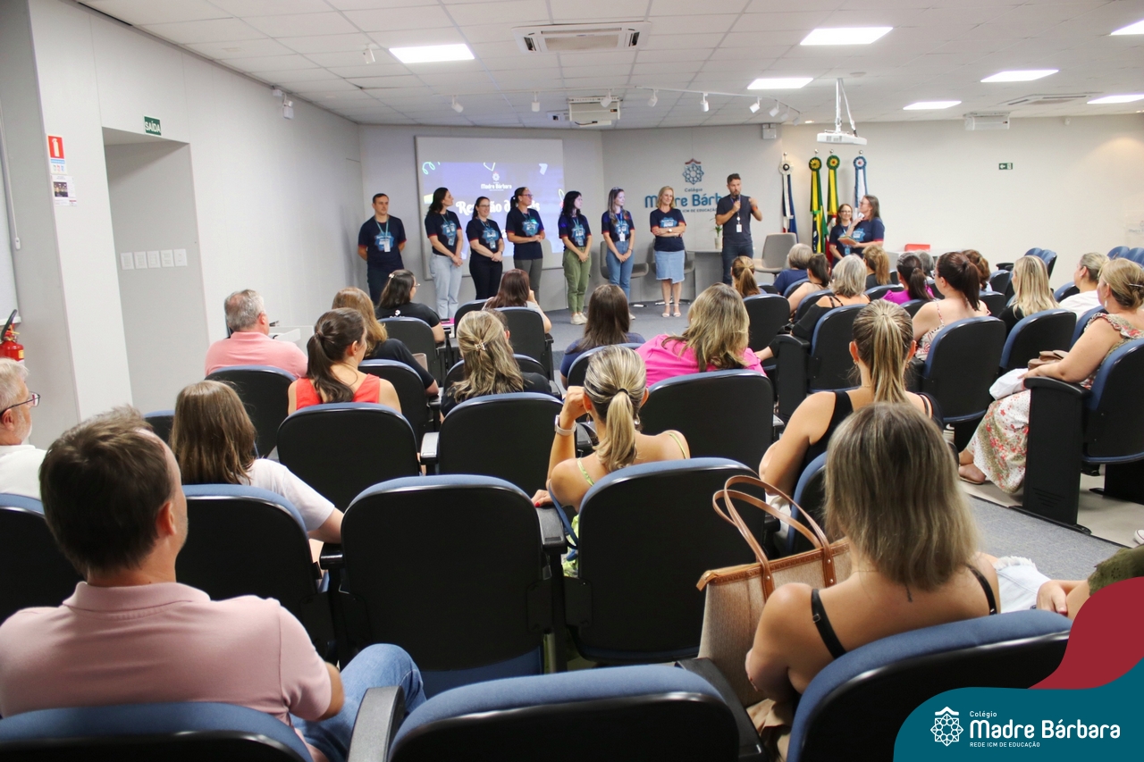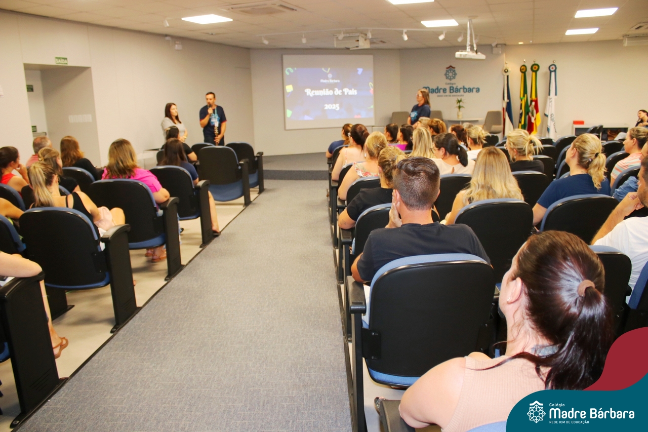 Na noite de segunda-feira (24.02) as famílias dos 6ºs anos do Ensino Fundamental – Anos Finais estiveram no auditório do Colégio Madre Bárbara – Rede ICM para participar da Reunião dos Responsáveis. No encontro, o professor Júlio recepcionou as famílias com música. Logo na abertura, os professores se apresentaram e os responsáveis receberam uma carta feita pelos estudantes para eles. A coordenadora pedagógica Justine Thomas conversou com as famílias sobre a programação para o ano, avaliações e o sistema de ensino. Além disso, a reunião contou com a apresentação do Sistema Poliedro, feita pela consultora pedagógica, Bruna de Paula. Também participaram do encontro o diretor geral da Codifica, Guilherme Fortes e a Pedagoga e Analista de Marketing, Kátia Vielitz.