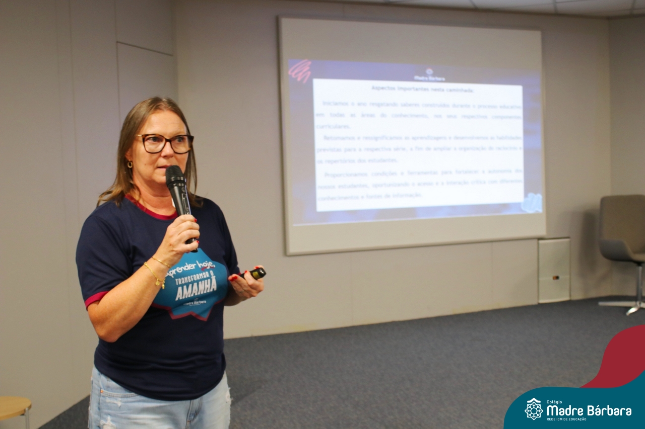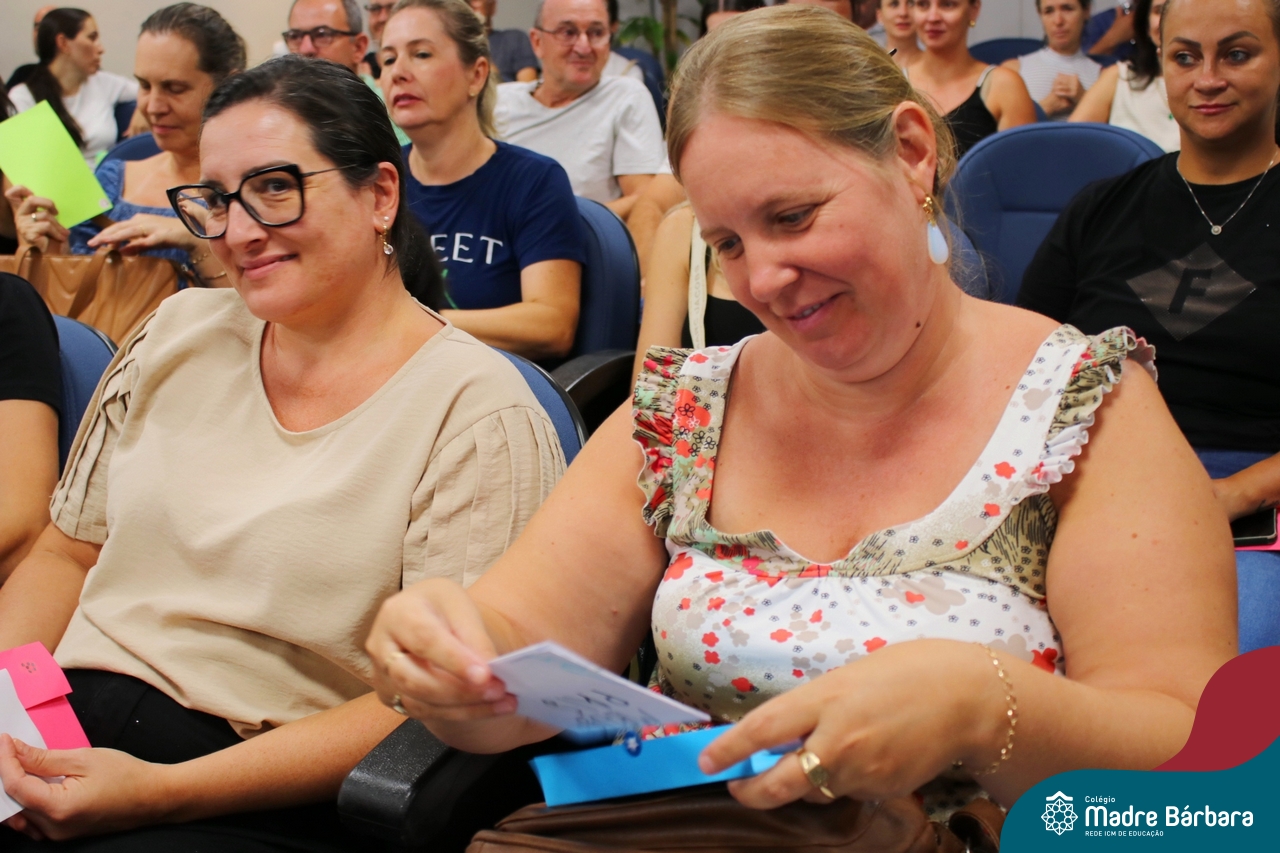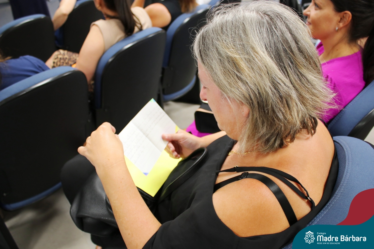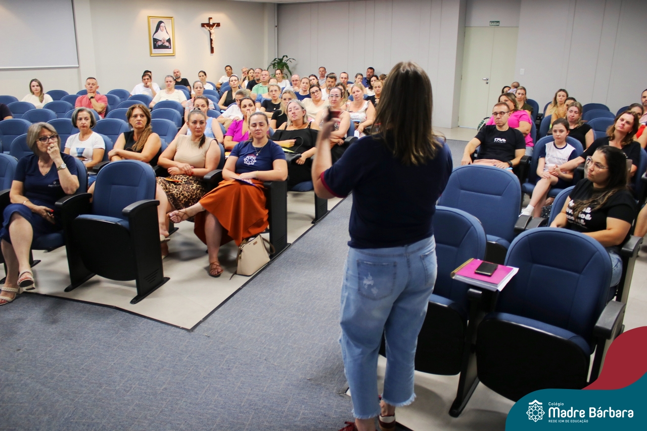 Na noite de segunda-feira (24.02) as famílias dos 6ºs anos do Ensino Fundamental – Anos Finais estiveram no auditório do Colégio Madre Bárbara – Rede ICM para participar da Reunião dos Responsáveis. No encontro, o professor Júlio recepcionou as famílias com música. Logo na abertura, os professores se apresentaram e os responsáveis receberam uma carta feita pelos estudantes para eles. A coordenadora pedagógica Justine Thomas conversou com as famílias sobre a programação para o ano, avaliações e o sistema de ensino. Além disso, a reunião contou com a apresentação do Sistema Poliedro, feita pela consultora pedagógica, Bruna de Paula. Também participaram do encontro o diretor geral da Codifica, Guilherme Fortes e a Pedagoga e Analista de Marketing, Kátia Vielitz.