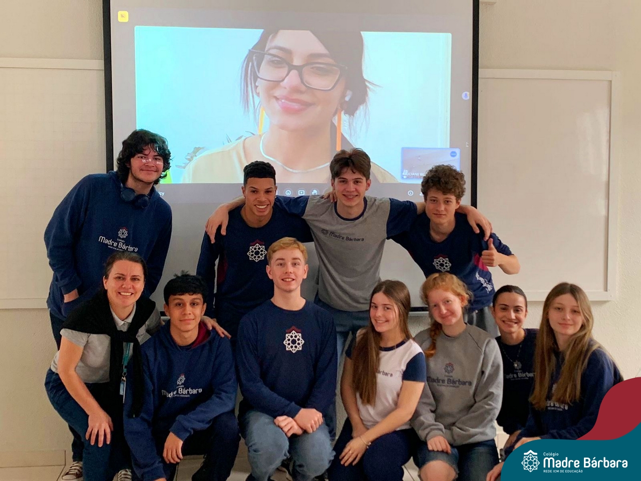 Na manhã dessa quarta-feira (23.08), estudantes do 2º ano do Ensino Médio do Colégio Madre Bárbara – Rede ICM, que realizam a Eletiva Cultura e Identidade, tiveram um momento de diálogo intercultural com Fanir de Oliveira, uma indígena Macuxi de Roraima, que recentemente doutorou-se em Antropologia Social pela UFRGS. A roda de conversa foi uma oportunidade de conhecer cosmo-ontologias, modos de ser, pensar e viver de outras culturas, conteúdos importantes para construção do respeito à alteridade e formação integral de nossos educandos.
