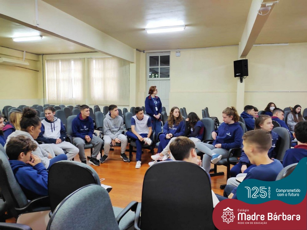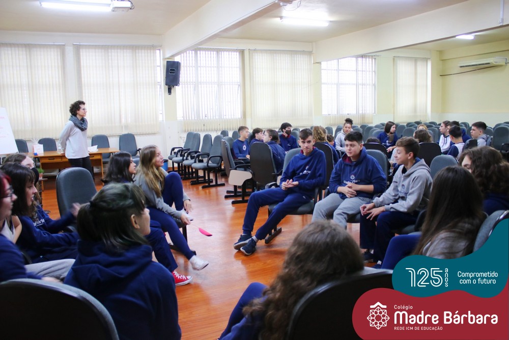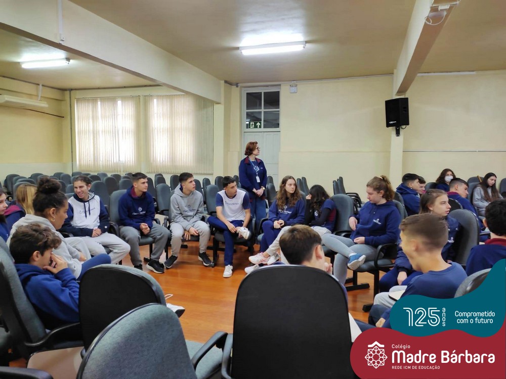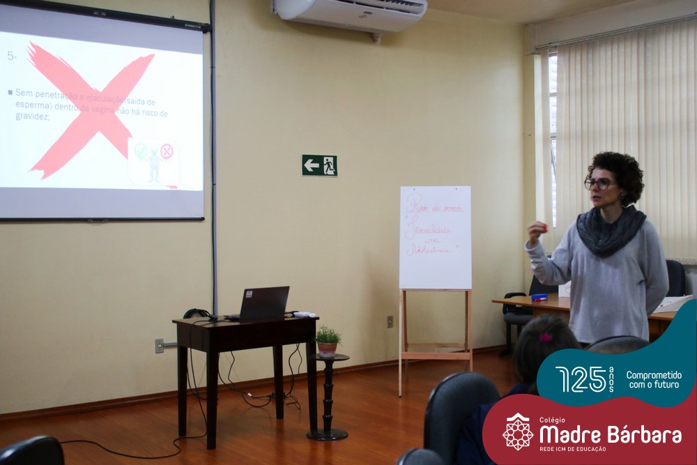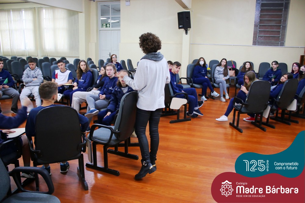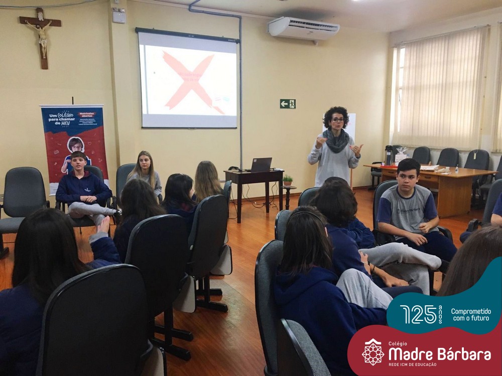 Nesta segunda-feira (02.05) as turmas de 9ºs anos do Ensino Fundamental – Anos Finais (91 e 92) participaram de uma Roda de Conversa sobre o tema “As Manifestações da Sexualidade na Adolescência”, com a médica Letícia Leite, Ginecologista Qualificada em Atendimento com Crianças e Adolescentes. O encontro foi idealizado pelos Serviços de Orientação Educacional e Psicologia Escolar do Colégio Madre Bárbara – Rede ICM.