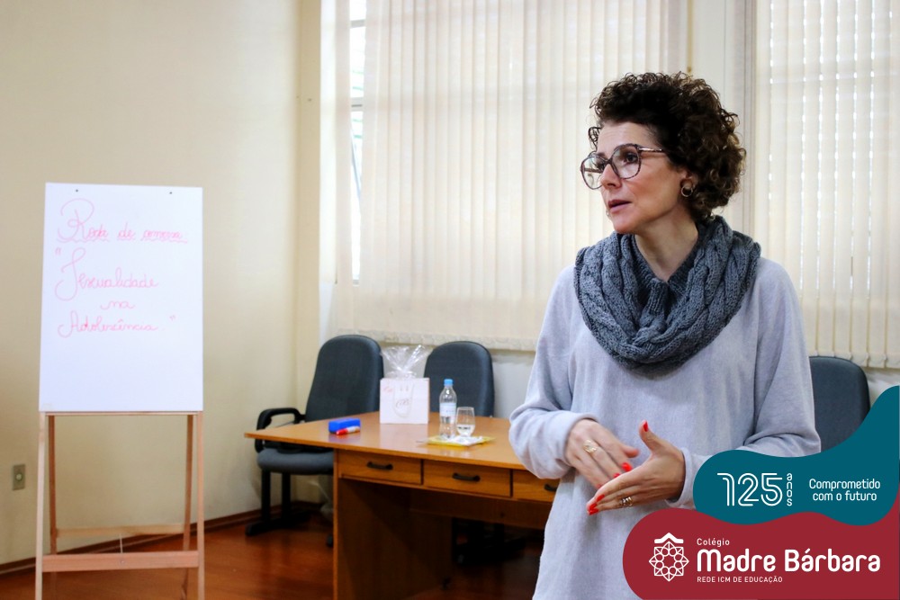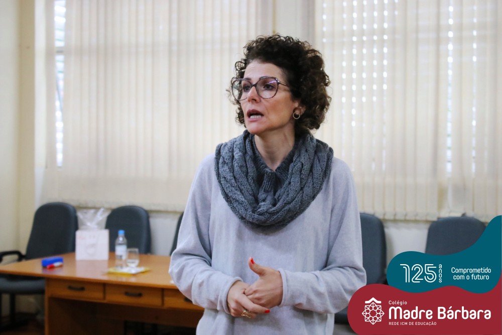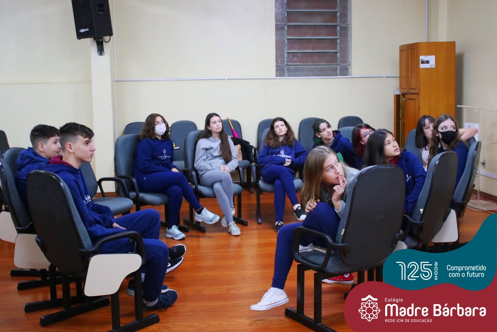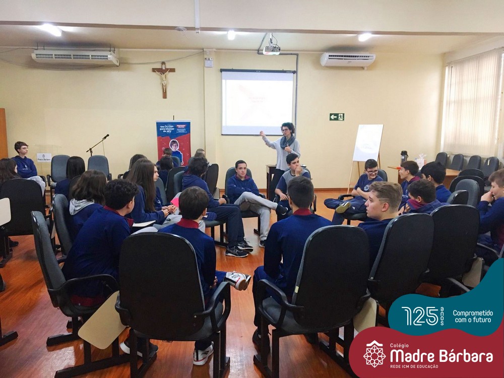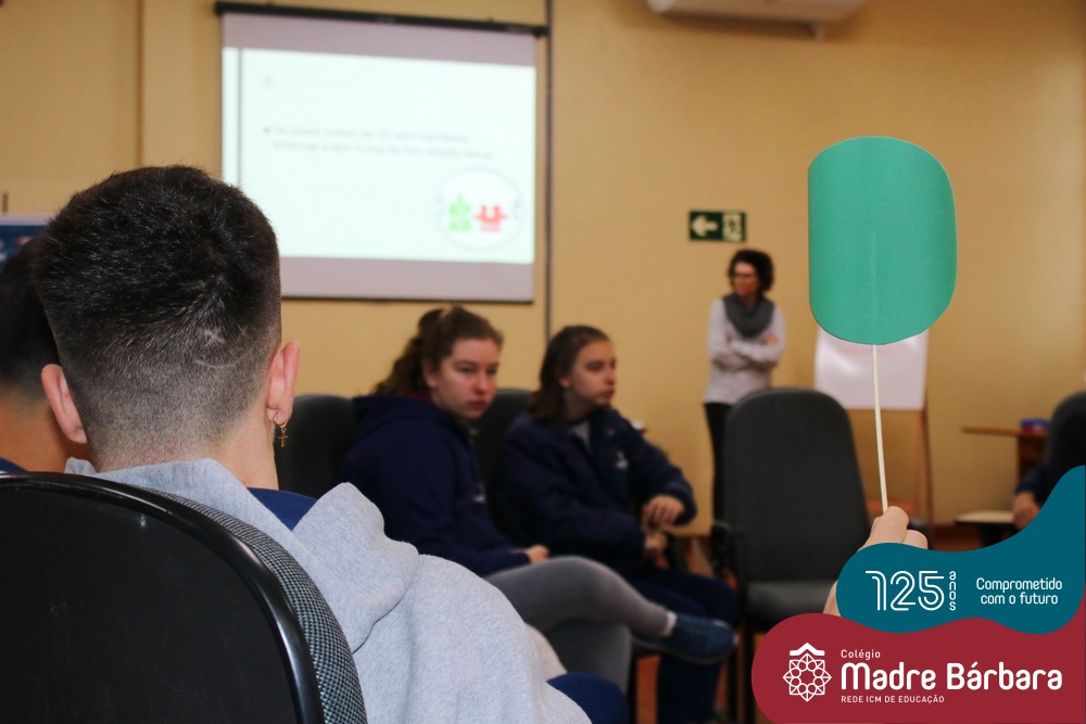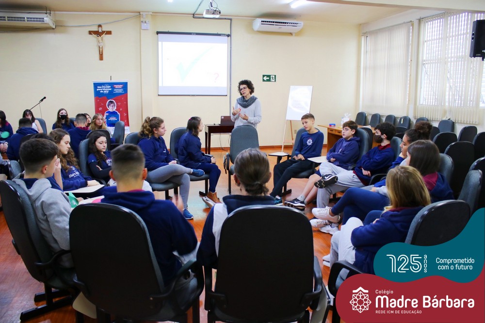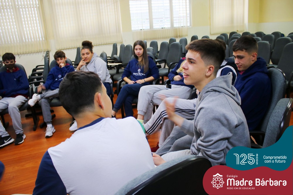 Nesta segunda-feira (02.05) as turmas de 9ºs anos do Ensino Fundamental – Anos Finais (91 e 92) participaram de uma Roda de Conversa sobre o tema “As Manifestações da Sexualidade na Adolescência”, com a médica Letícia Leite, Ginecologista Qualificada em Atendimento com Crianças e Adolescentes. O encontro foi idealizado pelos Serviços de Orientação Educacional e Psicologia Escolar do Colégio Madre Bárbara – Rede ICM.