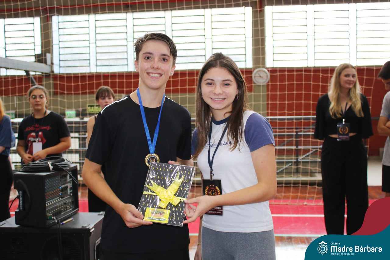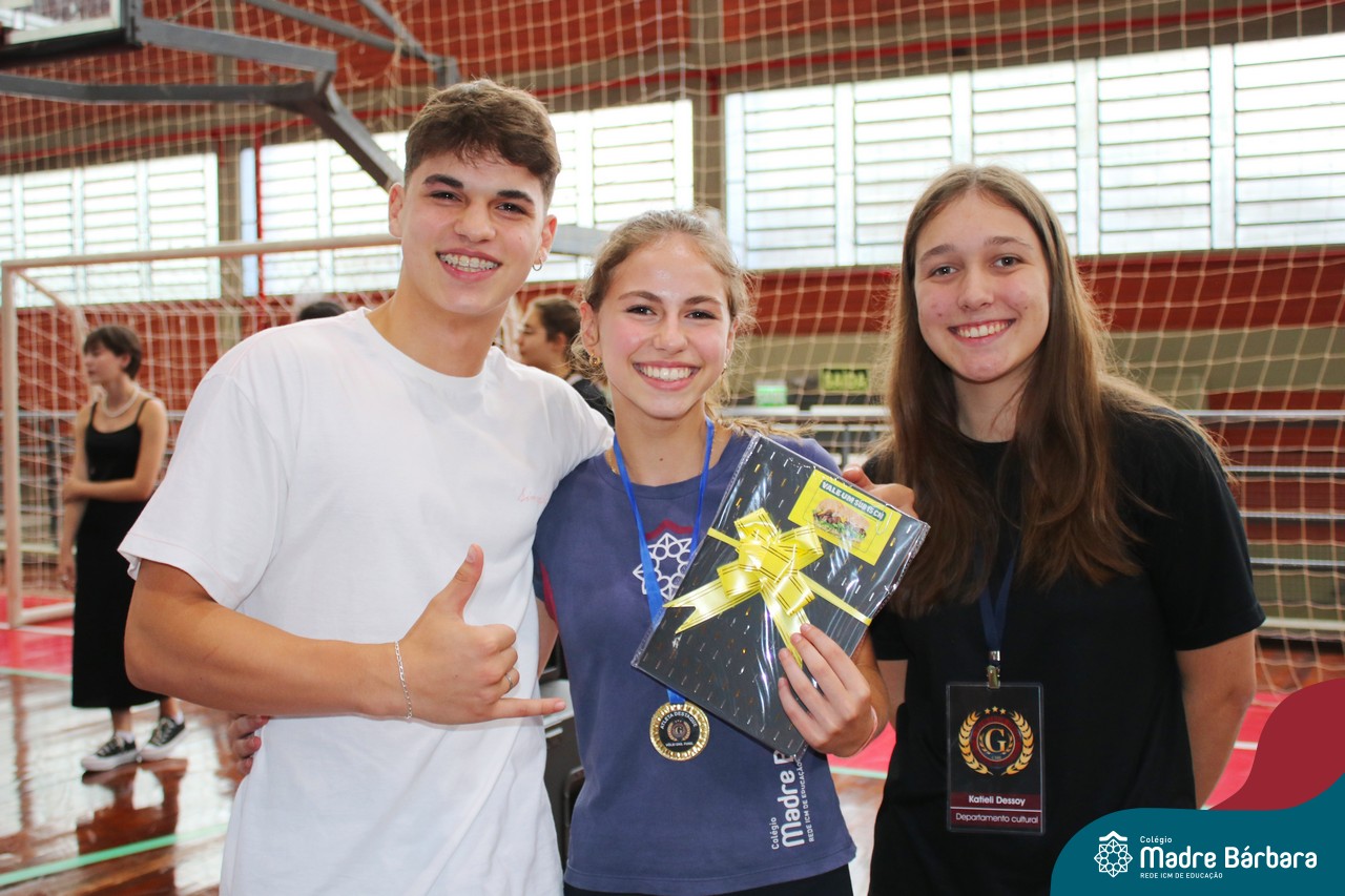 Na manhã deste sábado (25.02) o Grêmio Estudantil (Gembar) realizou as finais dos Jogos das Interturmas no Ginásio Poliesportivo. Na modalidade futsal os vencedores foram em primeiro lugar pelo Ensino Fundamental – Anos Finais o oitavo ano e Ensino Médio o Terceirão. No voleibol categoria Anos Finais o 9º ano foi campeão e Terceirão também ganhou pelo Ensino Médio. As equipes vencedoras receberam caixas de doces da Florestal. Também teve um destaque por modalidade, representando os Anos Finais e Ensino Médio. Parabéns para todos aqueles que participaram e se dedicaram nos jogos. E parabéns ao Gembar pela organização dos jogos de integração!