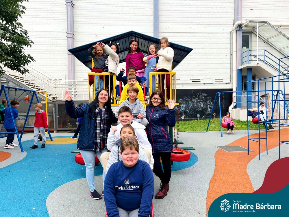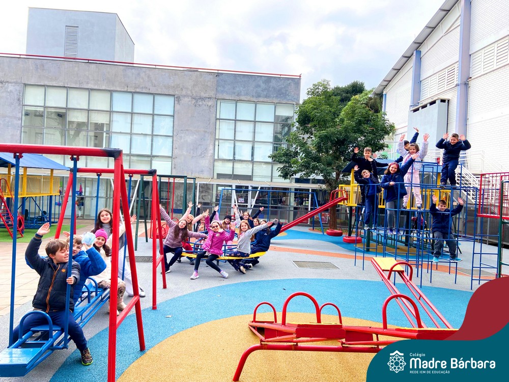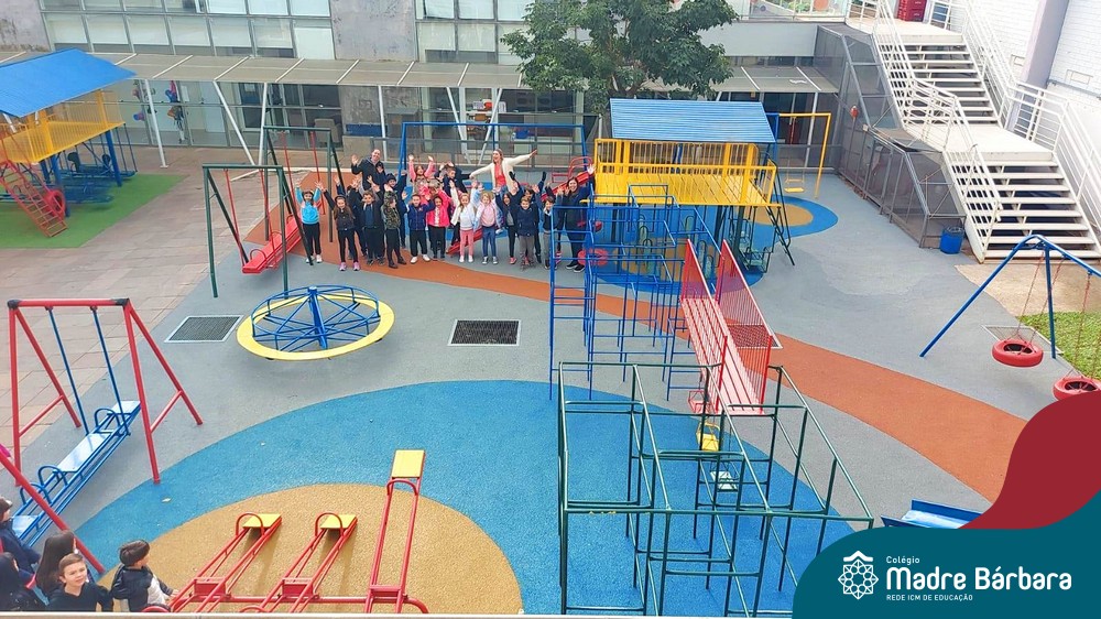 A inauguração do piso da pracinha do Colégio Madre Bárbara – Rede ICM ocorreu com muita brincadeira, como deve ser. Neste sábado (10.08) foi dia letivo para as crianças do Ensino Fundamental – Anos Iniciais, que puderam curtir um recreio estendido de diversão no novo piso.