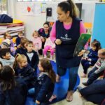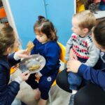A segunda-feira, 12.06 iniciou diferente para as turmas dos Níveis 1D e 4A. Uma contação de história muito especial foi realizada e as crianças conheceram o livro “Se eu fosse…” de Mies Van Hout que trouxe o encanto dos bichinhos. Joaninhas, borboletas, gafanhotos, abelhas… surgiram nas páginas e as crianças se divertiram com a encenação das professoras Julia e Marilaine e as monitoras Eduarda e Vandressa. Depois de conhecer esta linda história, as crianças puderam ver, cheirar e tocar num favo de mel que as abelhinhas trabalhadoras produziram e o cheirinho gostoso deixou a sala ainda mais perfumada. Esta linda integração entre turmas foi oportunizada uma vez que ambas turmas estão com projetos envolvendo pequenos animais e com certeza muitas outras situações irão acontecer.