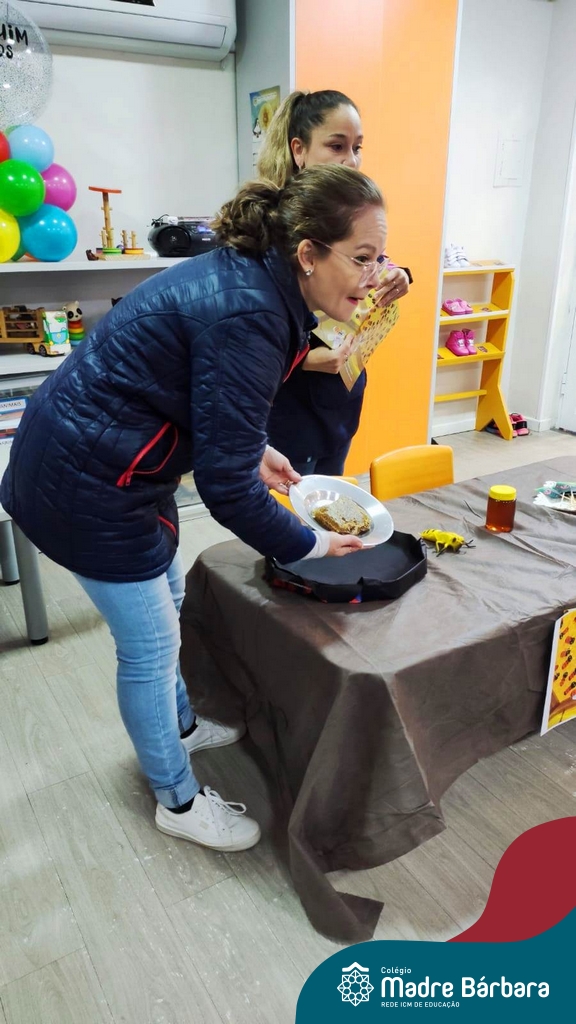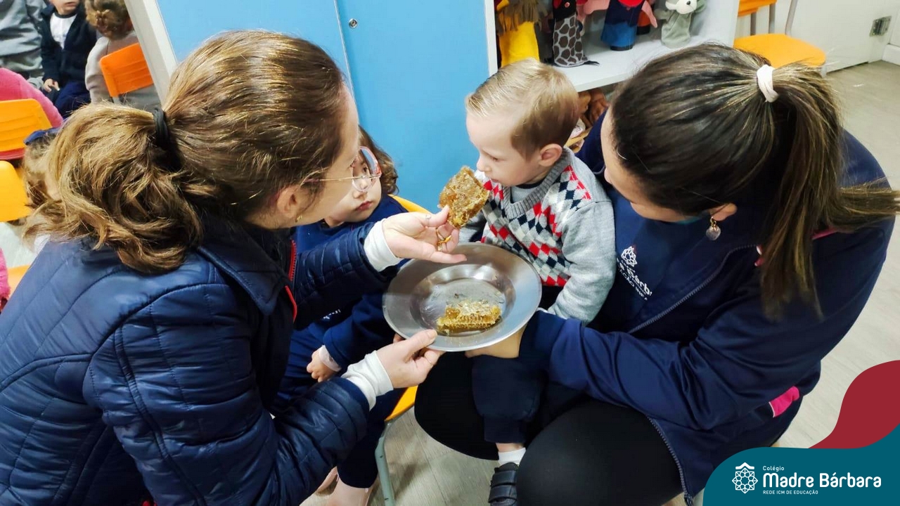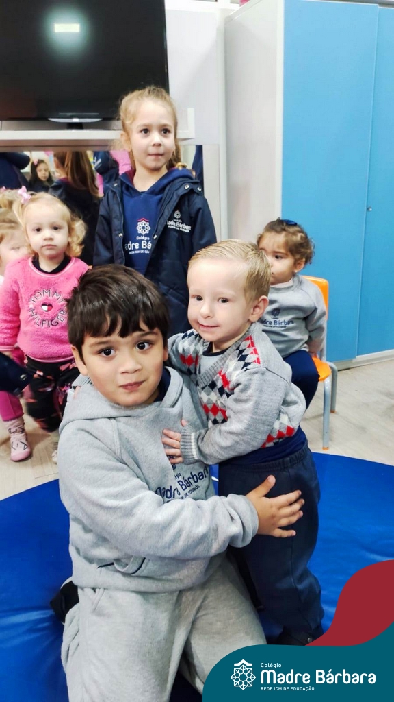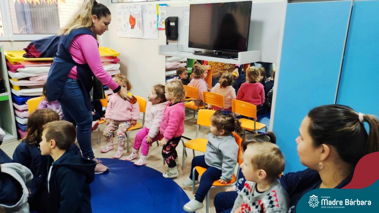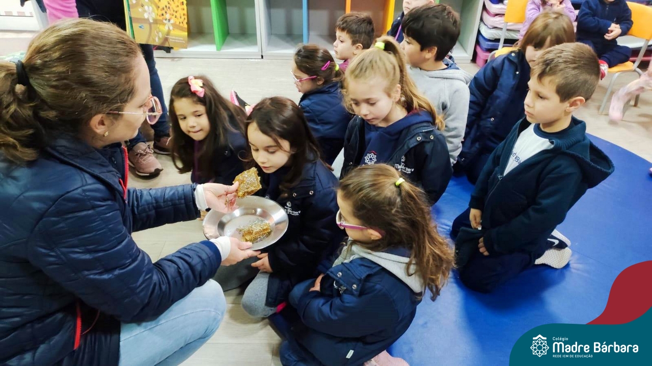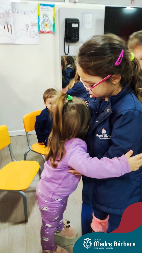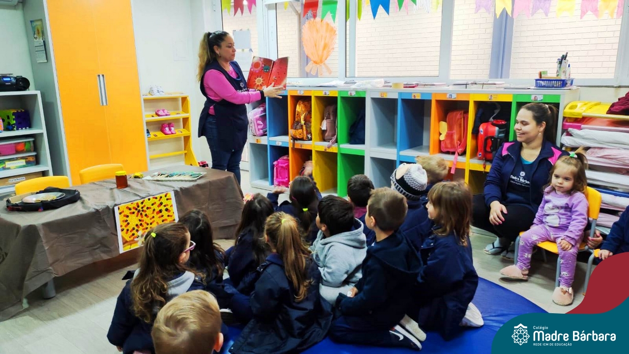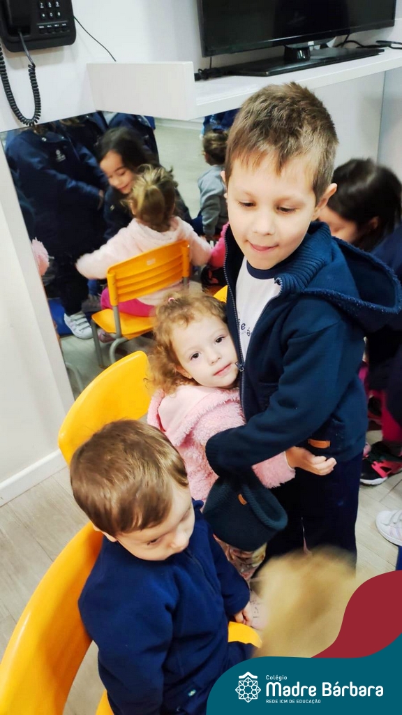 A segunda-feira, 12.06 iniciou diferente para as turmas dos Níveis 1D e 4A. Uma contação de história muito especial foi realizada e as crianças conheceram o livro “Se eu fosse…” de Mies Van Hout que trouxe o encanto dos bichinhos. Joaninhas, borboletas, gafanhotos, abelhas… surgiram nas páginas e as crianças se divertiram com a encenação das professoras Julia e Marilaine e as monitoras Eduarda e Vandressa. Depois de conhecer esta linda história, as crianças puderam ver, cheirar e tocar num favo de mel que as abelhinhas trabalhadoras produziram e o cheirinho gostoso deixou a sala ainda mais perfumada. Esta linda integração entre turmas foi oportunizada uma vez que ambas turmas estão com projetos envolvendo pequenos animais e com certeza muitas outras situações irão acontecer.